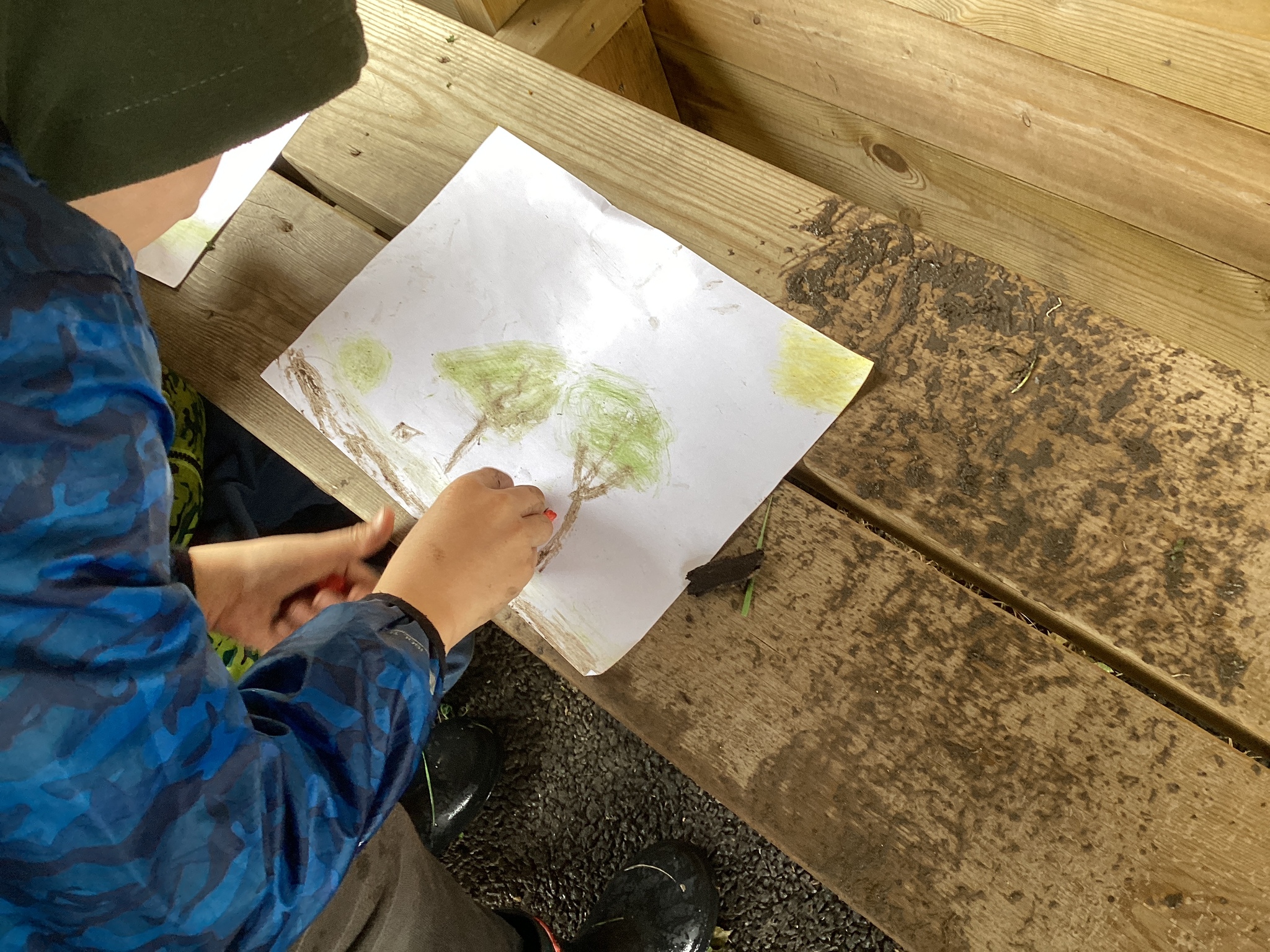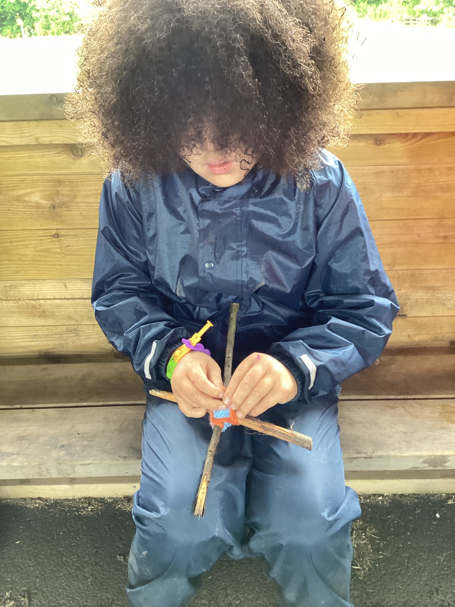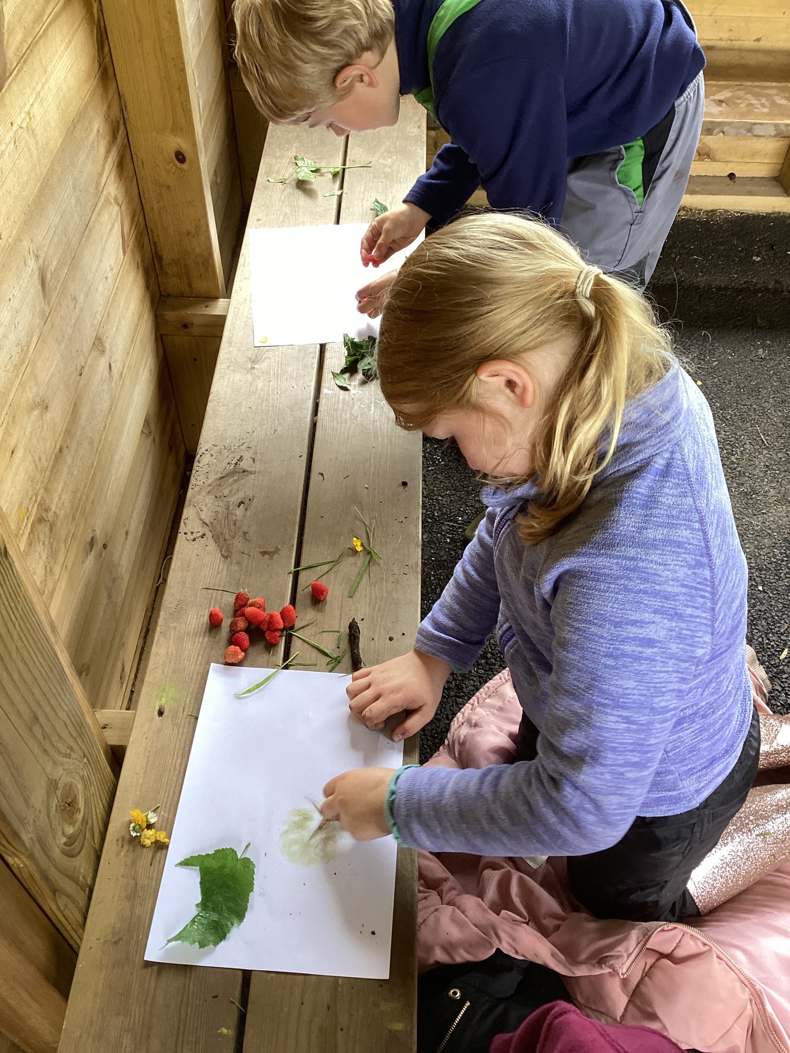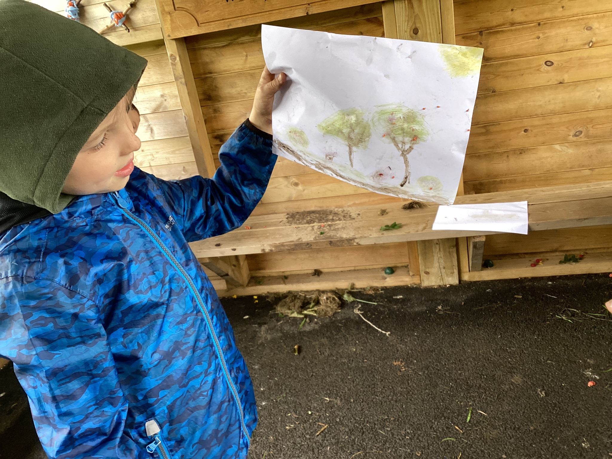 The damp weather didn't dampen the spirits in Year 3 during our Forest School session today. In fact, Year 3 did tremendously well practising the Square Lashing from last week to create some colourful art work. Following this, they used natural materials to paint a picture. The improvement they have made on their paintings from the first session is wonderful to see. Great work, Year 3!