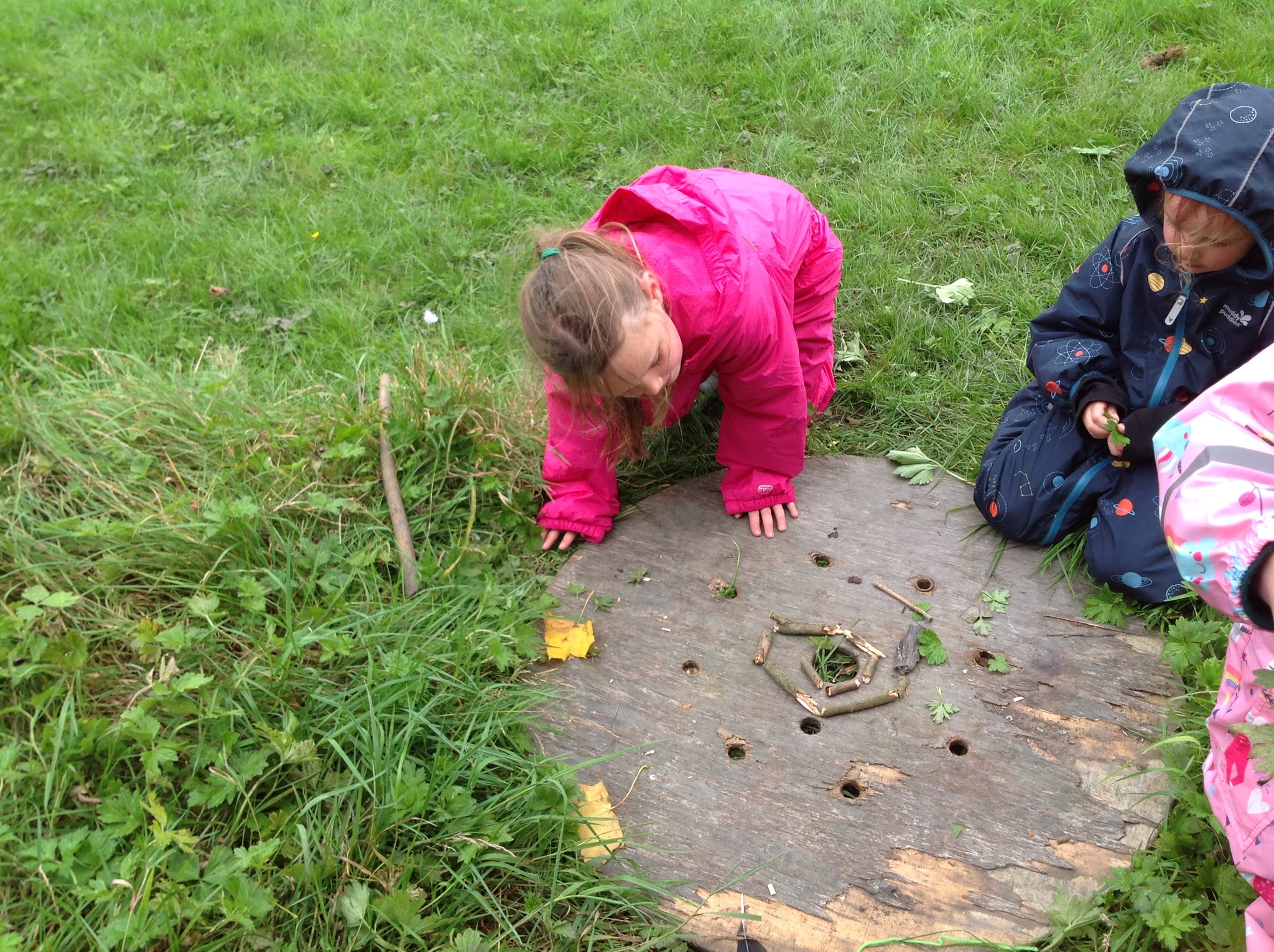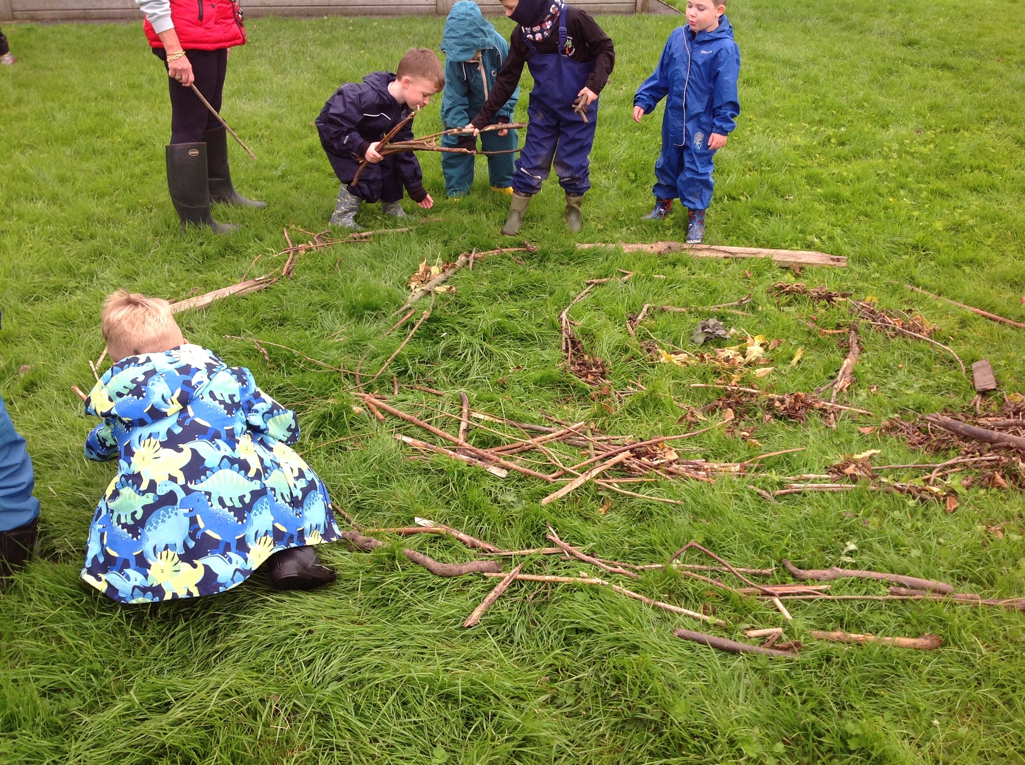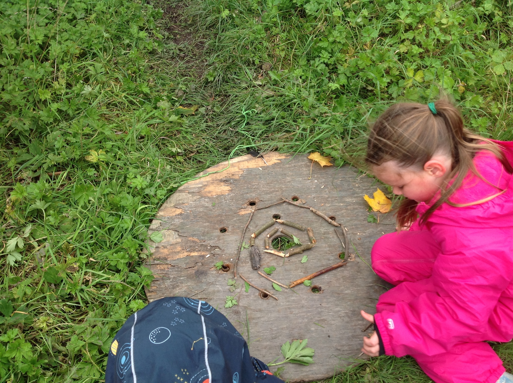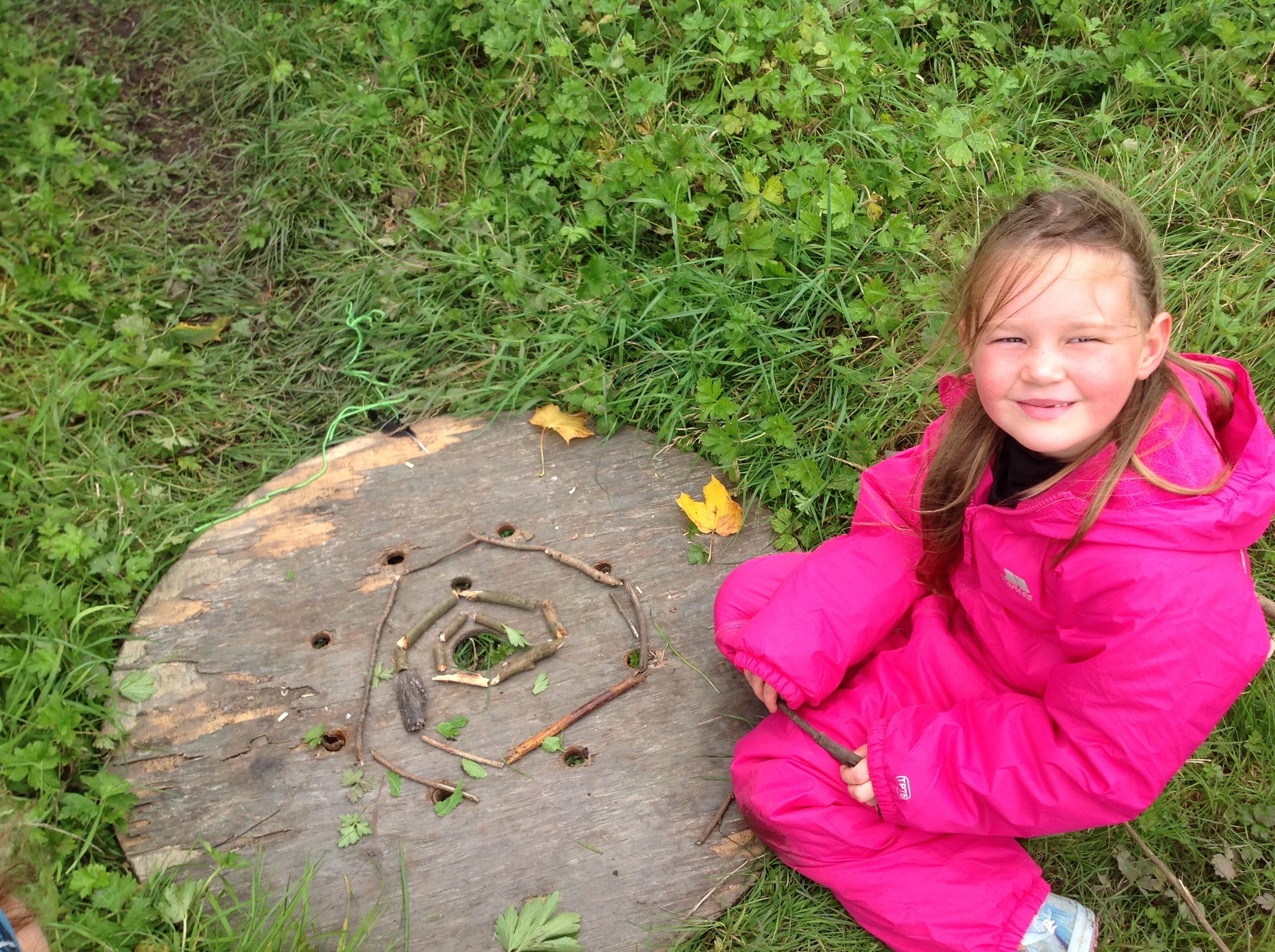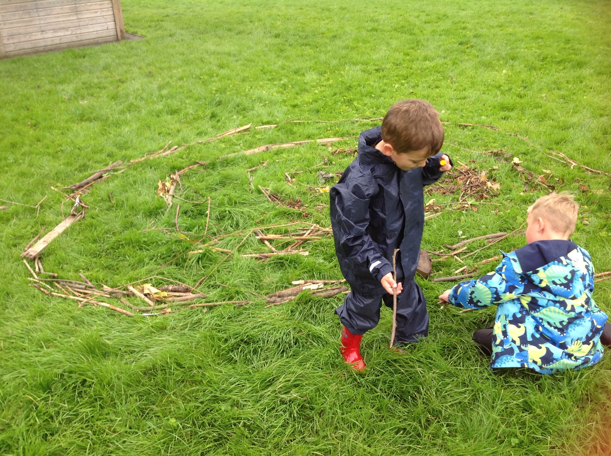 First we collaborated to create a large spiral using sticks then the children collected their own materials to make individual spirals.