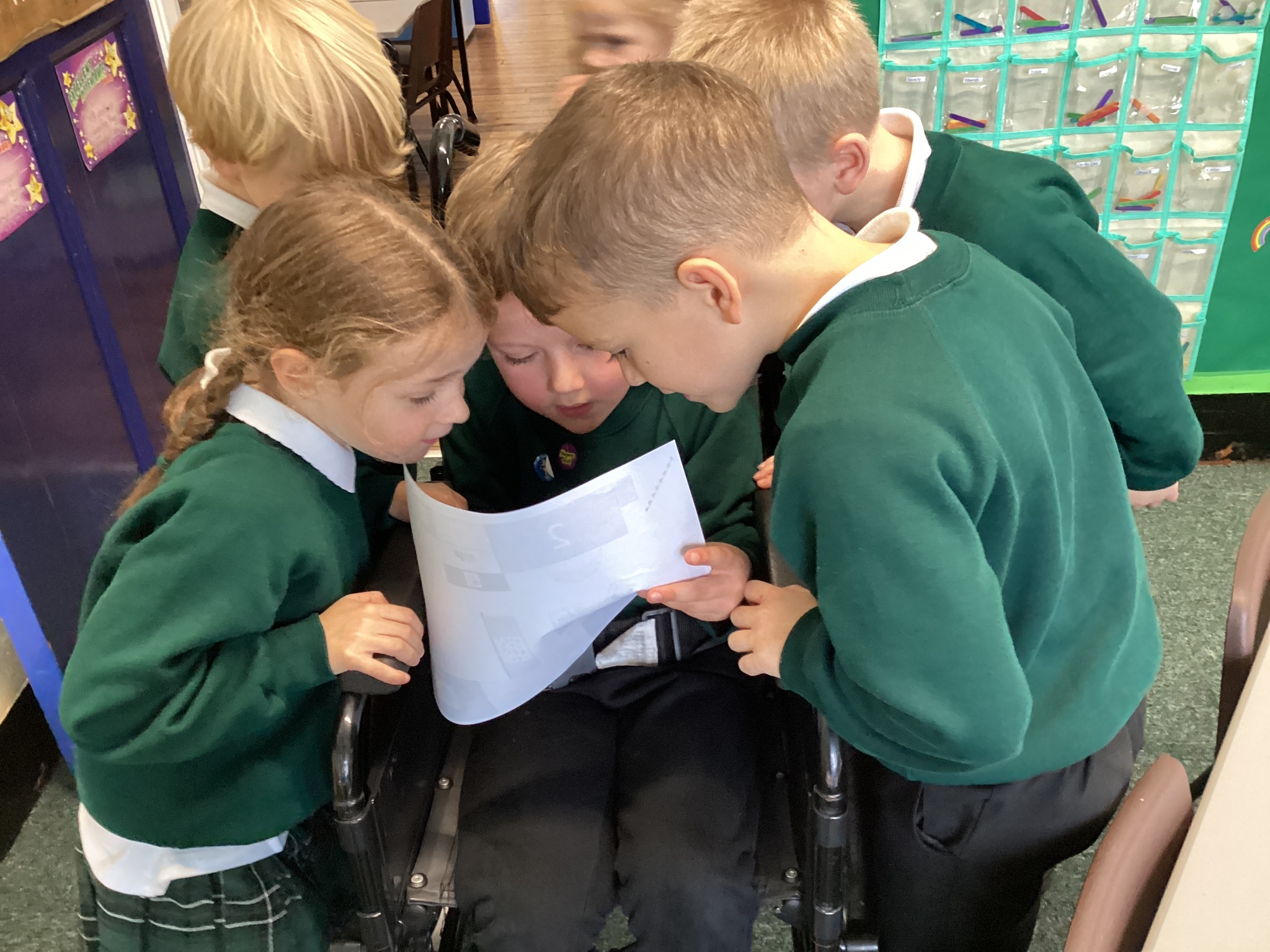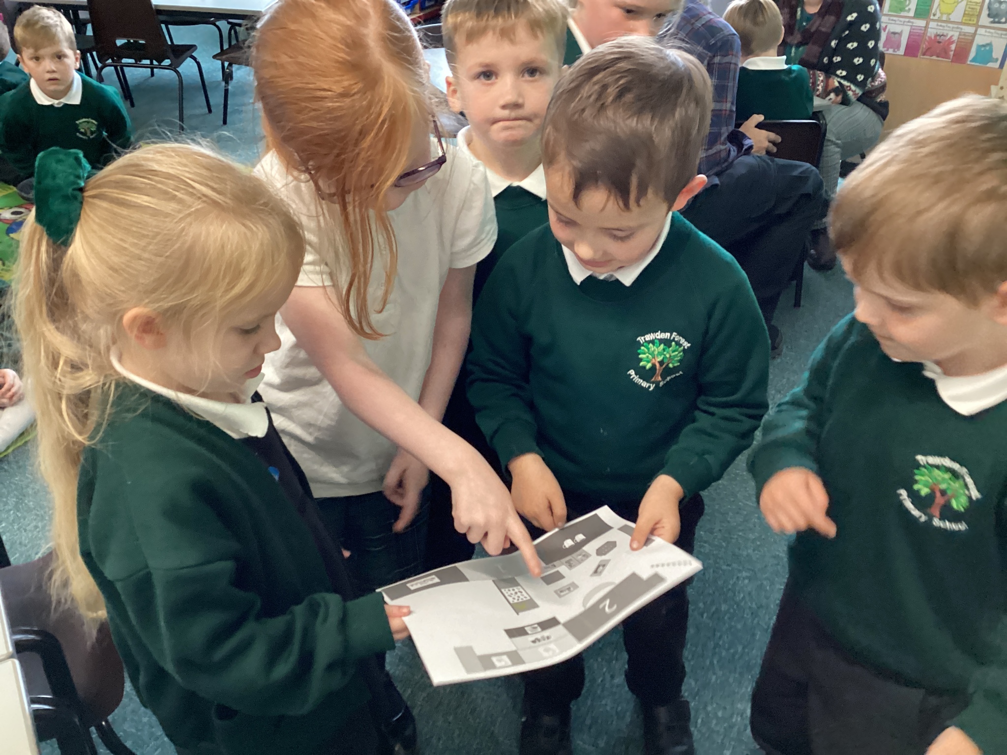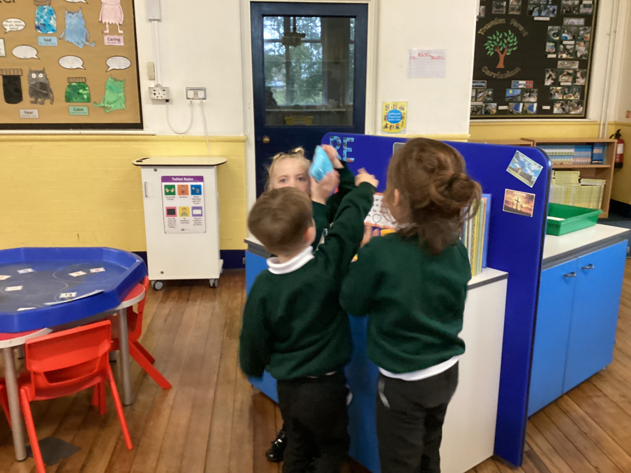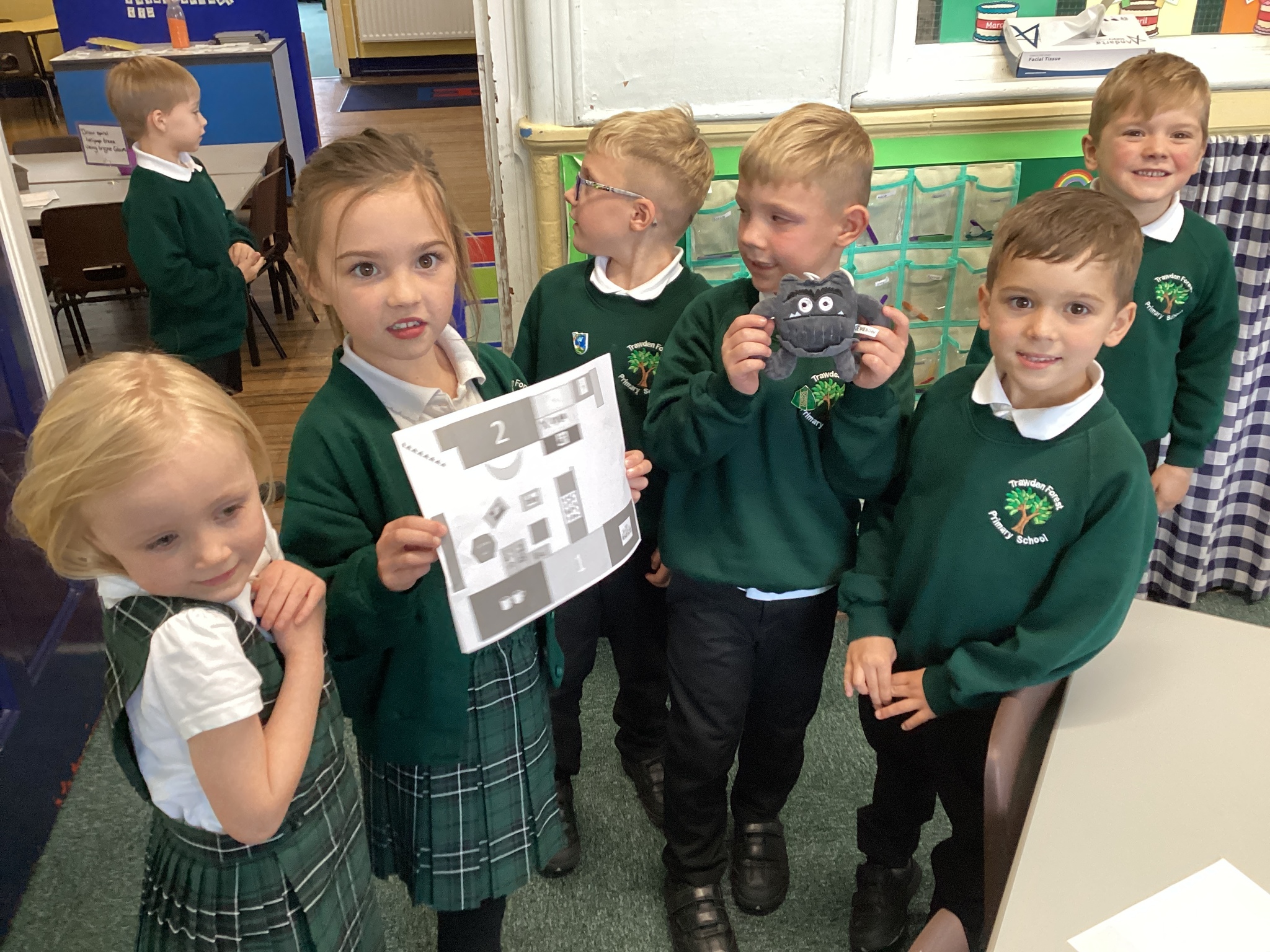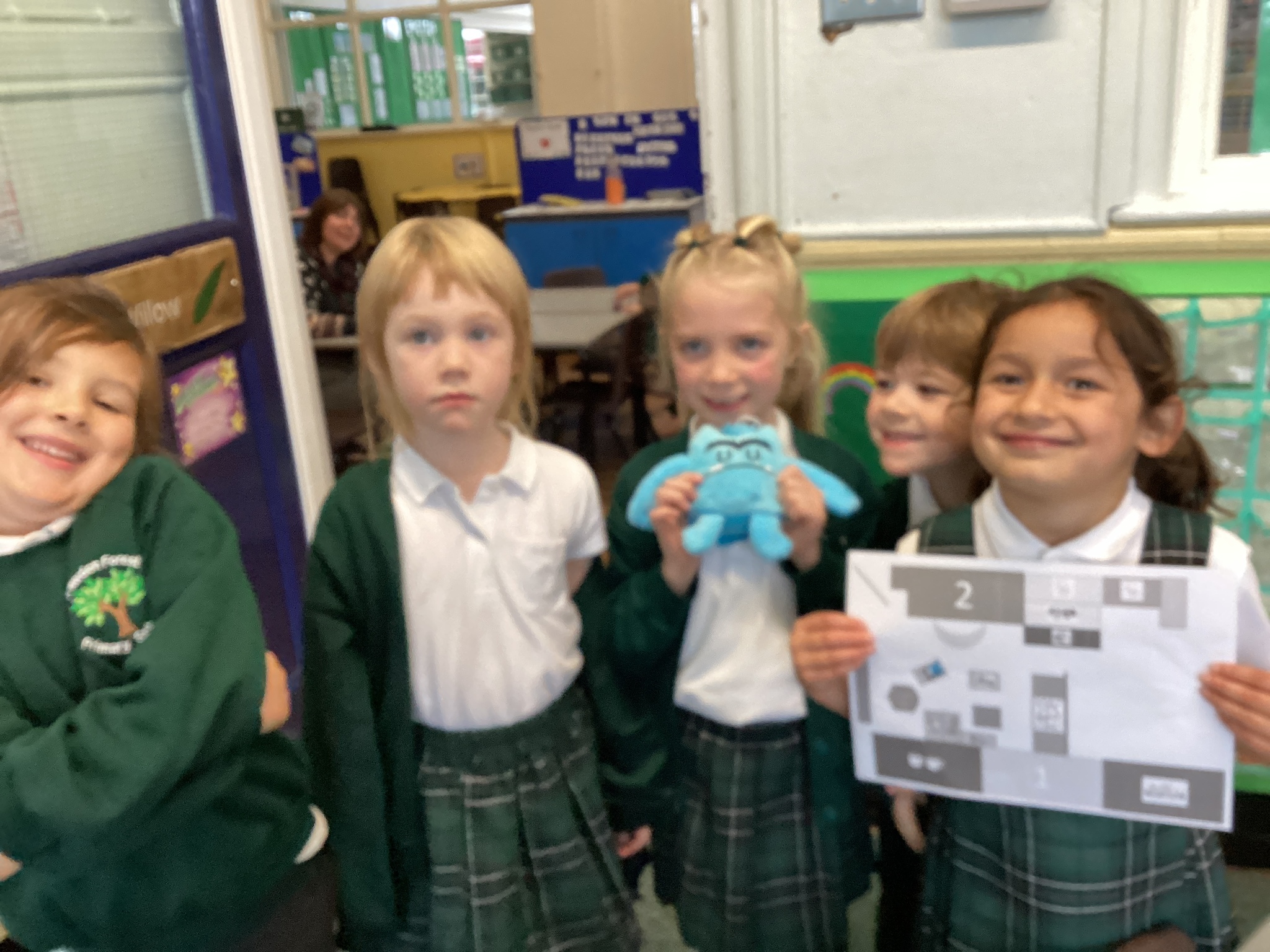 Today we looked at plans of the classroom and KS1 areas of the school. The children had to find our mischievous colour monsters who had decided to hide. They worked in grous to decide where the coloured x was indicating on the map, then went to retrieve the monster.
