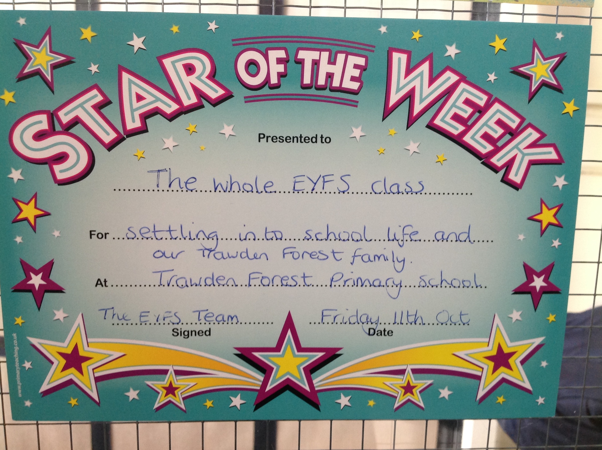 EYFS have had another brilliant week in school! We have been exploring more new sounds and tricky words in phonics. We have been comparing and sorting objects and building numbers to 5. We had so much fun with our buddies during our first Forest School session on Wednesday and today we enjoyed getting to use the MUGA in PE. Then what better way to end the week with becoming stars of the week in our first celebration assembly!