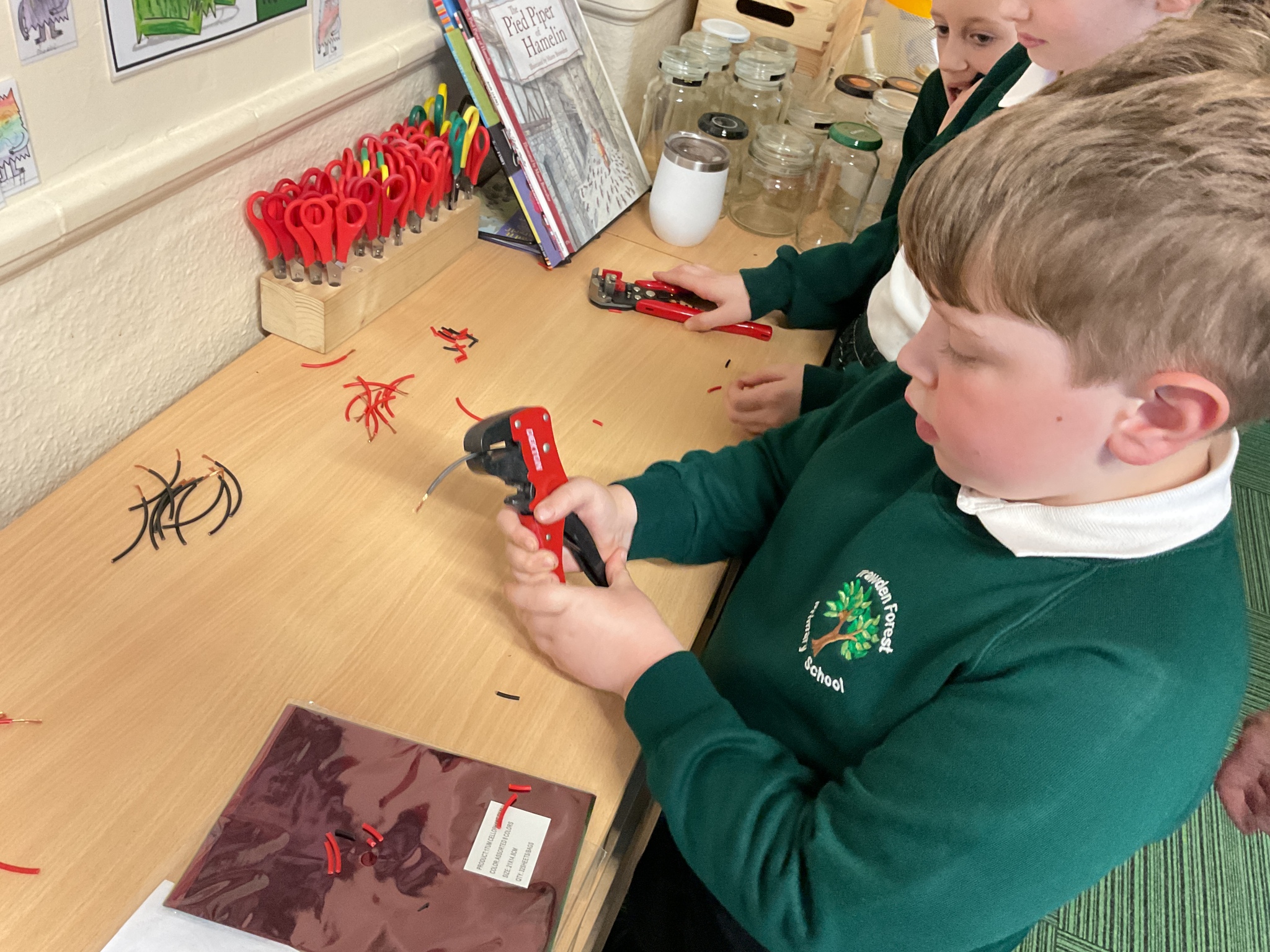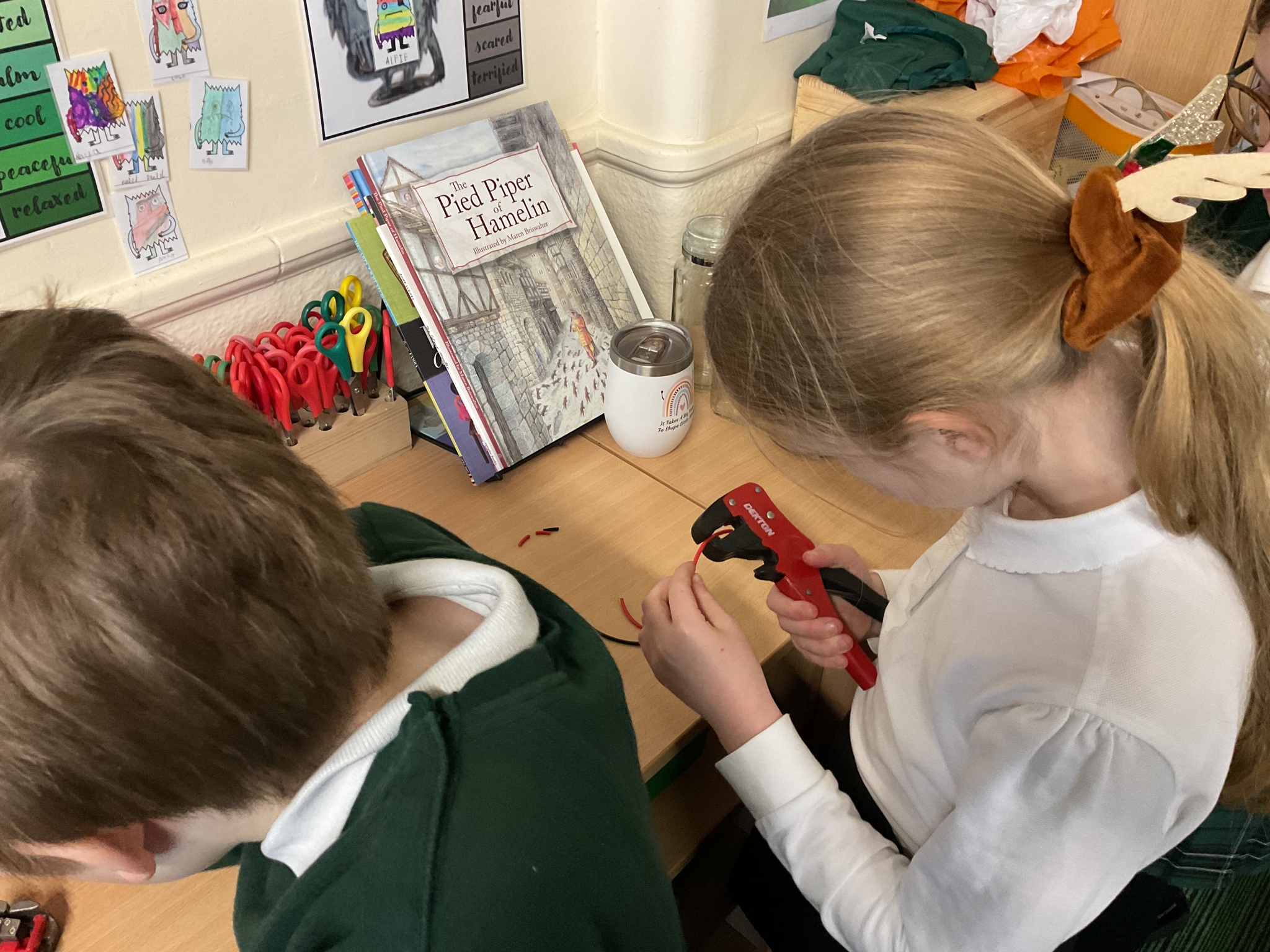 They planned and designed their light-up boxes, carefully considering how to build effective circuits before diving into the exciting making phase! With a little creativity and a whole lot of teamwork, they gathered all the necessary components: batteries, wires, bulbs (and yes, a generous amount of sellotape!)