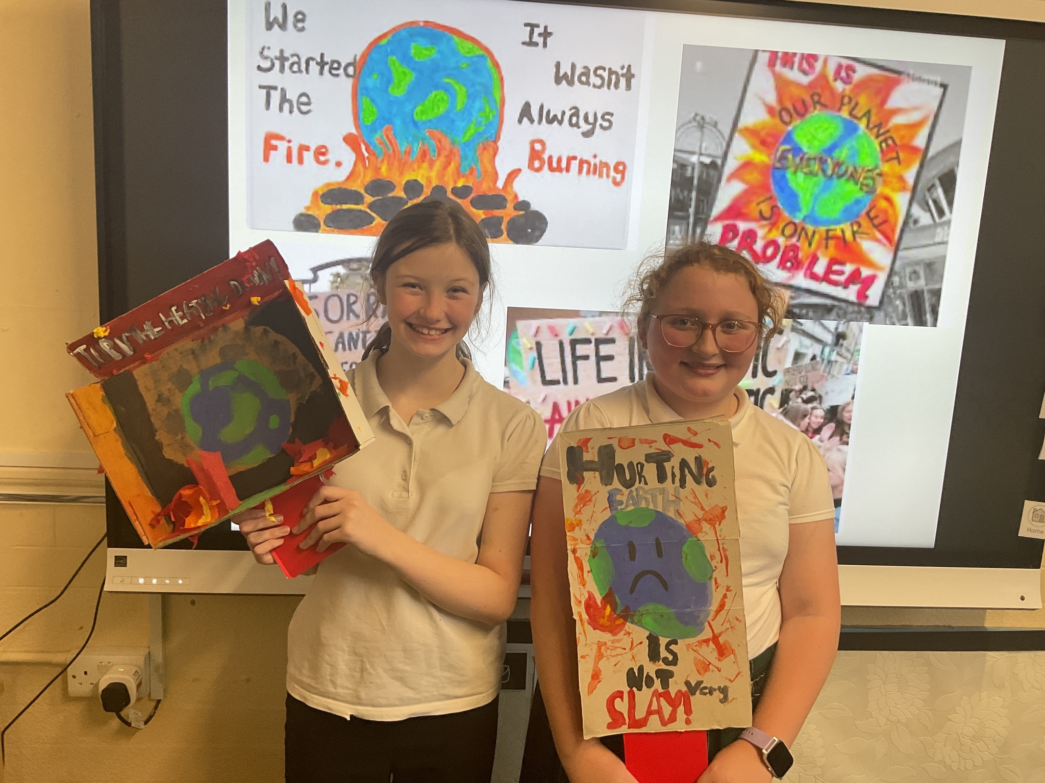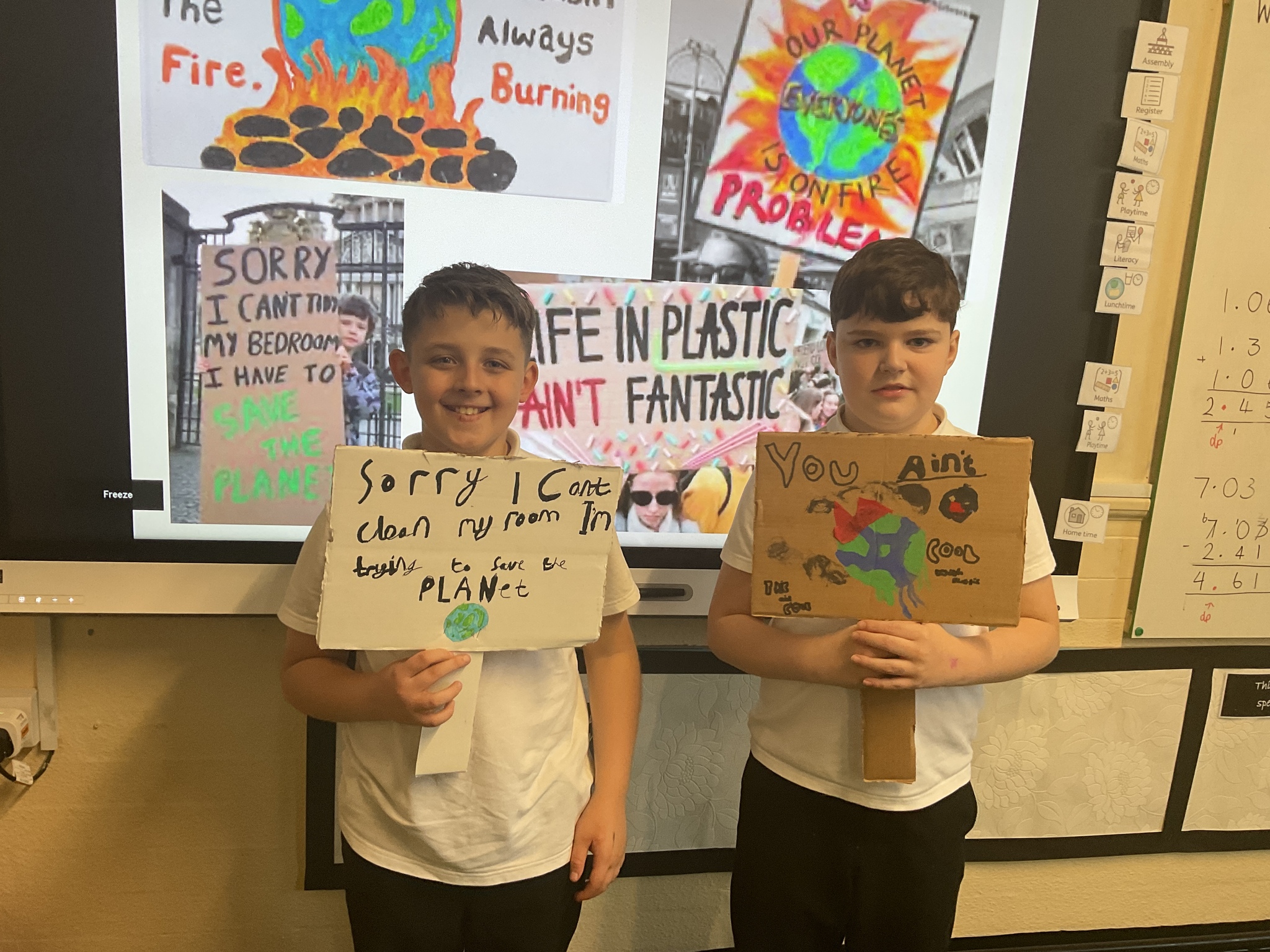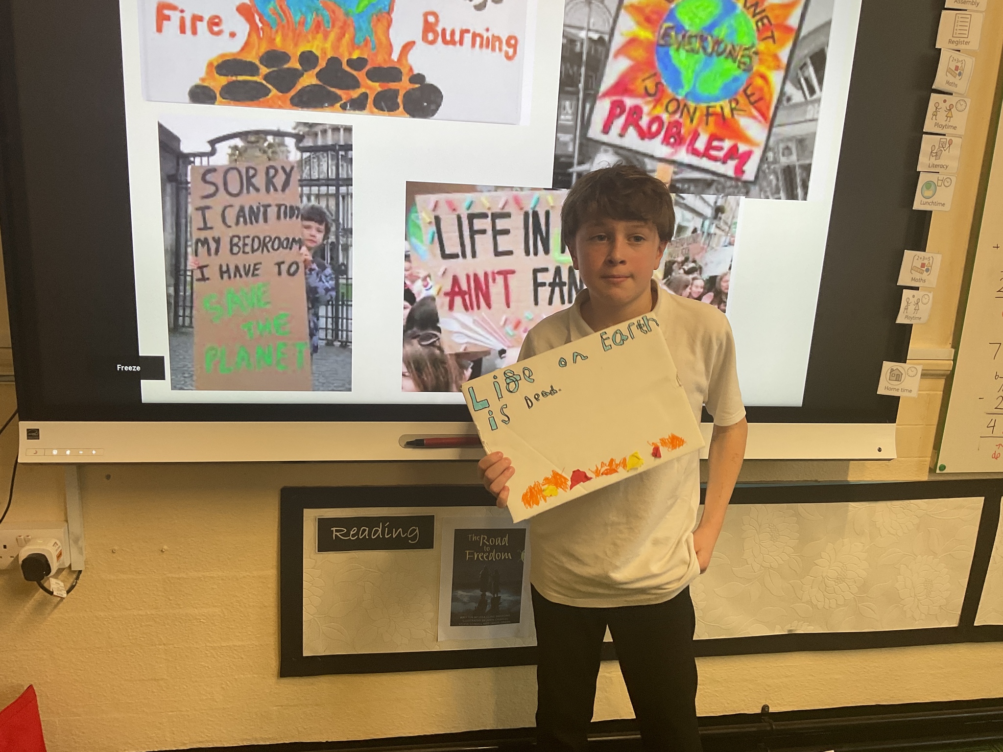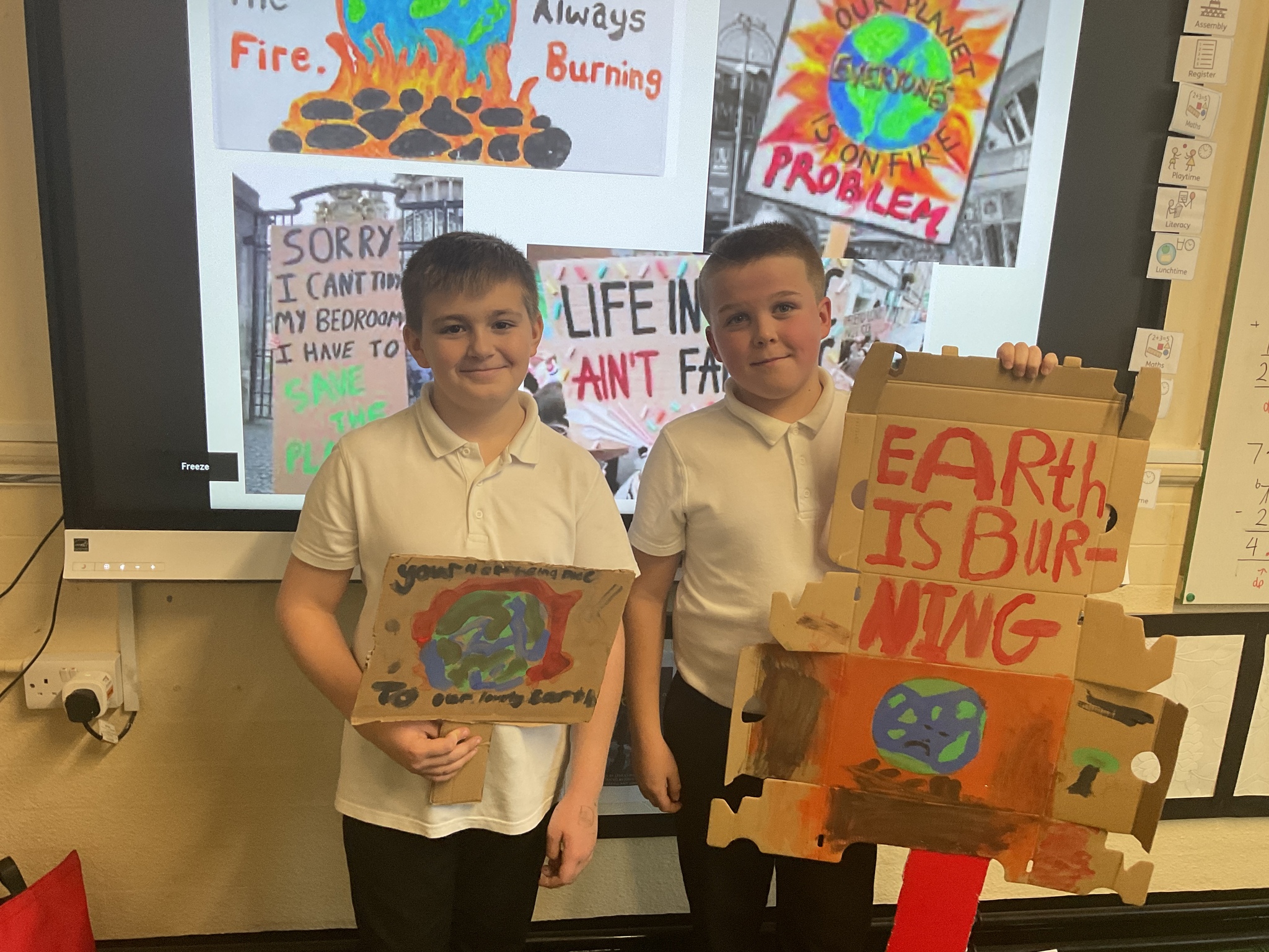 This term, in Year 6, we are studying climate change and looking at activism. As part of our English unit - persuasive speeches - we made protest placards about climate change and global warming. The children have learnt a lot about the causes of climate change and the impact it is having on the Earth. We created slogans and puns to put on our placards and added drawings to illustrate our ideas. The children did a fantastic job and took lots of pride in their work.