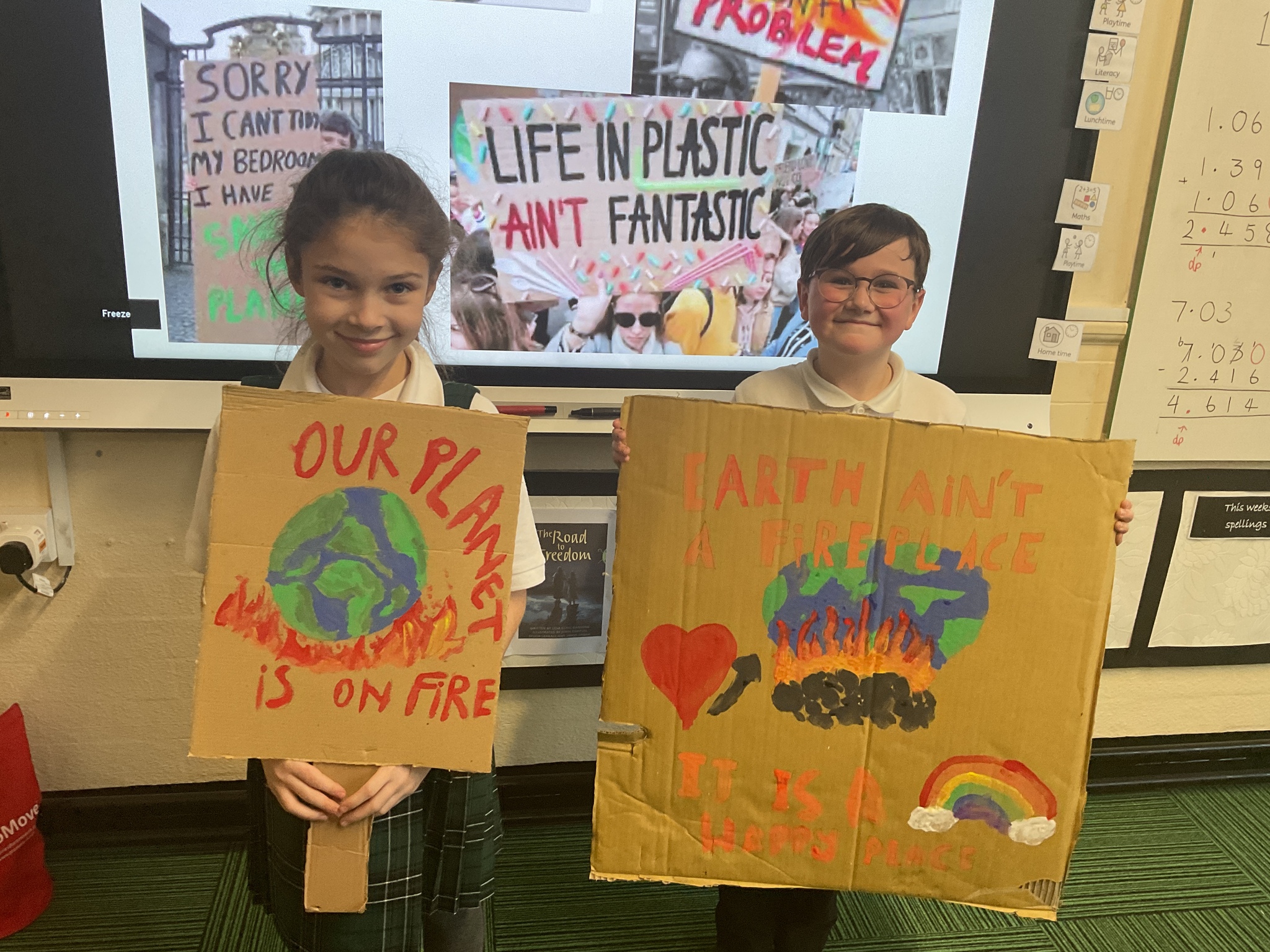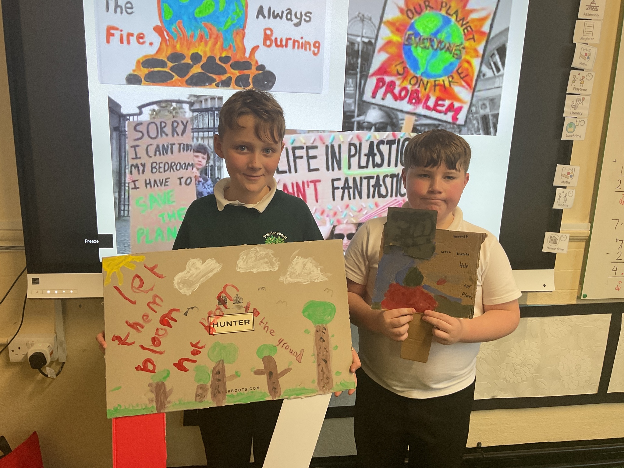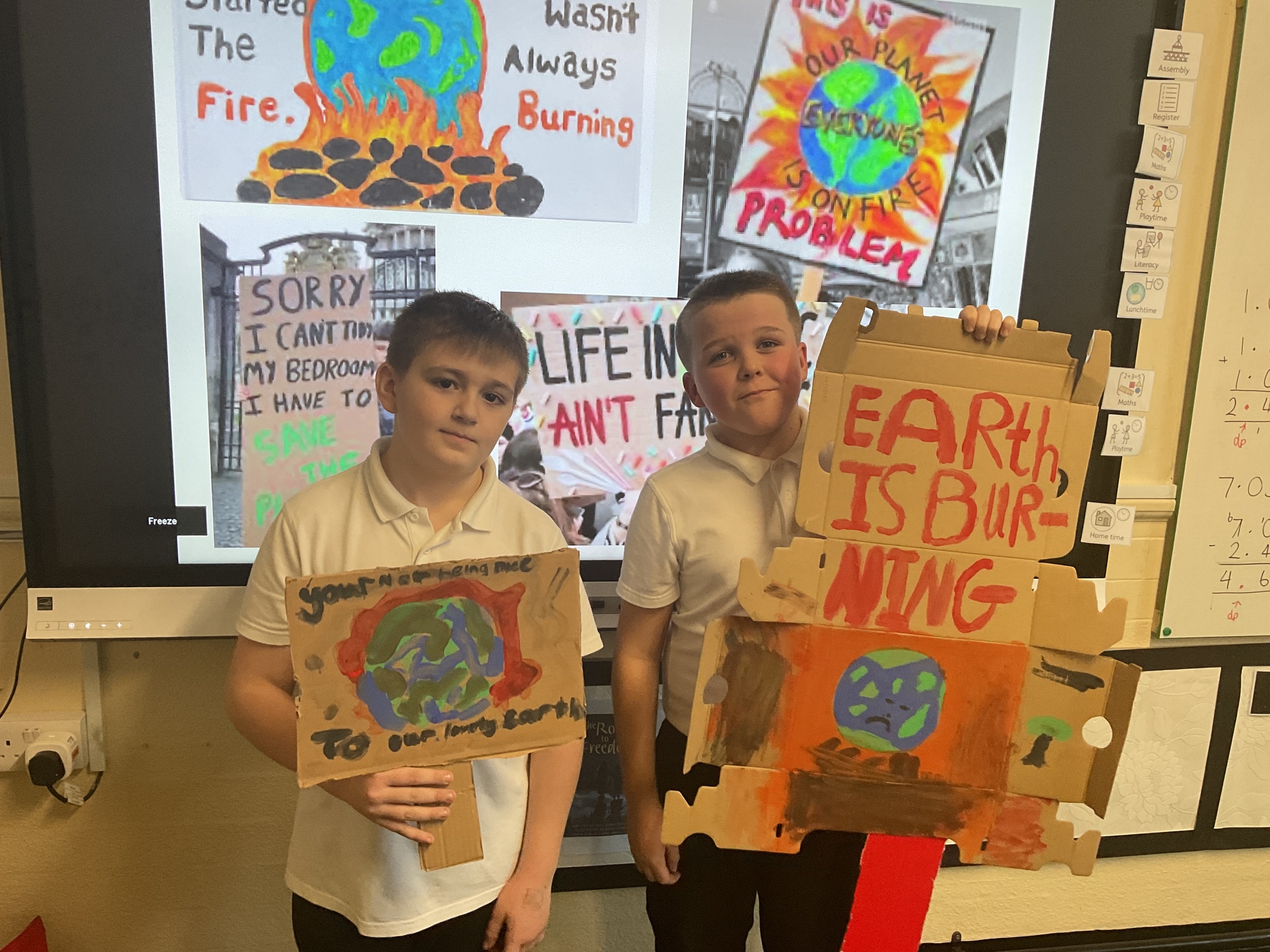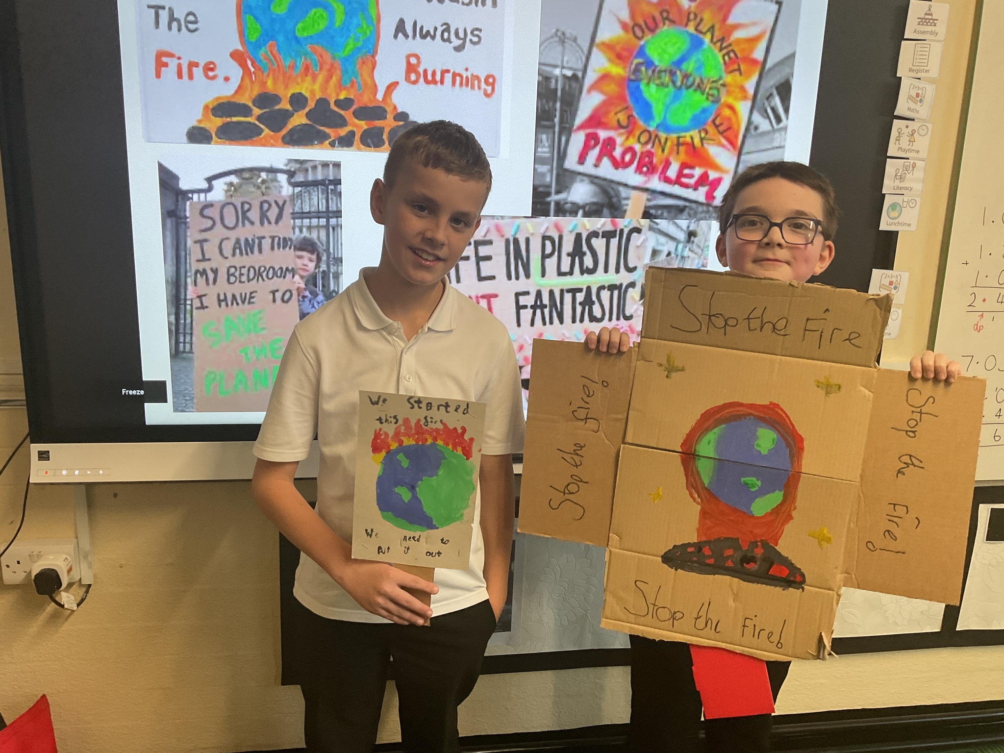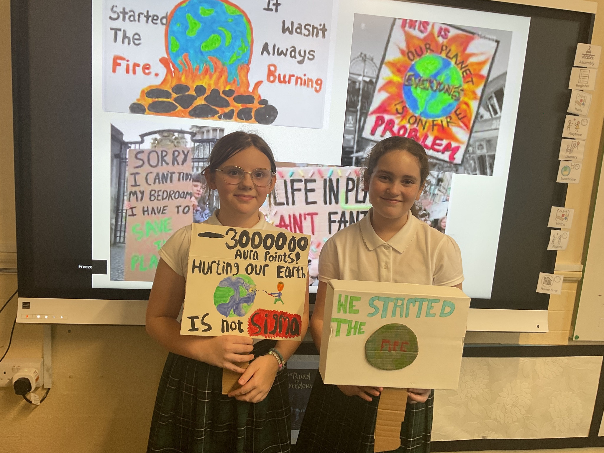 This term, in Year 6, we are studying climate change and looking at activism. As part of our English unit - persuasive speeches - we made protest placards about climate change and global warming. The children have learnt a lot about the causes of climate change and the impact it is having on the Earth. We created slogans and puns to put on our placards and added drawings to illustrate our ideas. The children did a fantastic job and took lots of pride in their work.