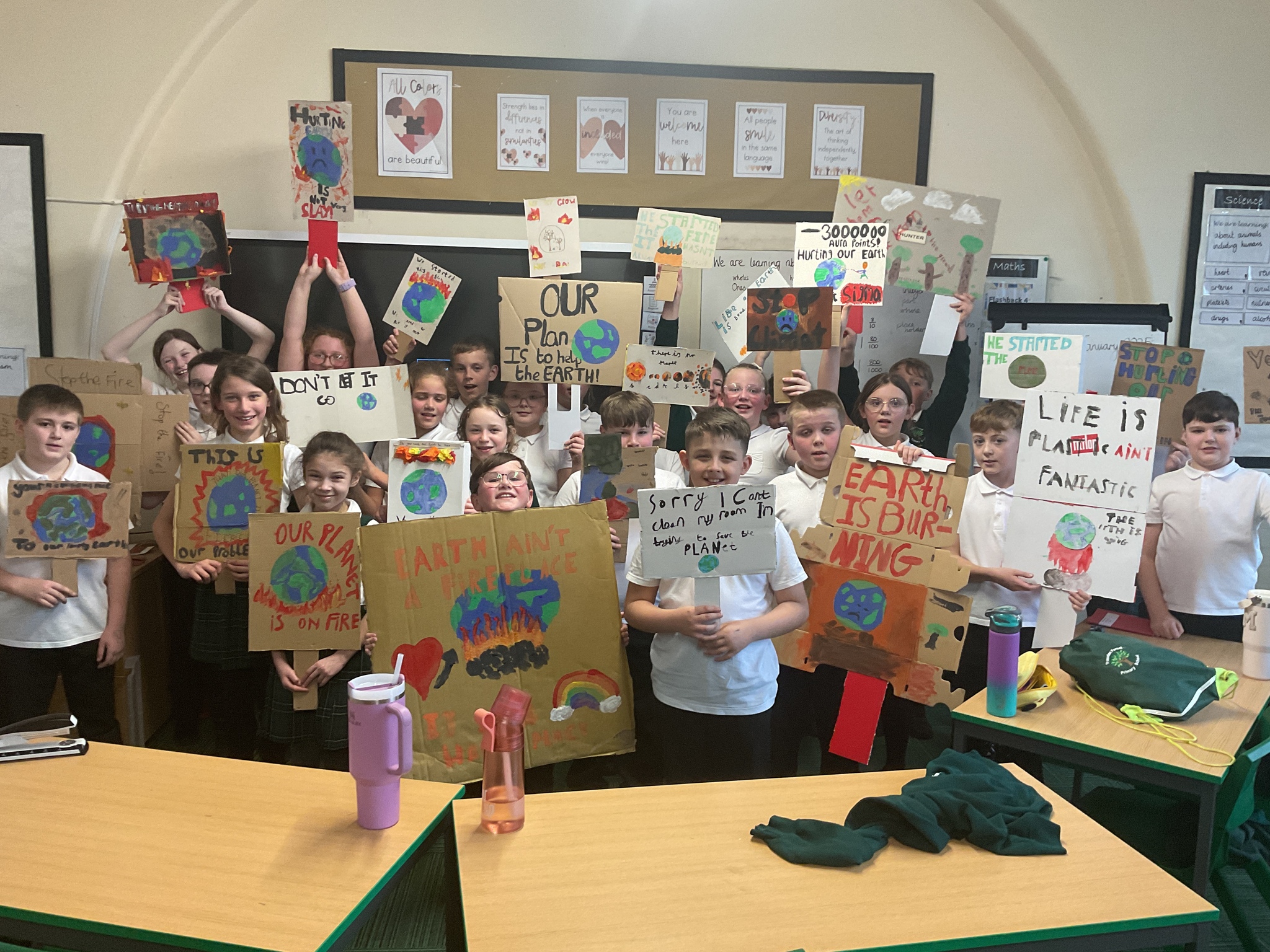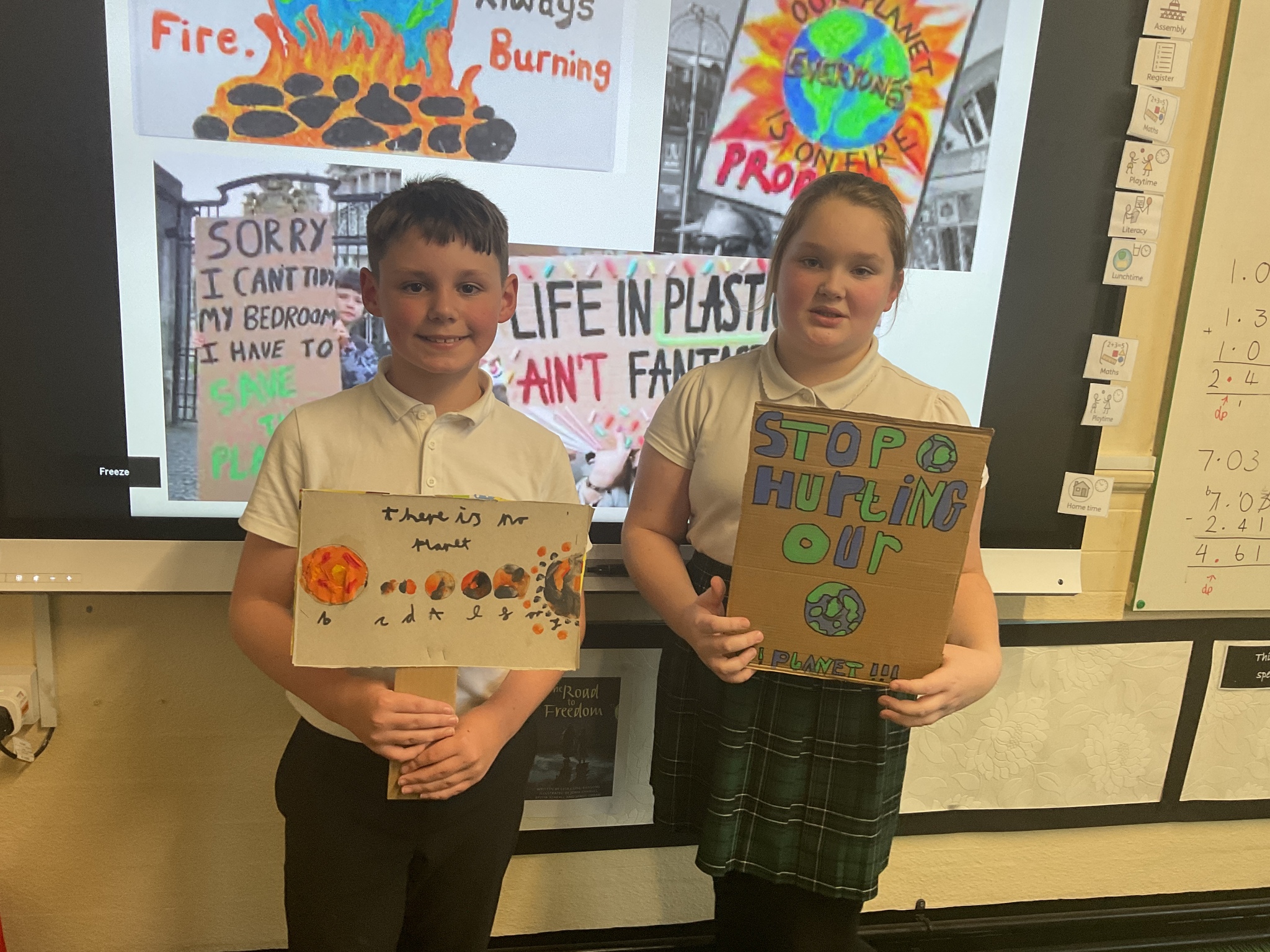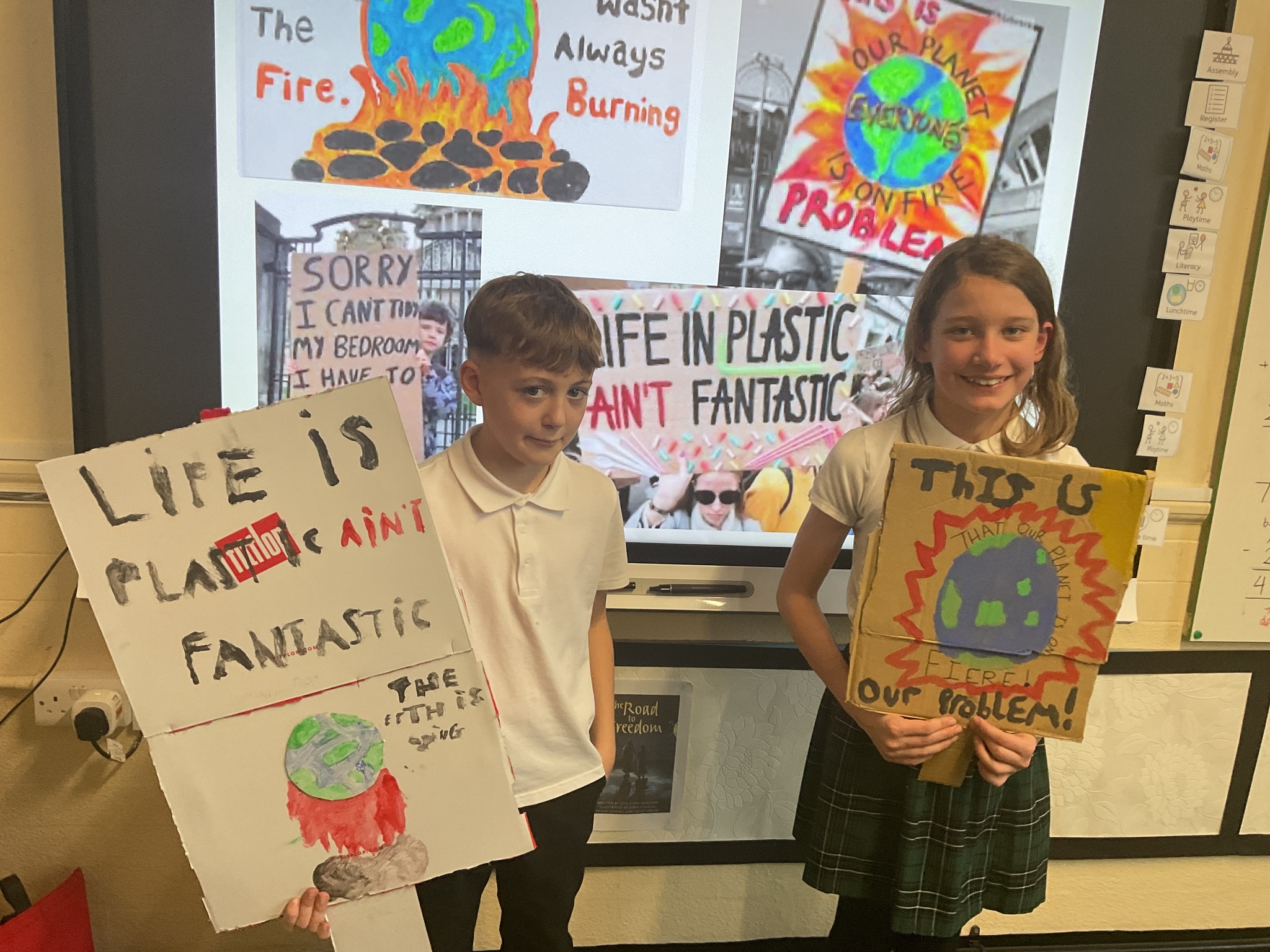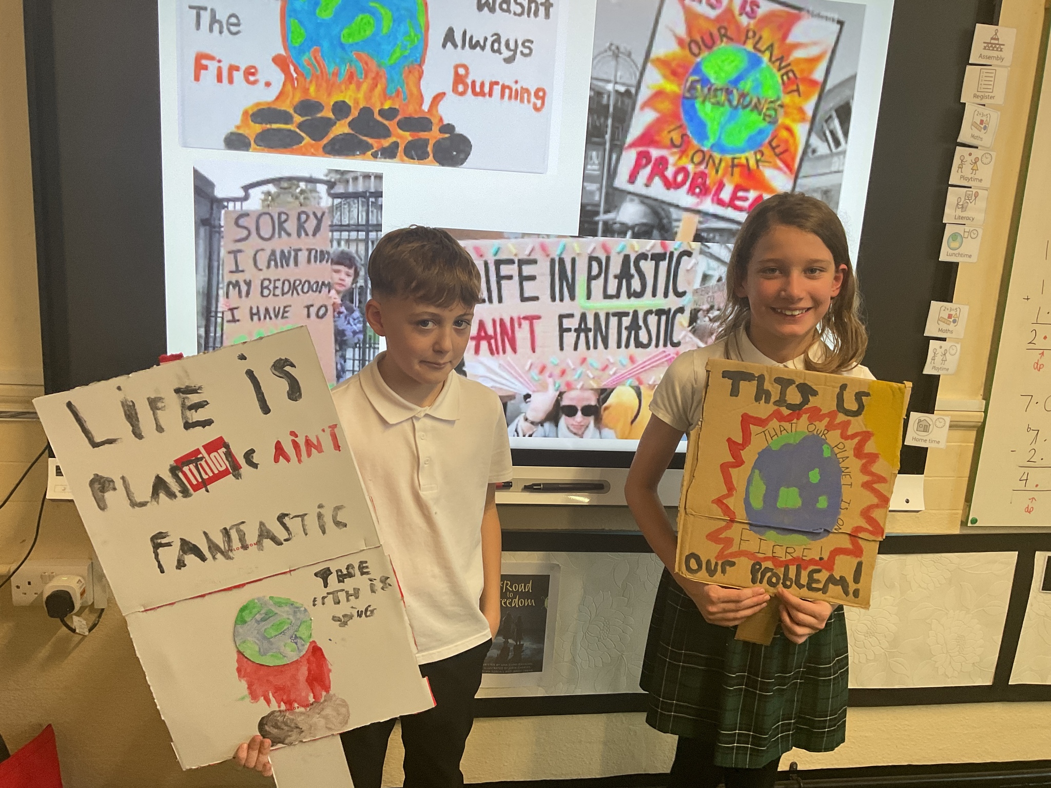 This term, in Year 6, we are studying climate change and looking at activism. As part of our English unit - persuasive speeches - we made protest placards about climate change and global warming. The children have learnt a lot about the causes of climate change and the impact it is having on the Earth. We created slogans and puns to put on our placards and added drawings to illustrate our ideas. The children did a fantastic job and took lots of pride in their work.