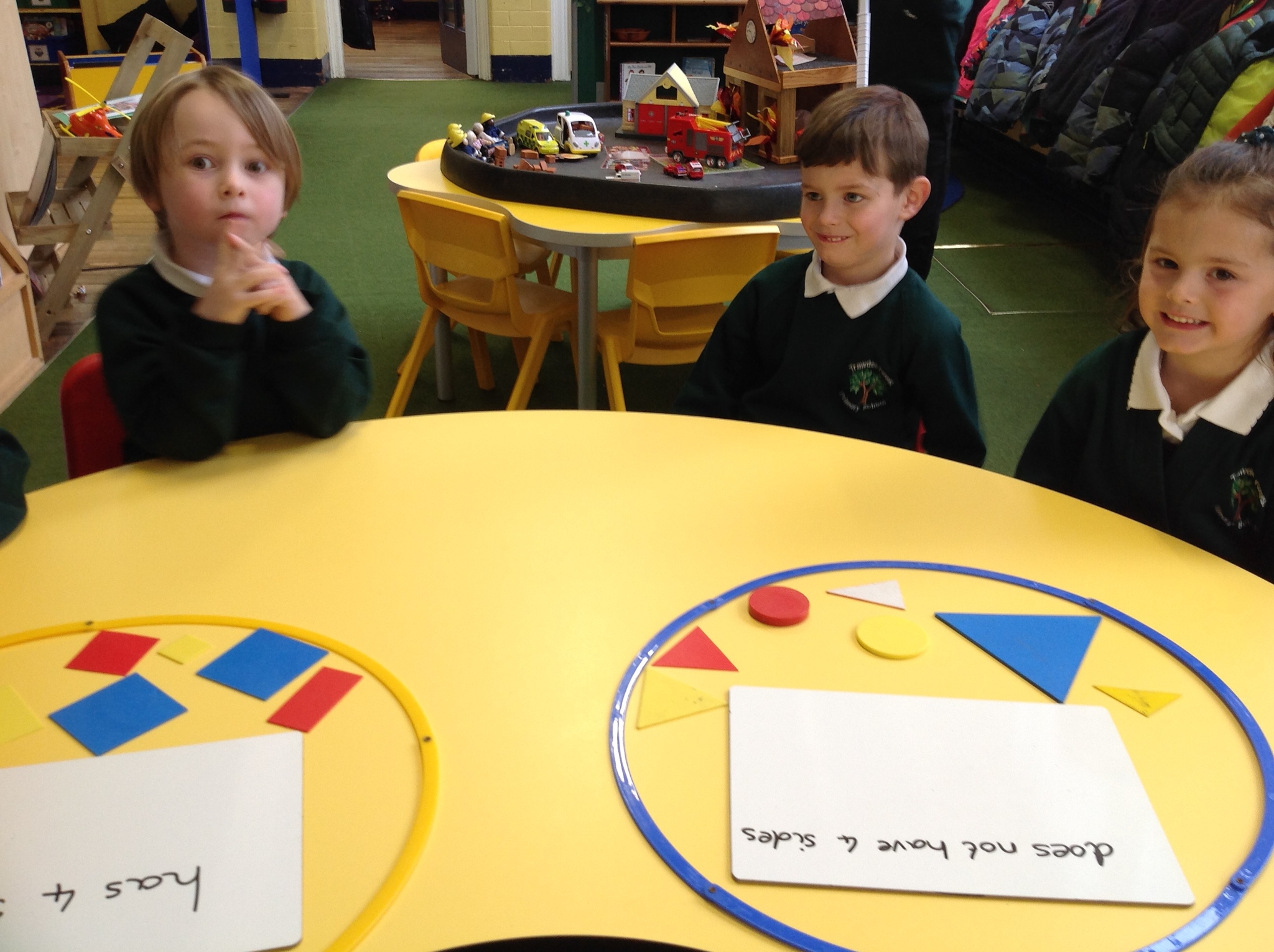 Today we have had lots of fun exploring shapes. First we went on a shape hunt and had to count the sides and name the shapes that we found. Then we sorted our shapes into different groups based on the number of sides that they had. We have learnt a lot!