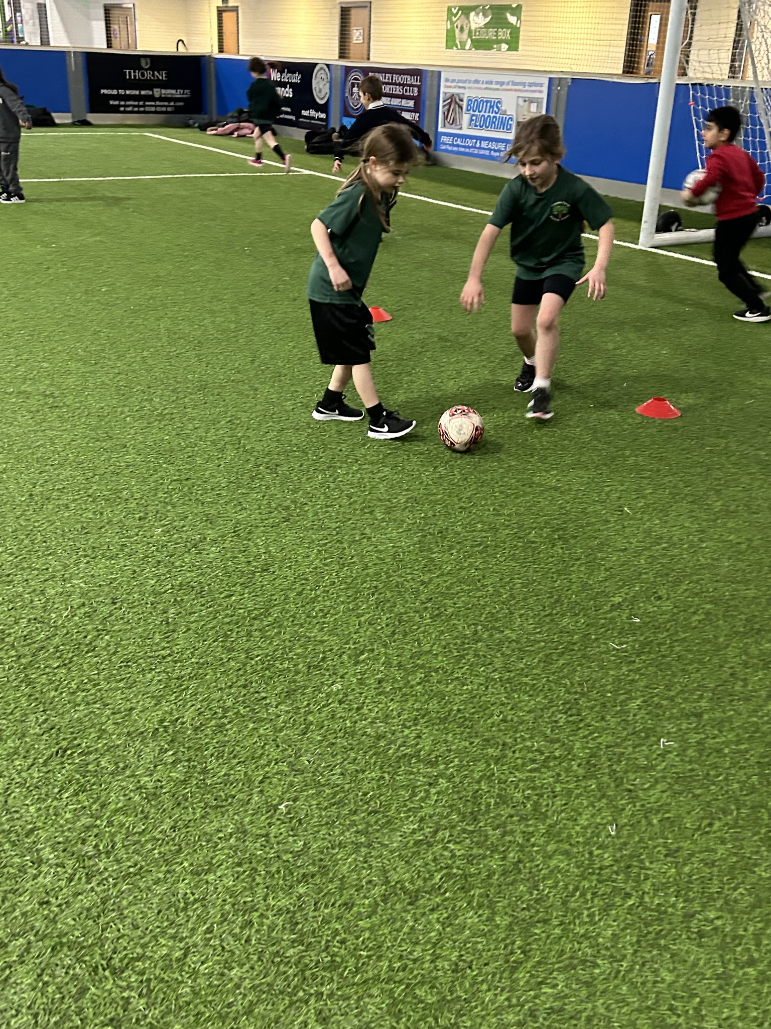 On Friday, some of our Year 2 children ventured out to the Leisure Box for a football skills event. Initially, some of the children were apprehensive about stepping onto the football pitch and kicking a ball, but by the end of the session, they didn’t want to leave! They practiced different skills with the ball, beat some defenders, and even had a mini match at the end. Mr. Trickett and Miss Crocombe were so pleased with the children’s behaviour and resilience, and they were incredibly proud of them all.