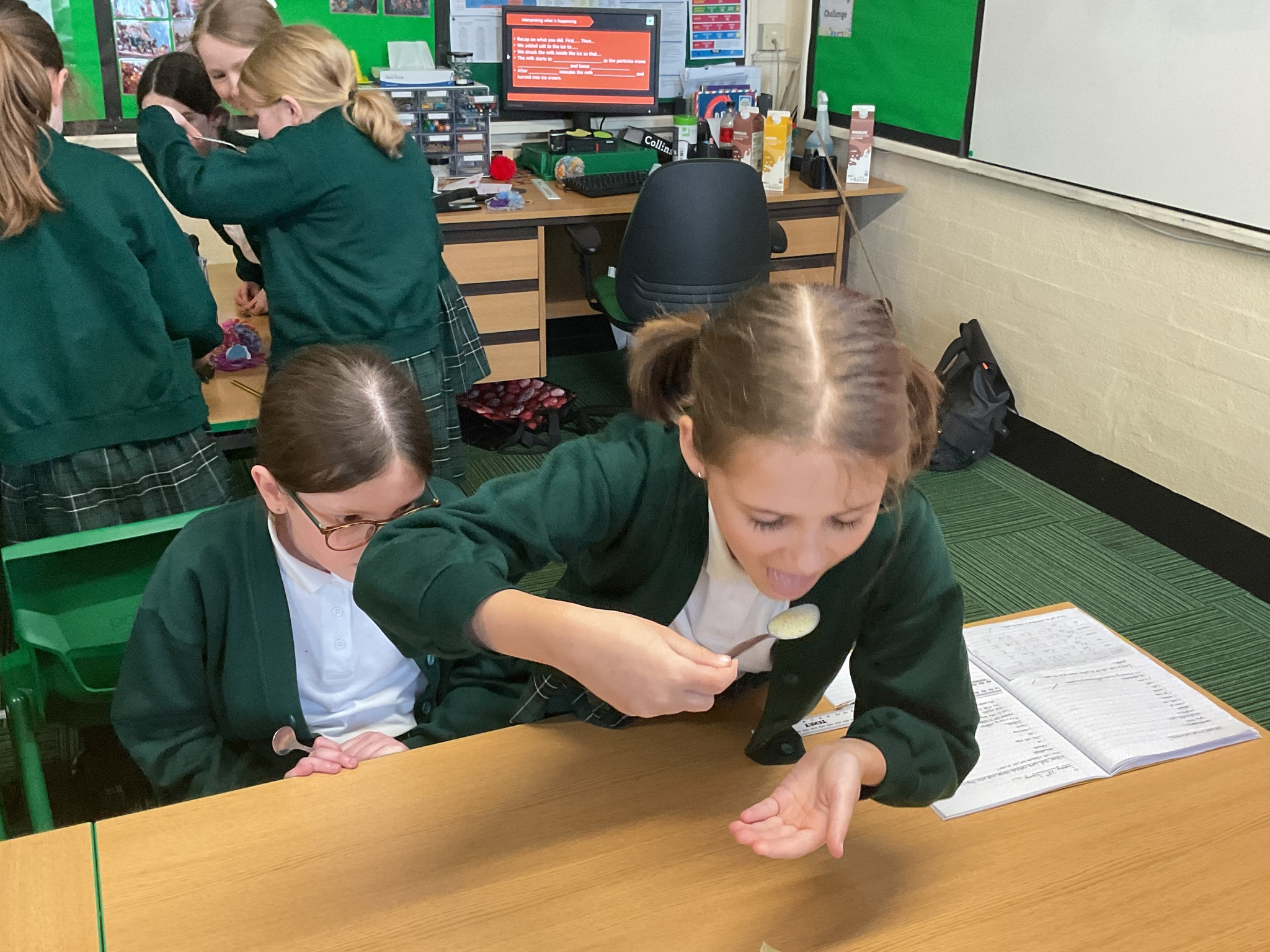 Today, Year 4 pupils dived into an exciting science experiment exploring the changing states of matter! The big question they aimed to answer was: “Does cooled milkshake make ice cream?”