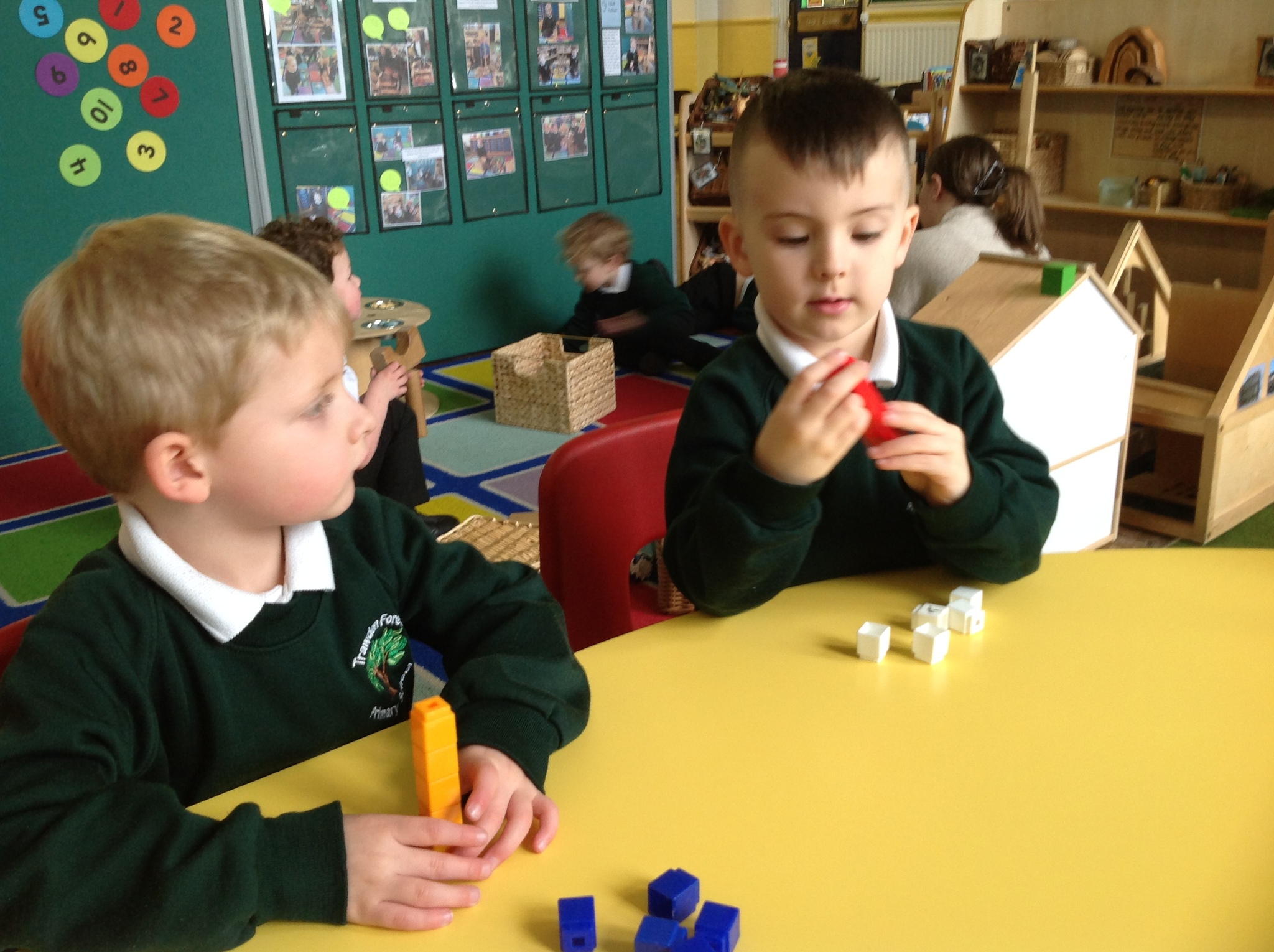 This week we have been learning all about number bonds to 5. The children have looked at different ways of making 5 and used cubes of different colours to explore and show what they have learnt. Well done everyone!