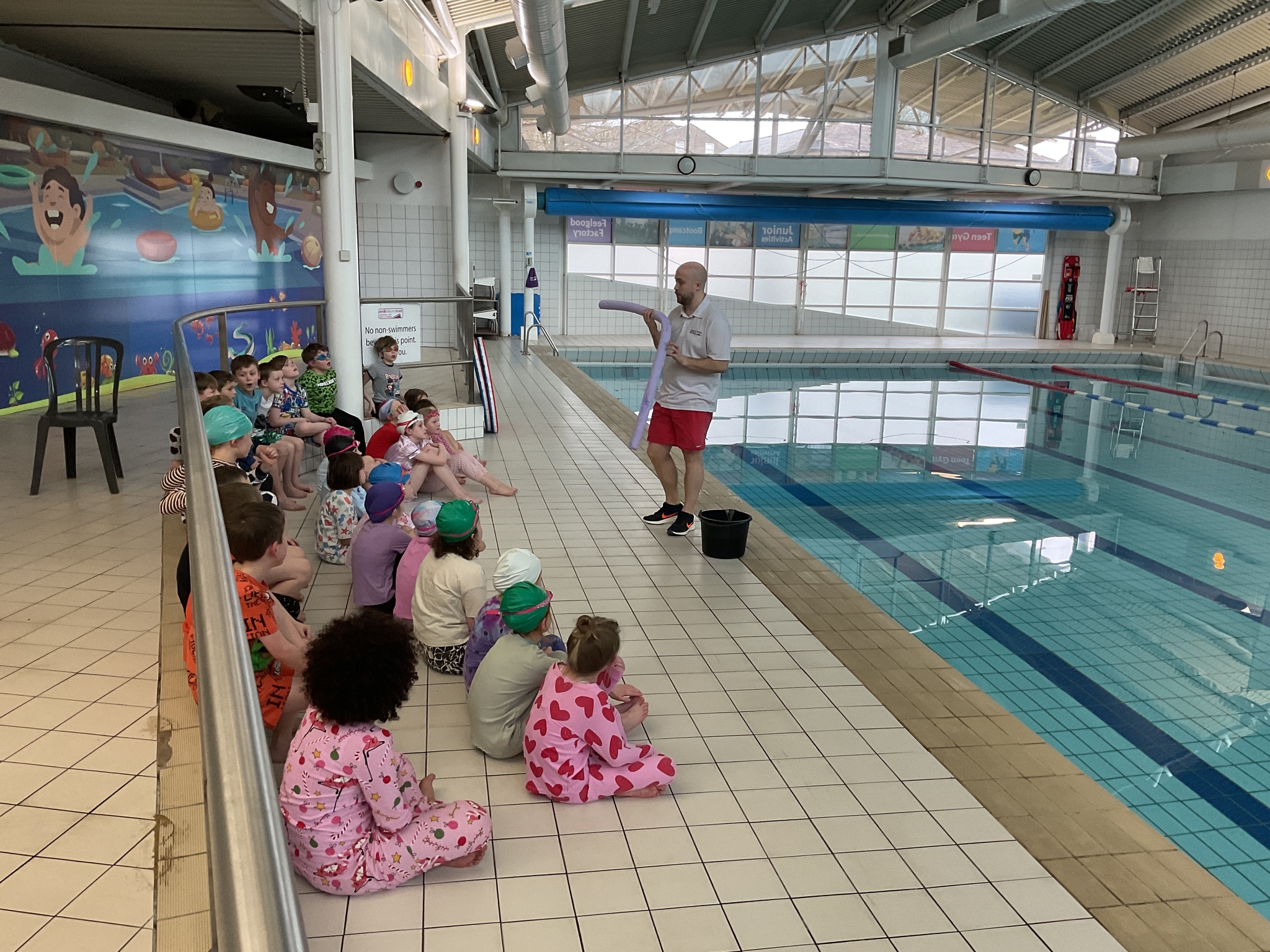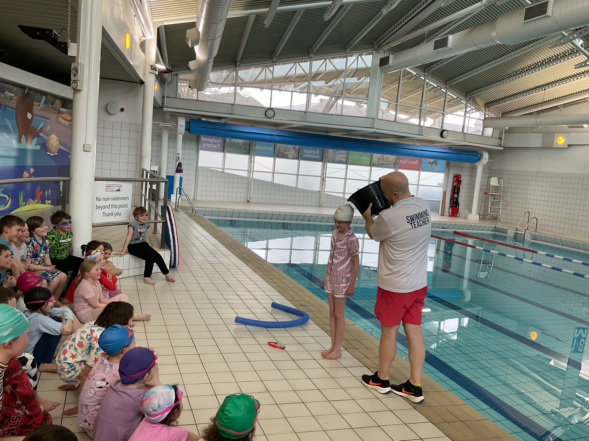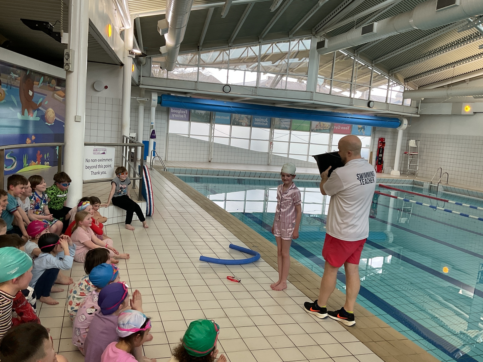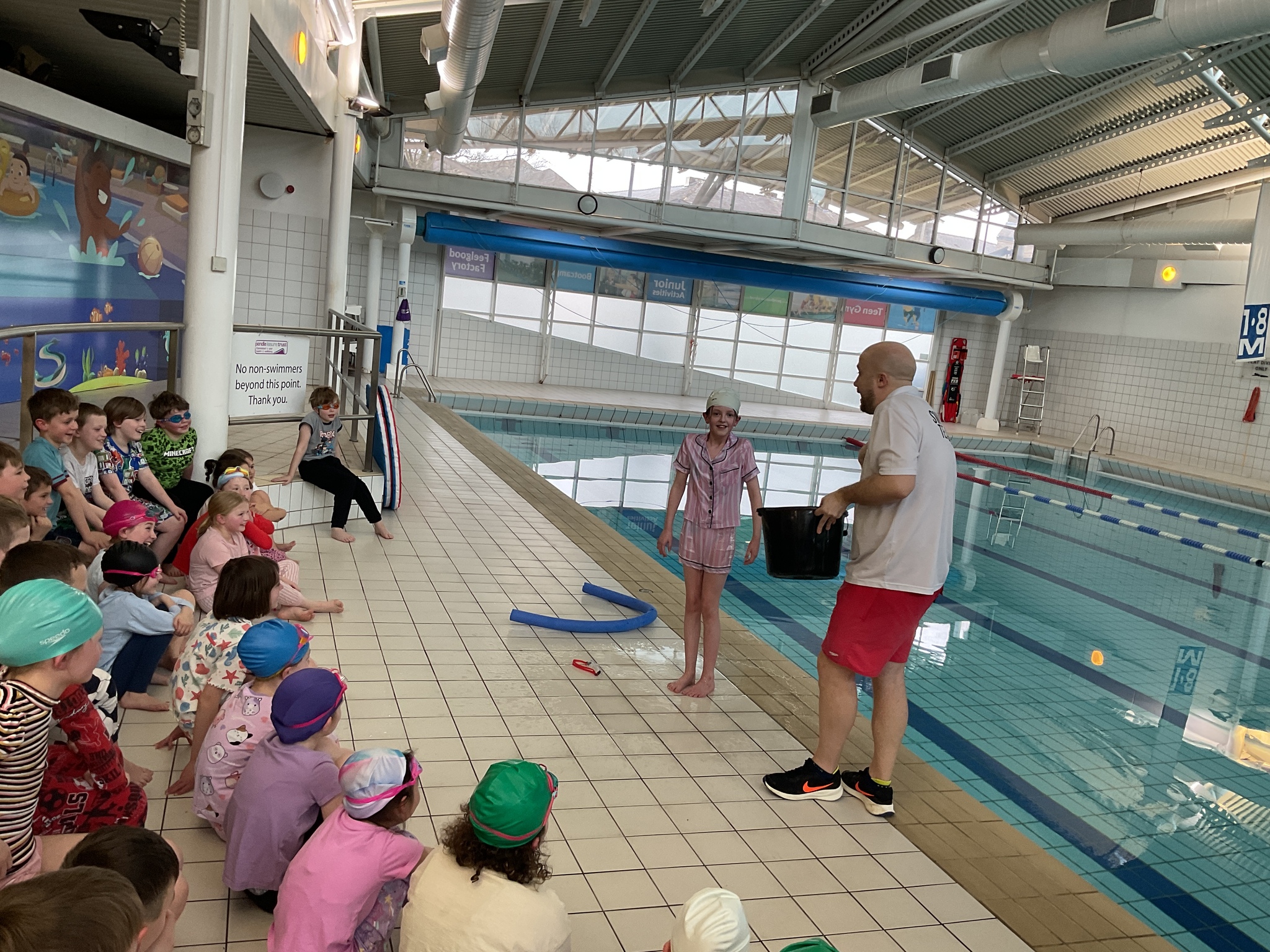 For today's swimming lesson, our wonderful Year 4 students jumped right into the important topic of water safety. They were all prepared with their swimming kits and had an additional challenge of wearing pyjamas on top!
