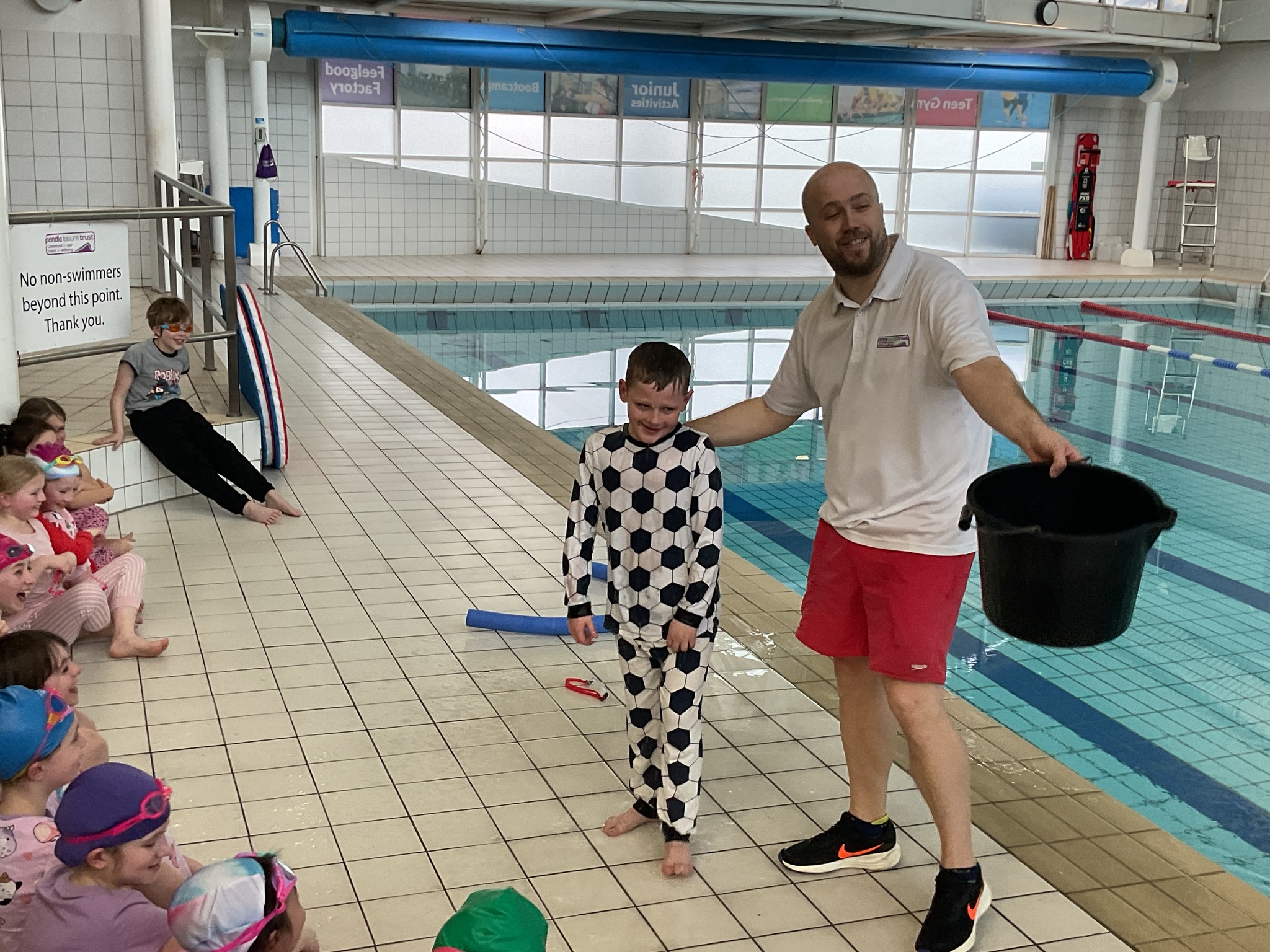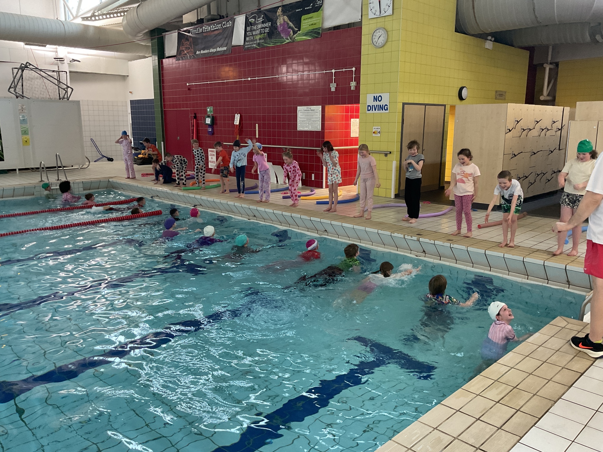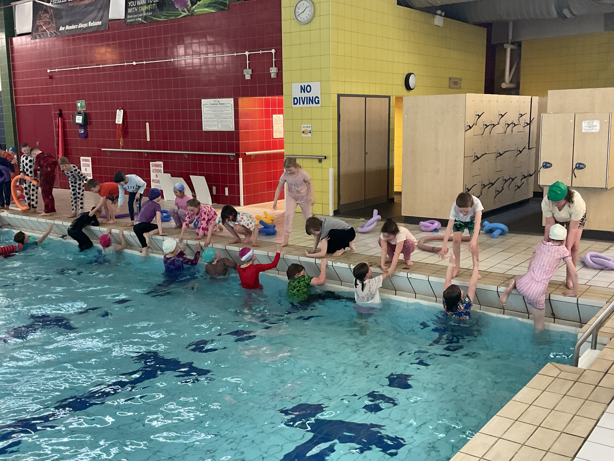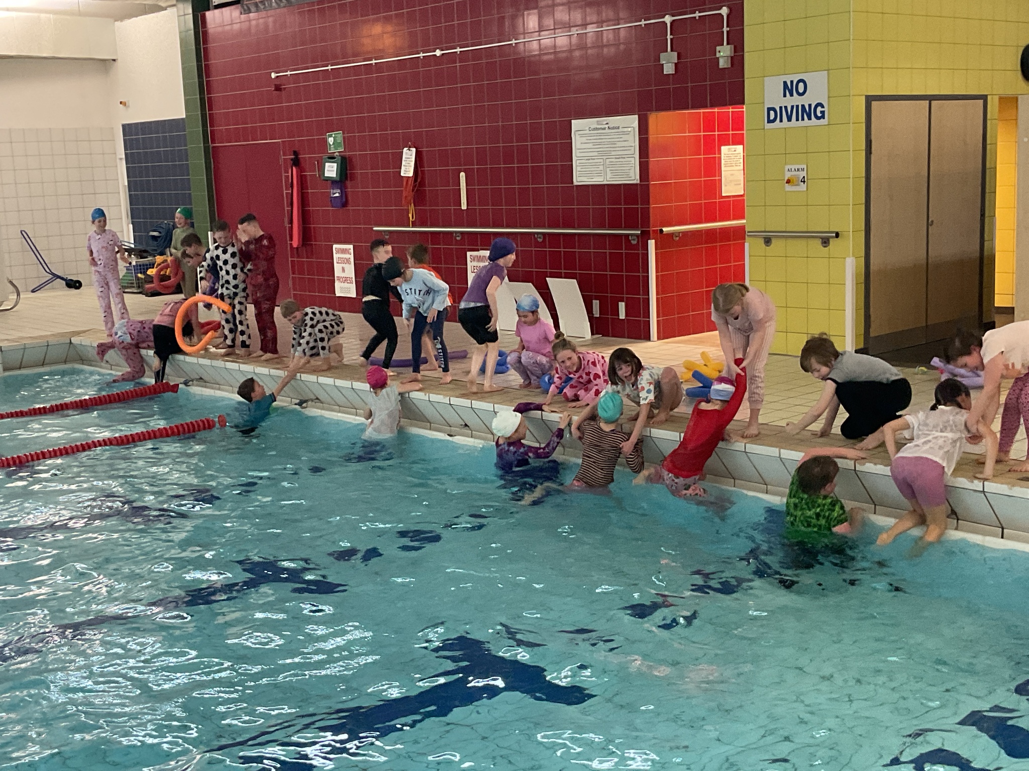 For today's swimming lesson, our wonderful Year 4 students jumped right into the important topic of water safety. They were all prepared with their swimming kits and had an additional challenge of wearing pyjamas on top!