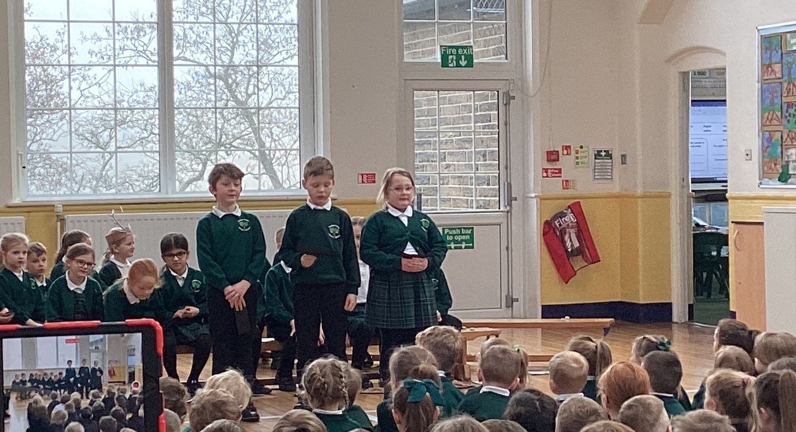 This morning, our year 3 class showcased their creativity and fantastic Stone Age knowledge in their school assembly!