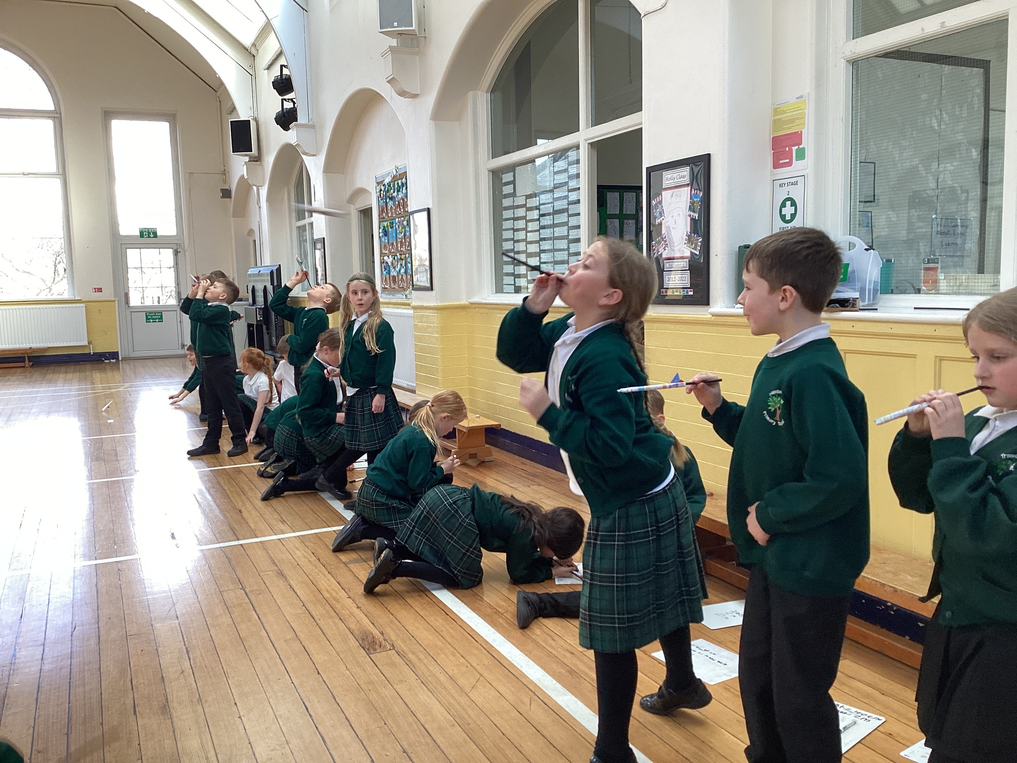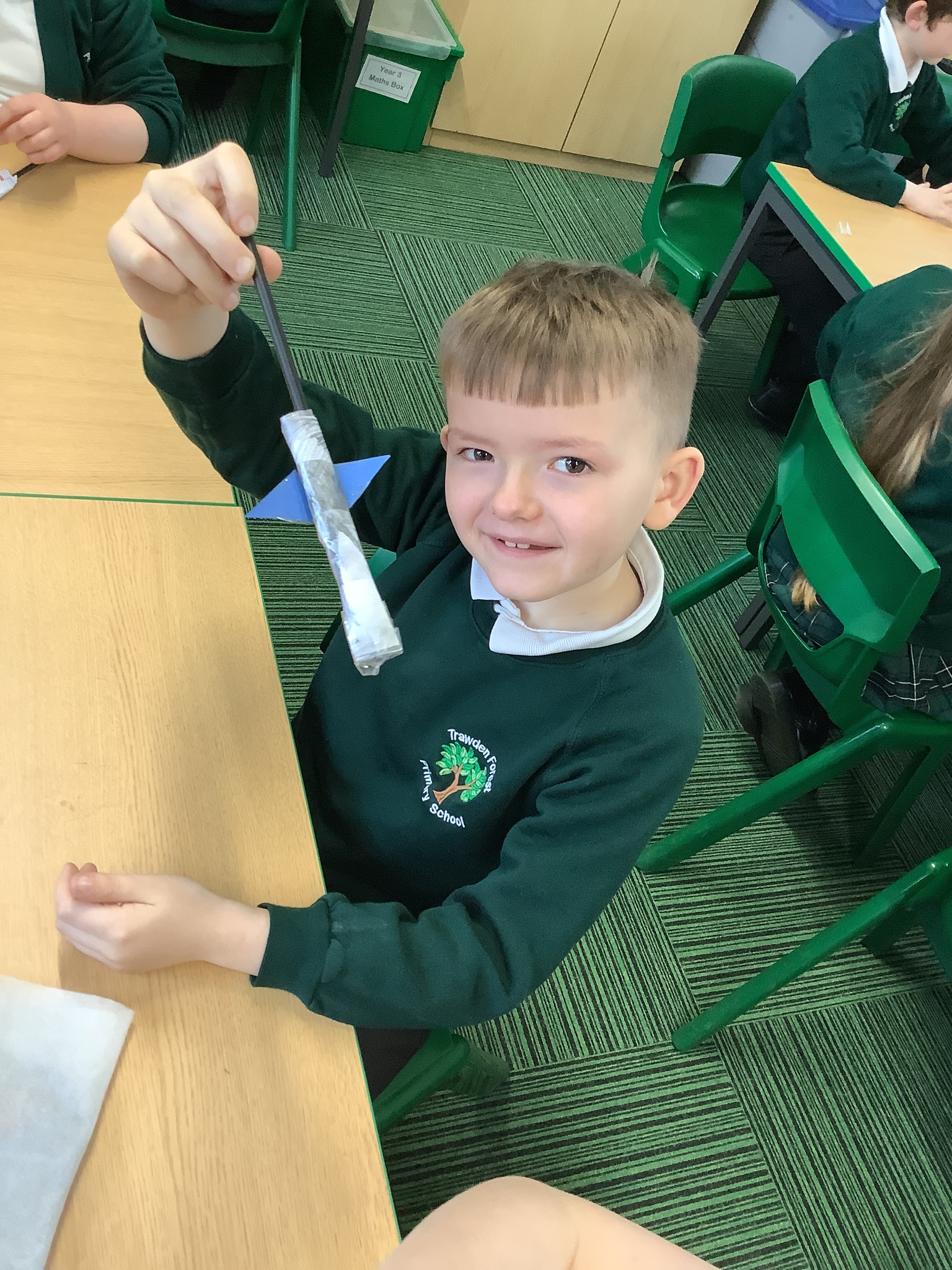 They began by creating their very own rockets which they then flew across the hall, investigating the effect of force. They were able to see if their predictions were correct and if changing the amount of force they used affected the distance their rockets flew. They were able to fly their rockets with so much force that some of them almost flew straight into the dining room!