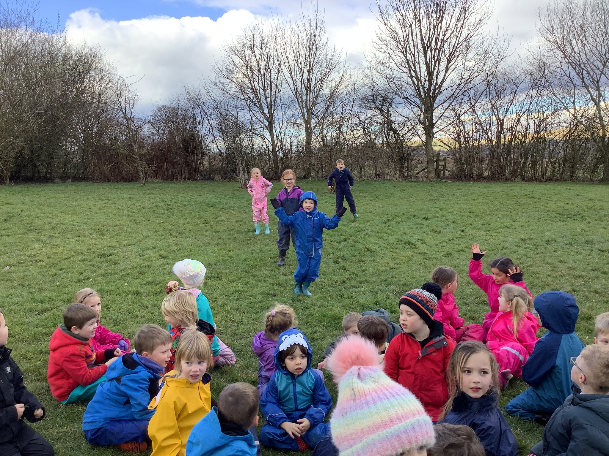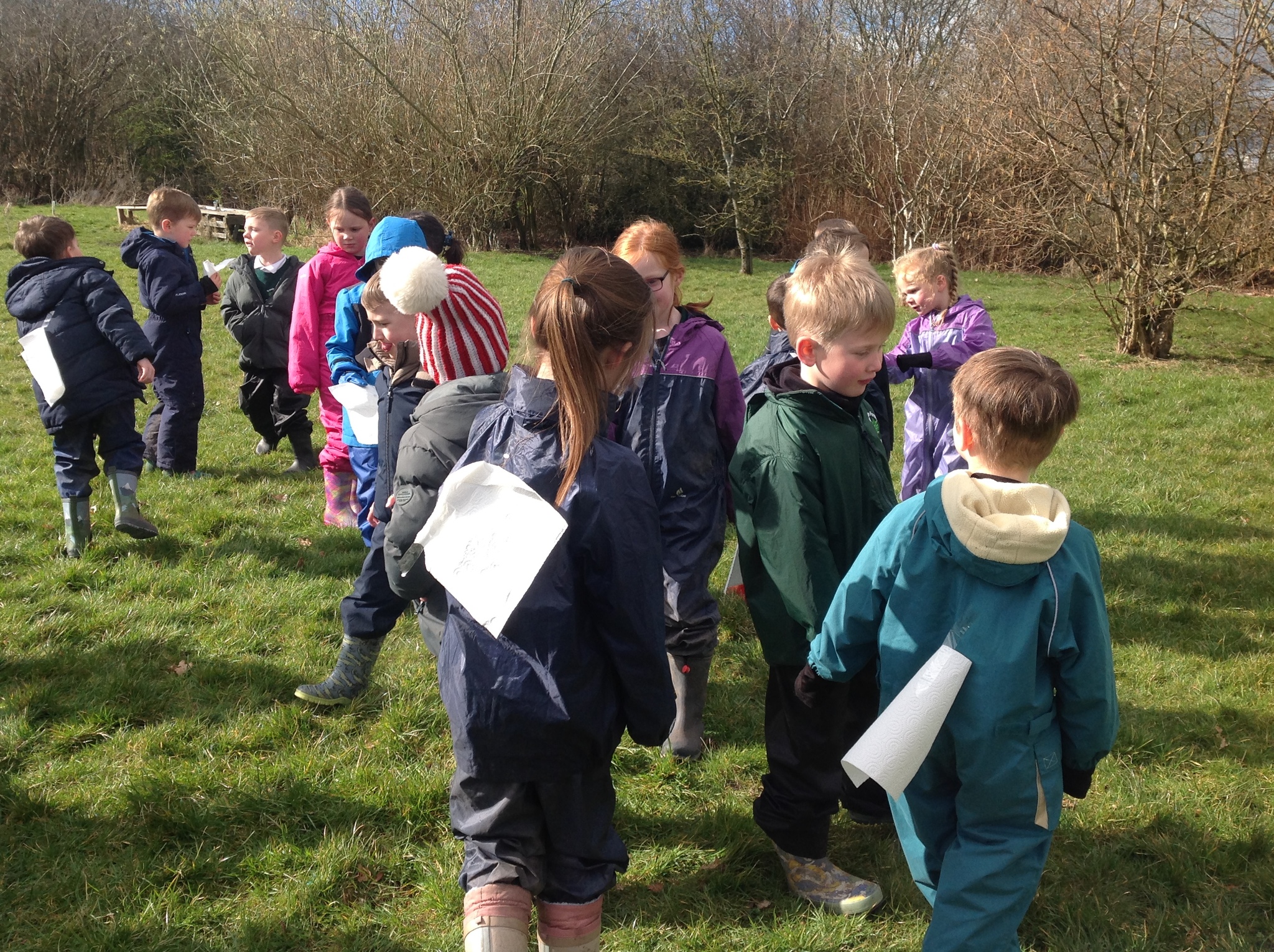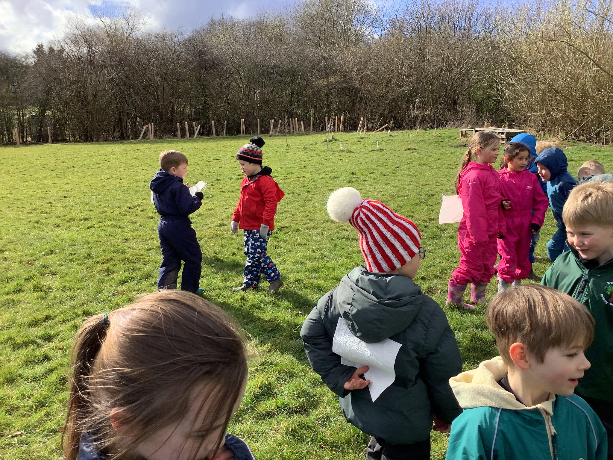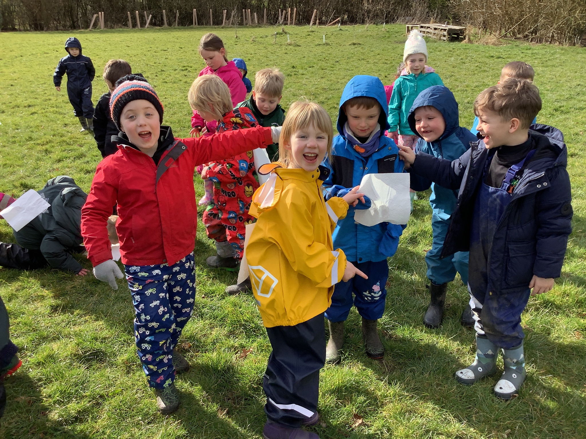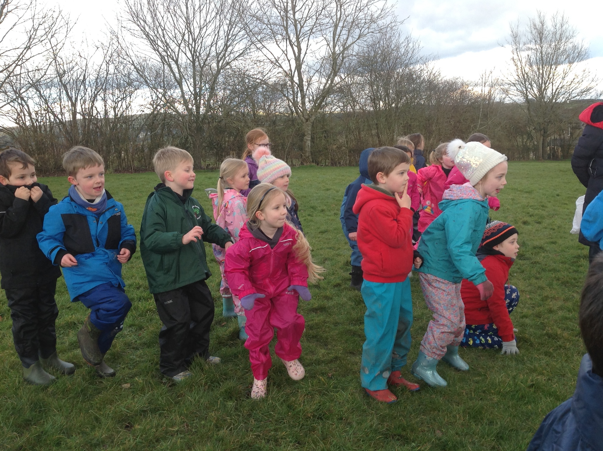 First we played 'Wolves in the flock'. All the children were tagged with a piece of paper, some of which had been sprayed to smell different. The 'sheep' had to use their sense of smell to find who were the wolves in the group even though they looked the same.