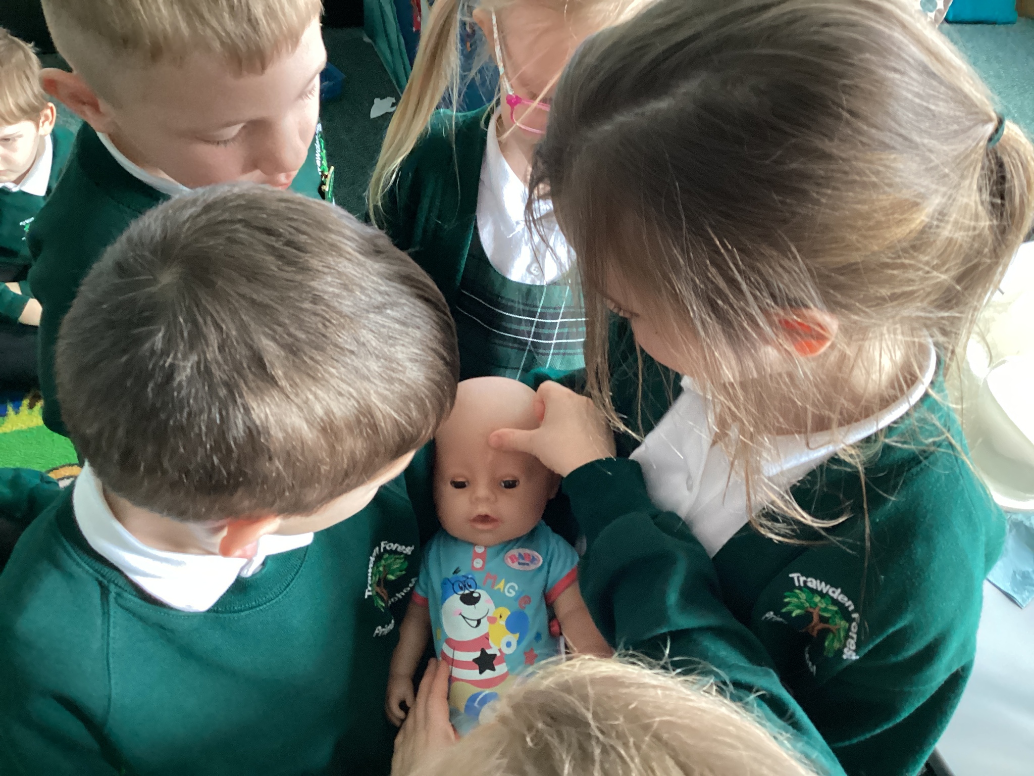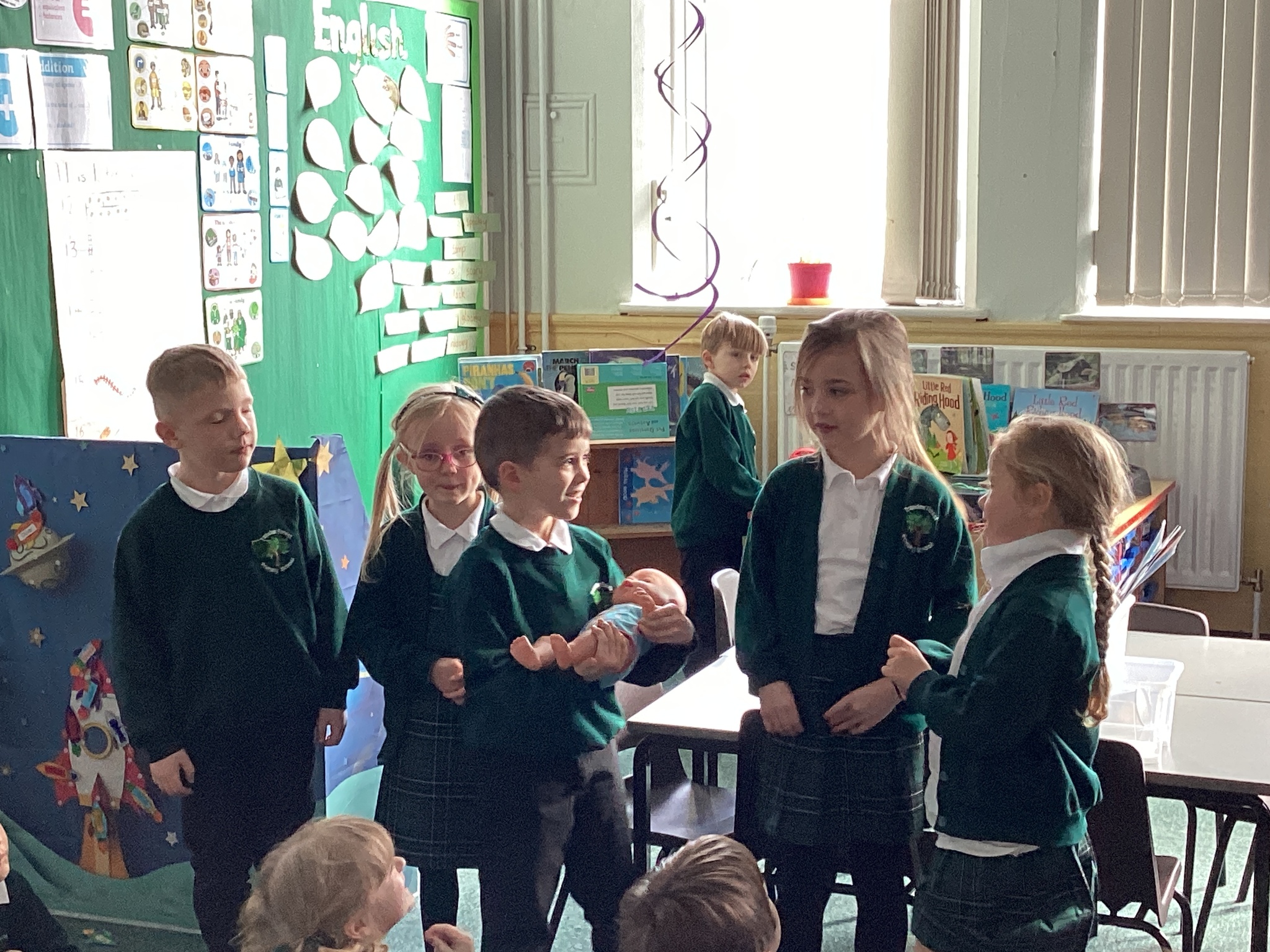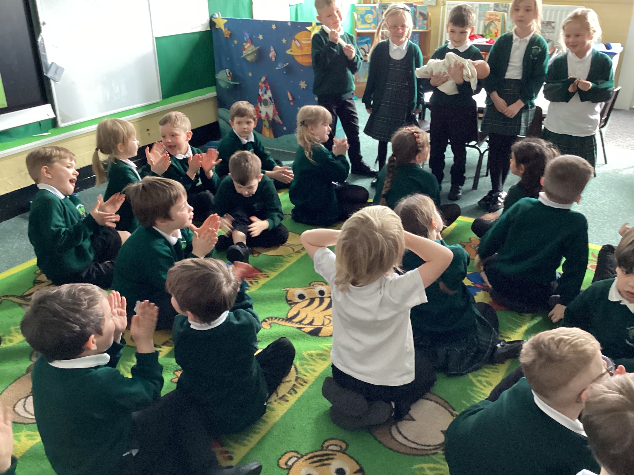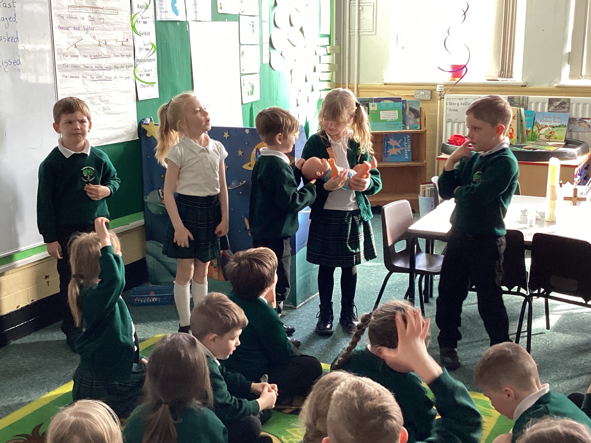 We acted out our own baptisms with parents, priest, godparents and a very well behaved baby. The children did a great job of recognising the symbols used and remembering what to say.