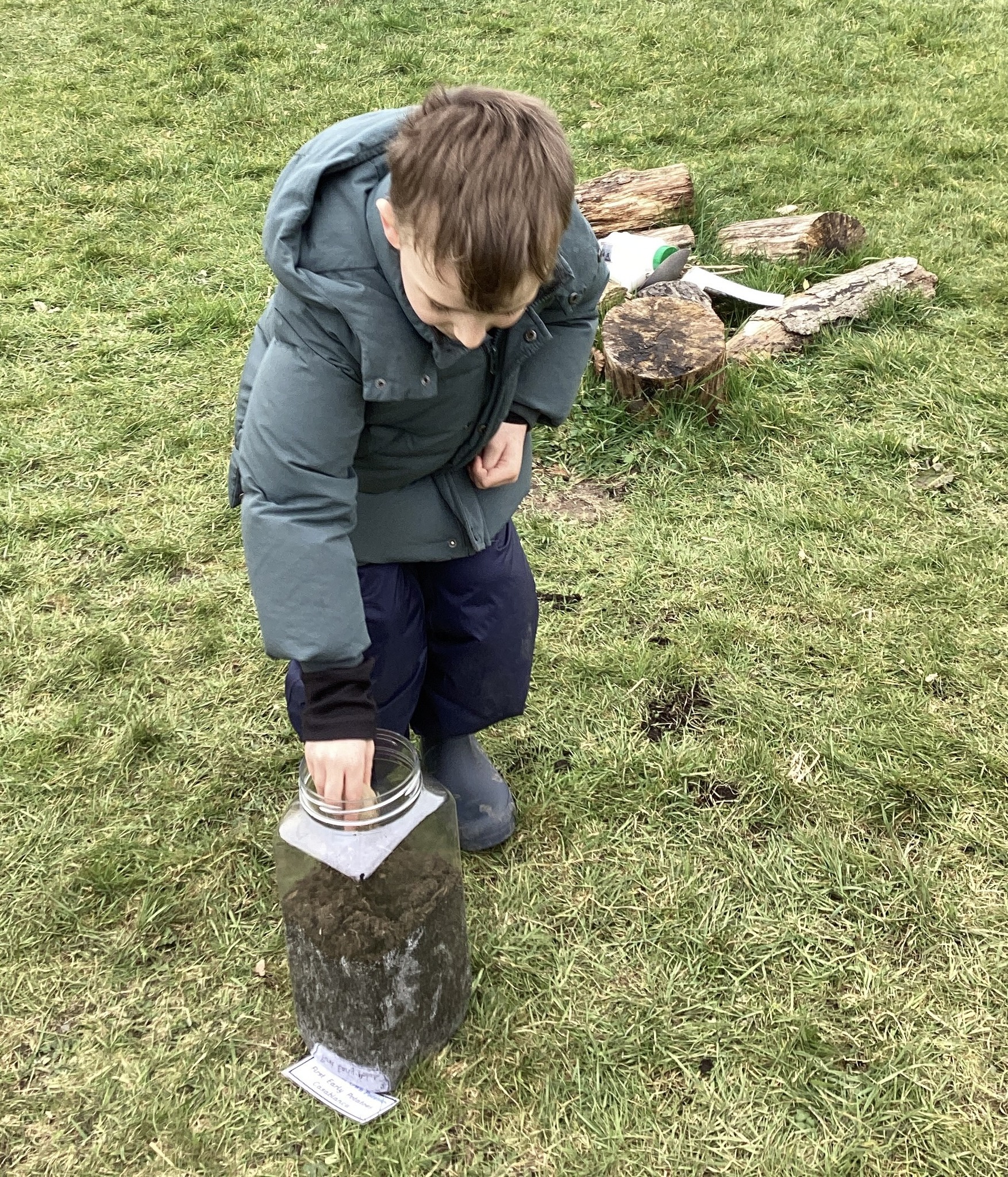 In addition, with some help from Year 1, we're conducting a fun ‘Below the Soil’ experiment. We’re growing a seed potato in a clear plastic container to observe how the roots develop and how the potato grows.