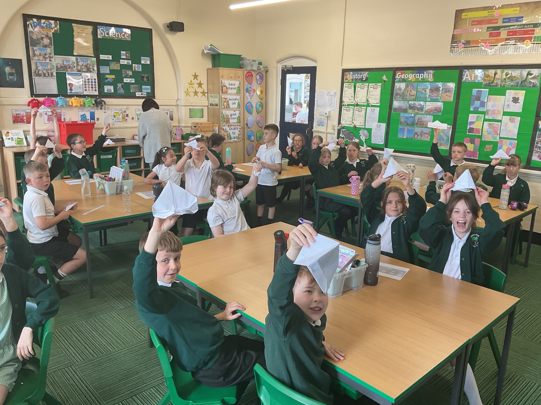 This led to a discussion about resilience—how it felt to face difficulties and brainstorming ways to overcome them together. After some reflection, Mr Loynds stepped in to demonstrate the art of paper boat making, and the children quickly mastered the technique, crafting not one but TWO boats each! One for display and the other for… testing, of course! After all, you can’t make a paper boat and not see it float!