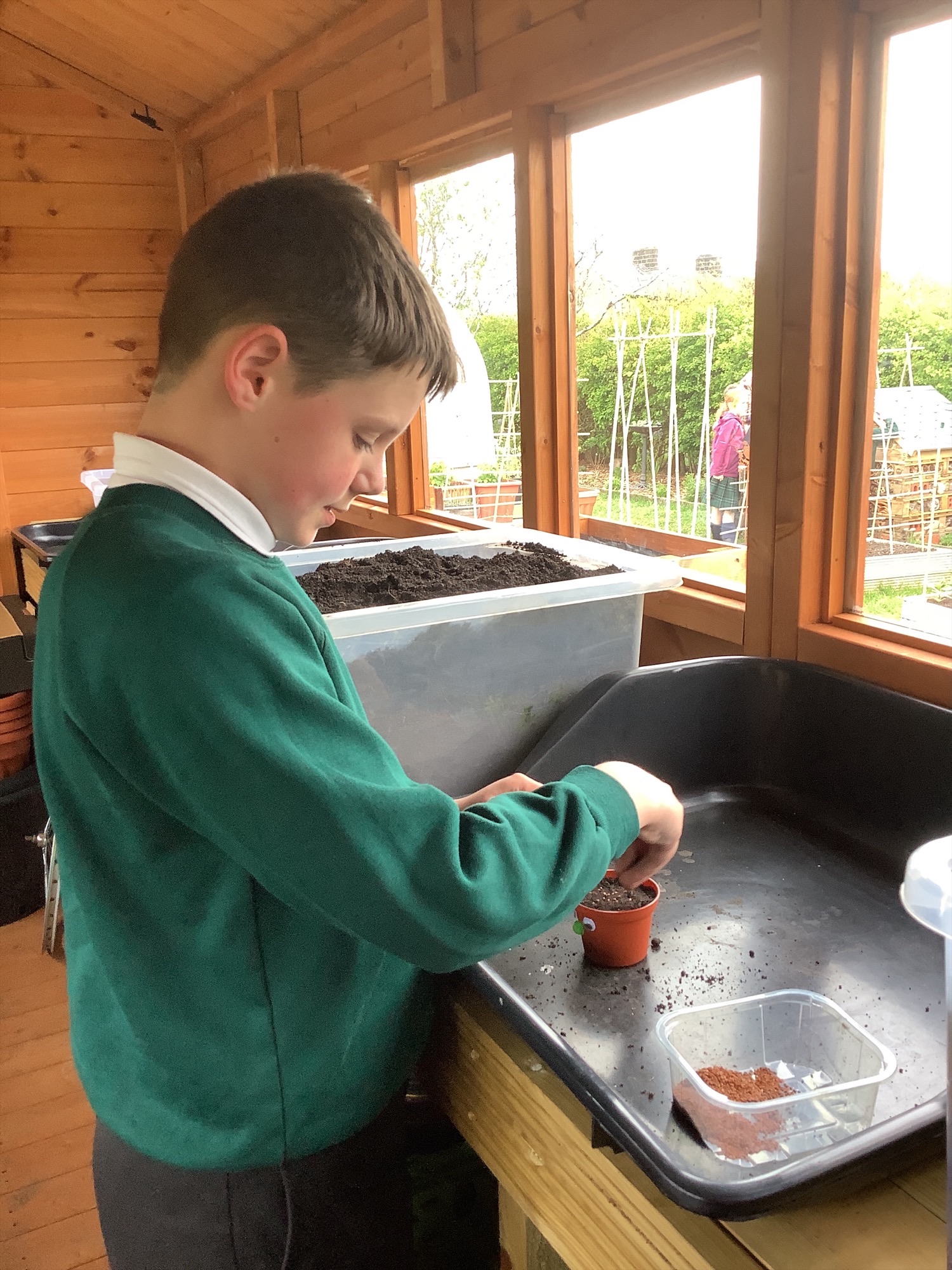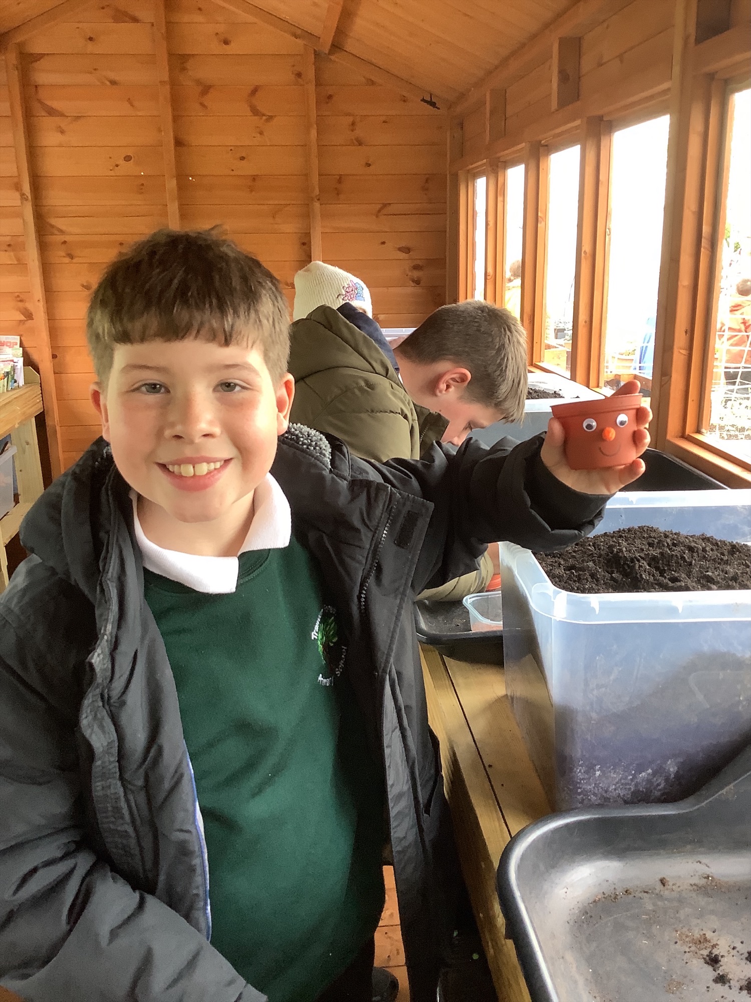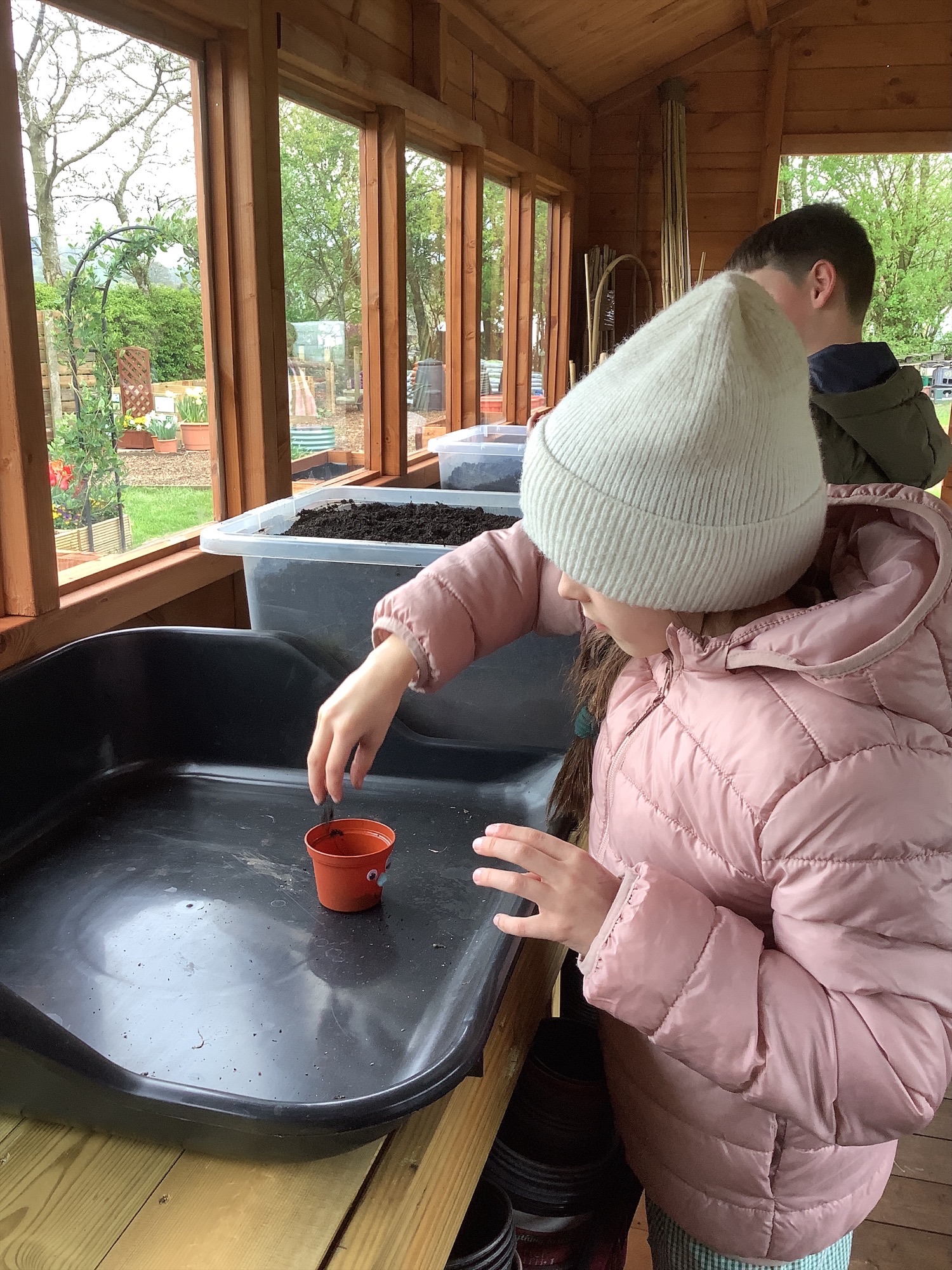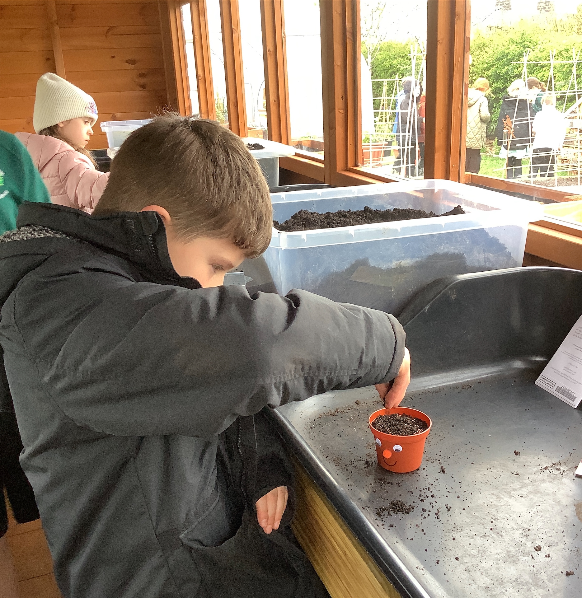 We also made our very own cress pot men which are now tucked away in the polytunnel. We’re looking forward to watching their cress hair grow – they’re going to look fabulous!