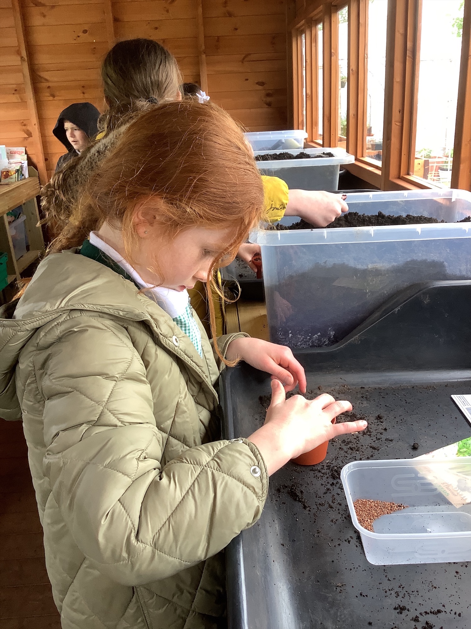 We have been very busy preparing our brand-new raised planters. The children showed incredible teamwork as they filled them using a Hugelkultur-inspired method – layering logs and decaying wood to create a sustainable, nutrient-rich base. This centuries-old gardening technique is great for the environment and perfect for supporting healthy plant growth.
