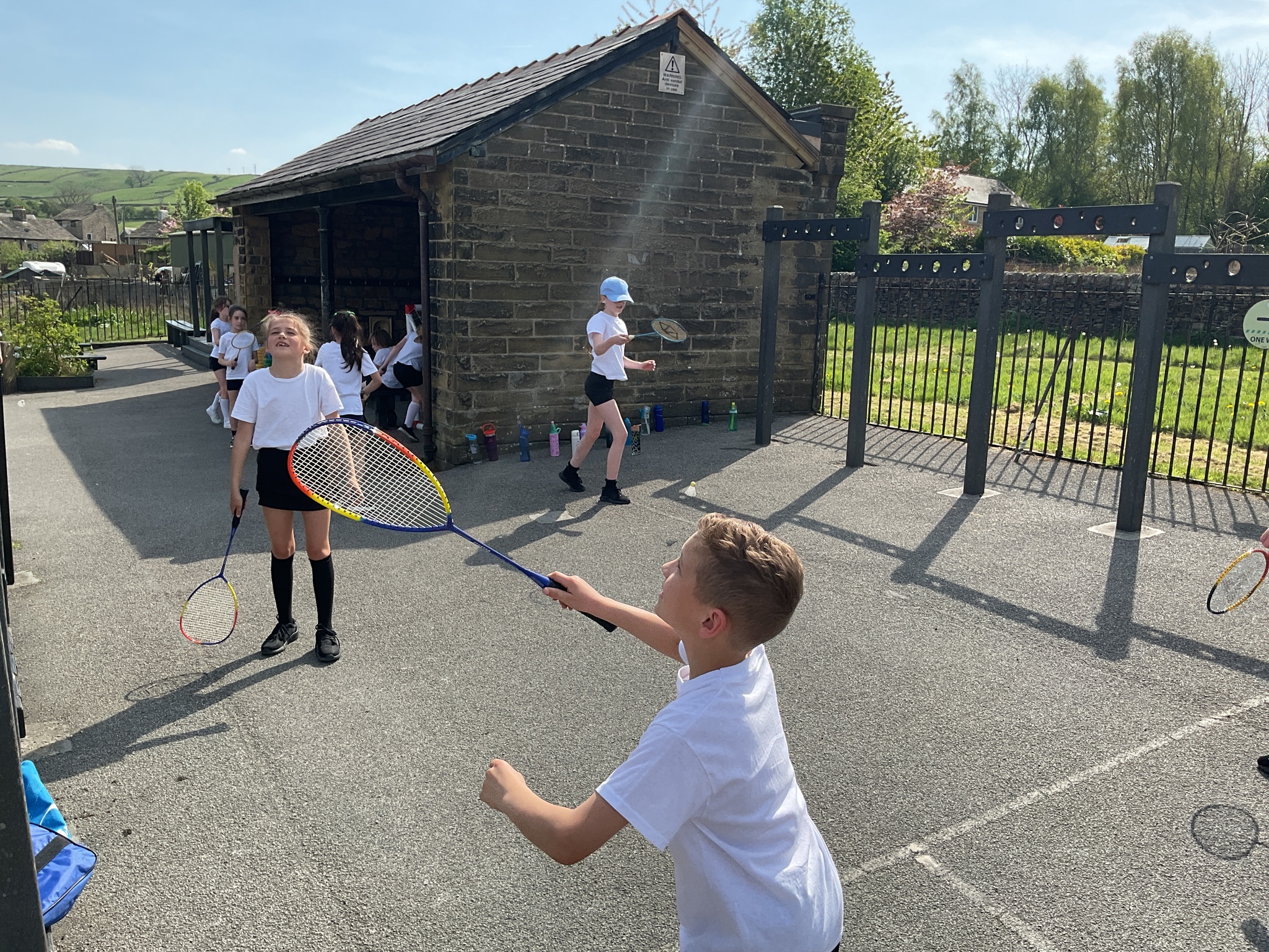 What a fantastic day for our PE lesson! We took full advantage of the glorious weather and brought our badminton skills to the great outdoors.