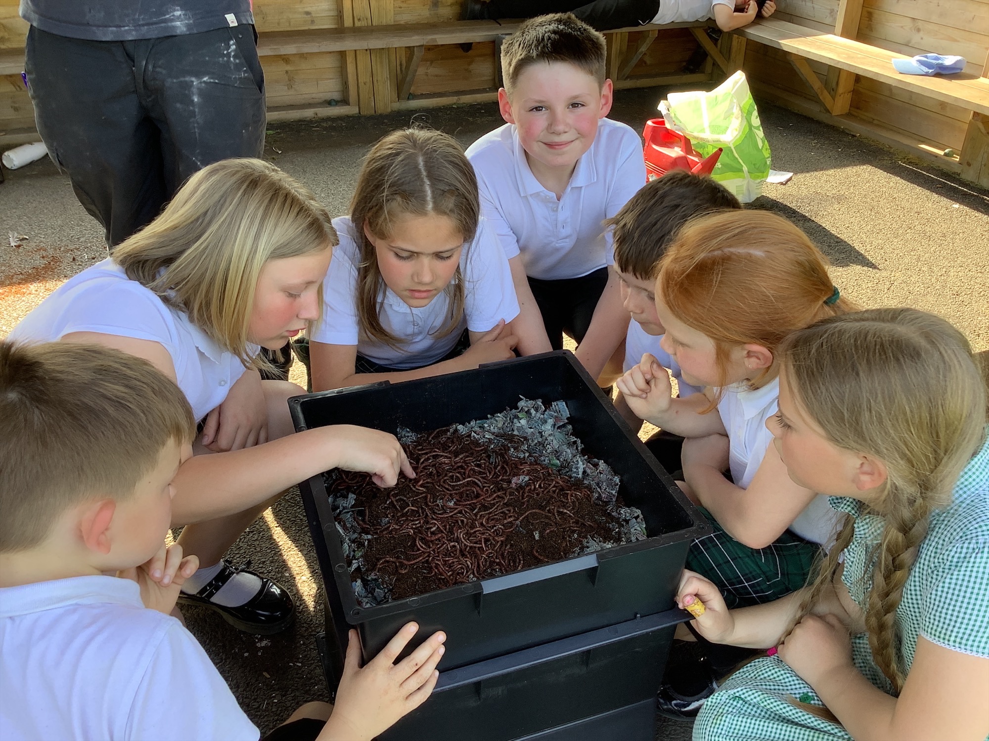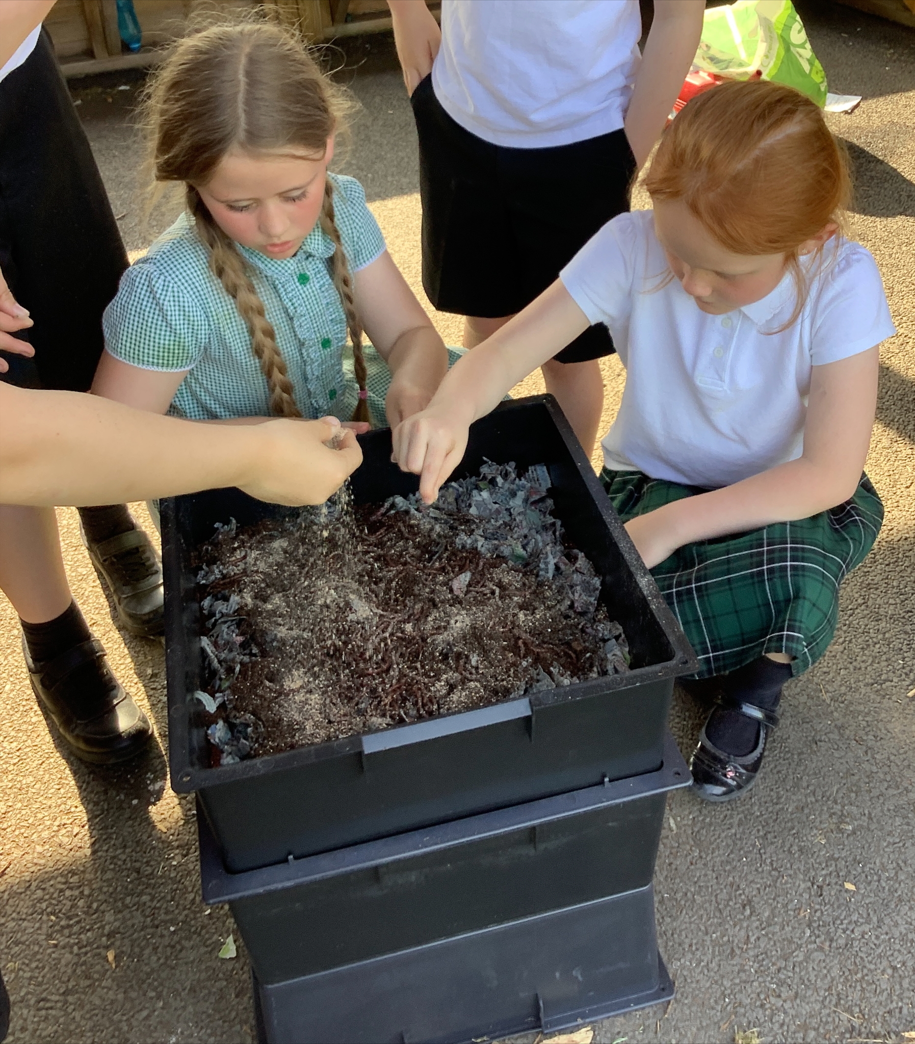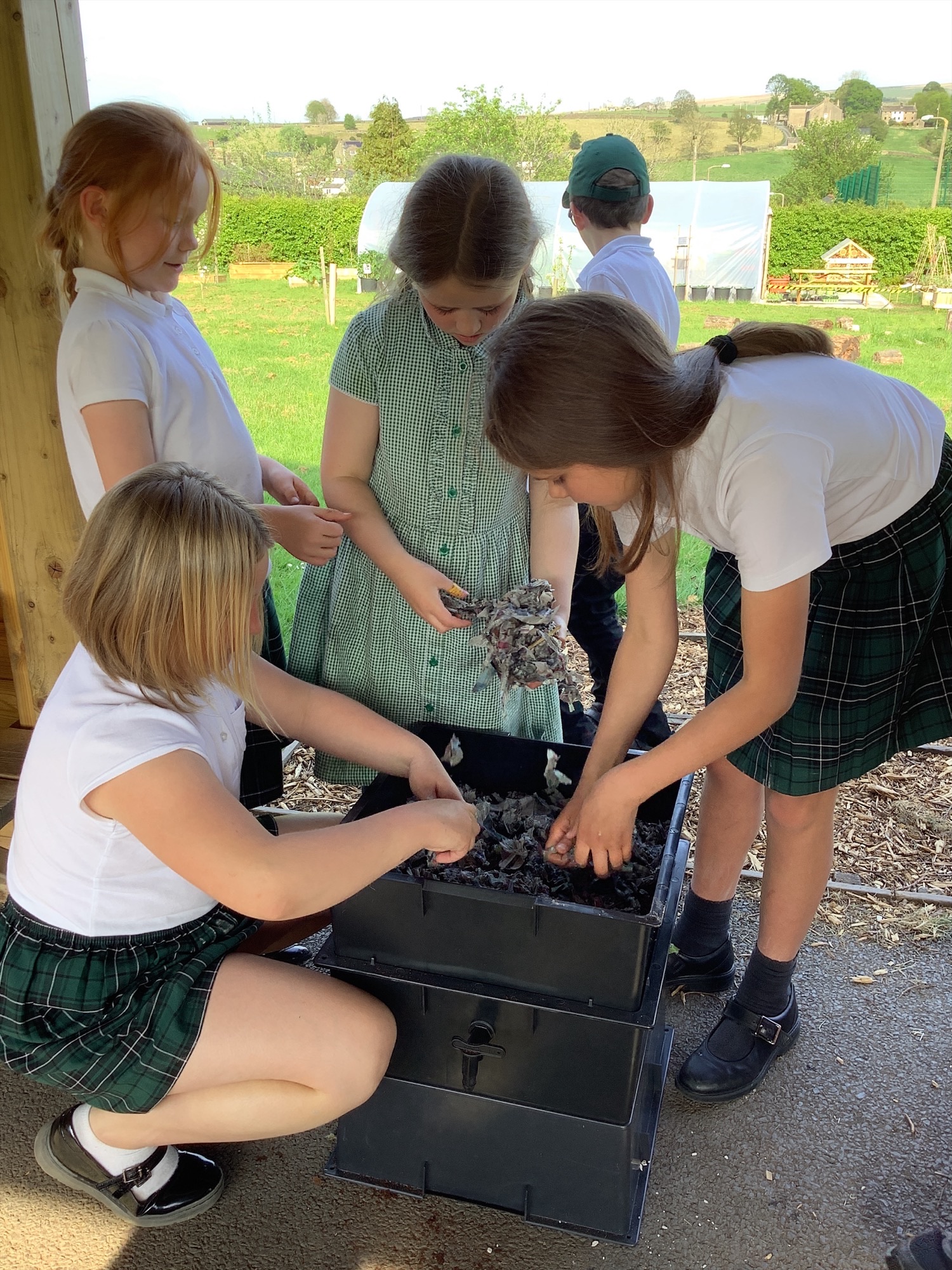 The children in our gardening club did a fantastic job working together to set it all up. They learned about vermicomposting, discovered how these special worms differ from the ones found in our garden, and got hands-on experience preparing the bedding and food for our new wriggly friends!