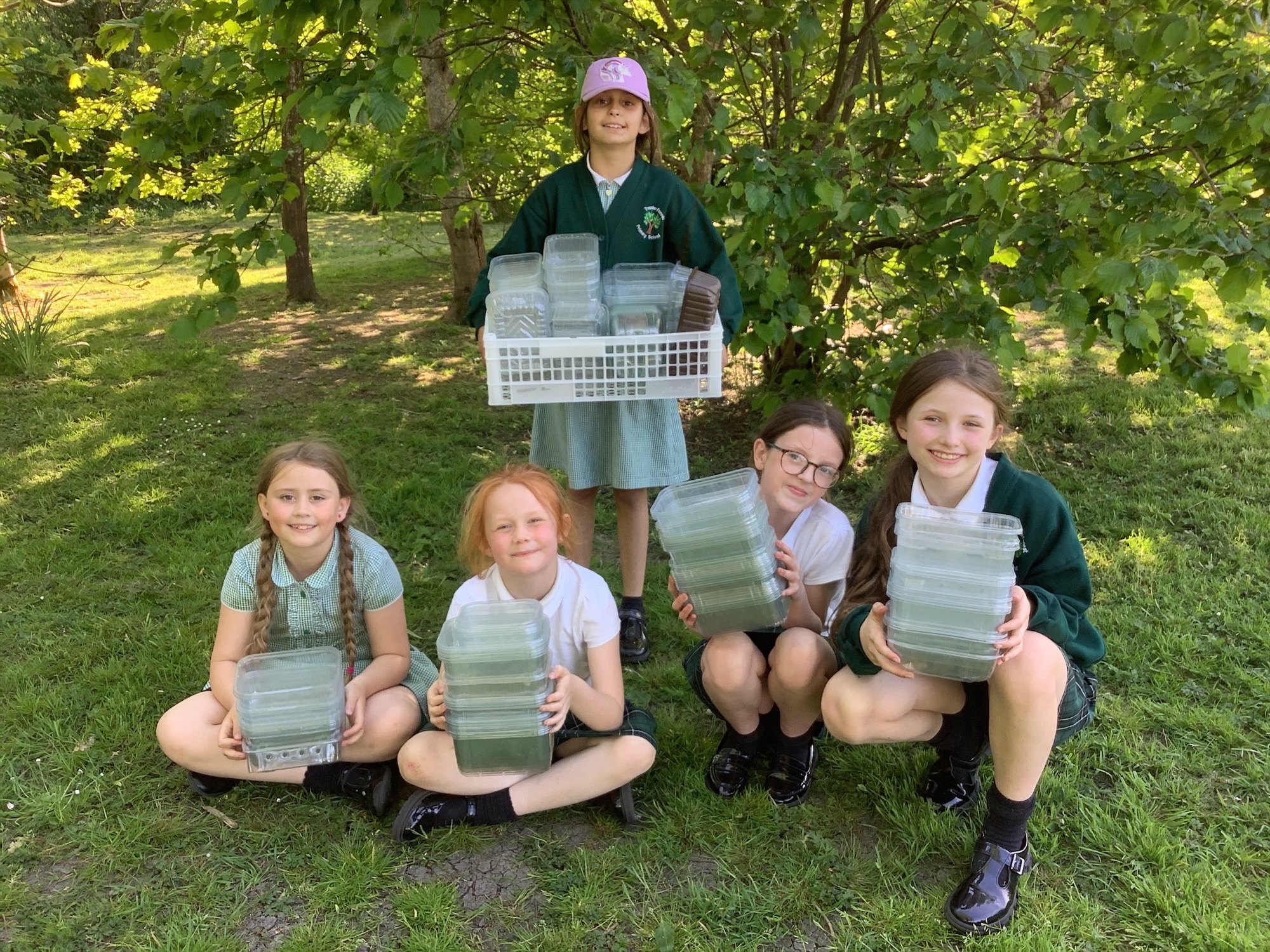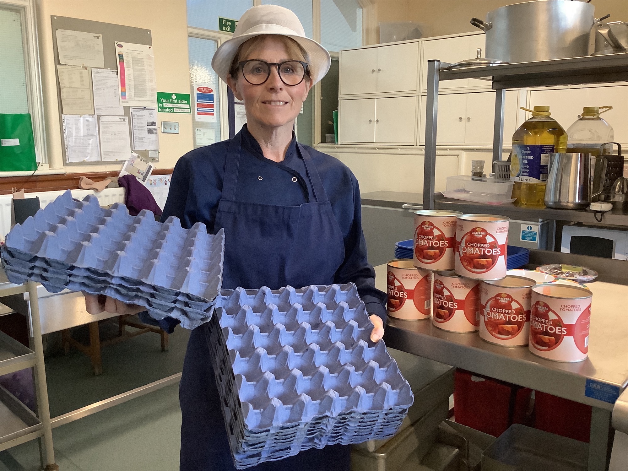Staff are collecting fruit punnets, which we'll reuse to package and sell our school-grown produce.