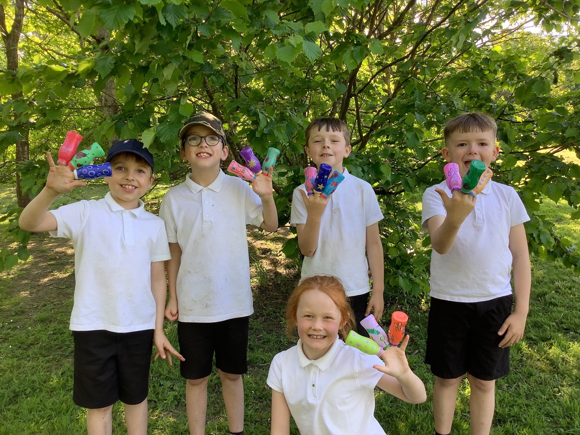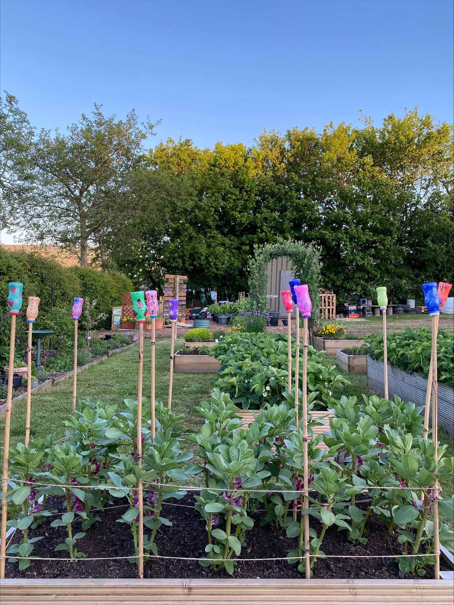 A special thank you to Oliver in Year 1, who collects empty yogurt drink bottles from his Grandma. We've turned them into colourful protectors for the ends of our garden canes - keeping our garden both safe and colourful.