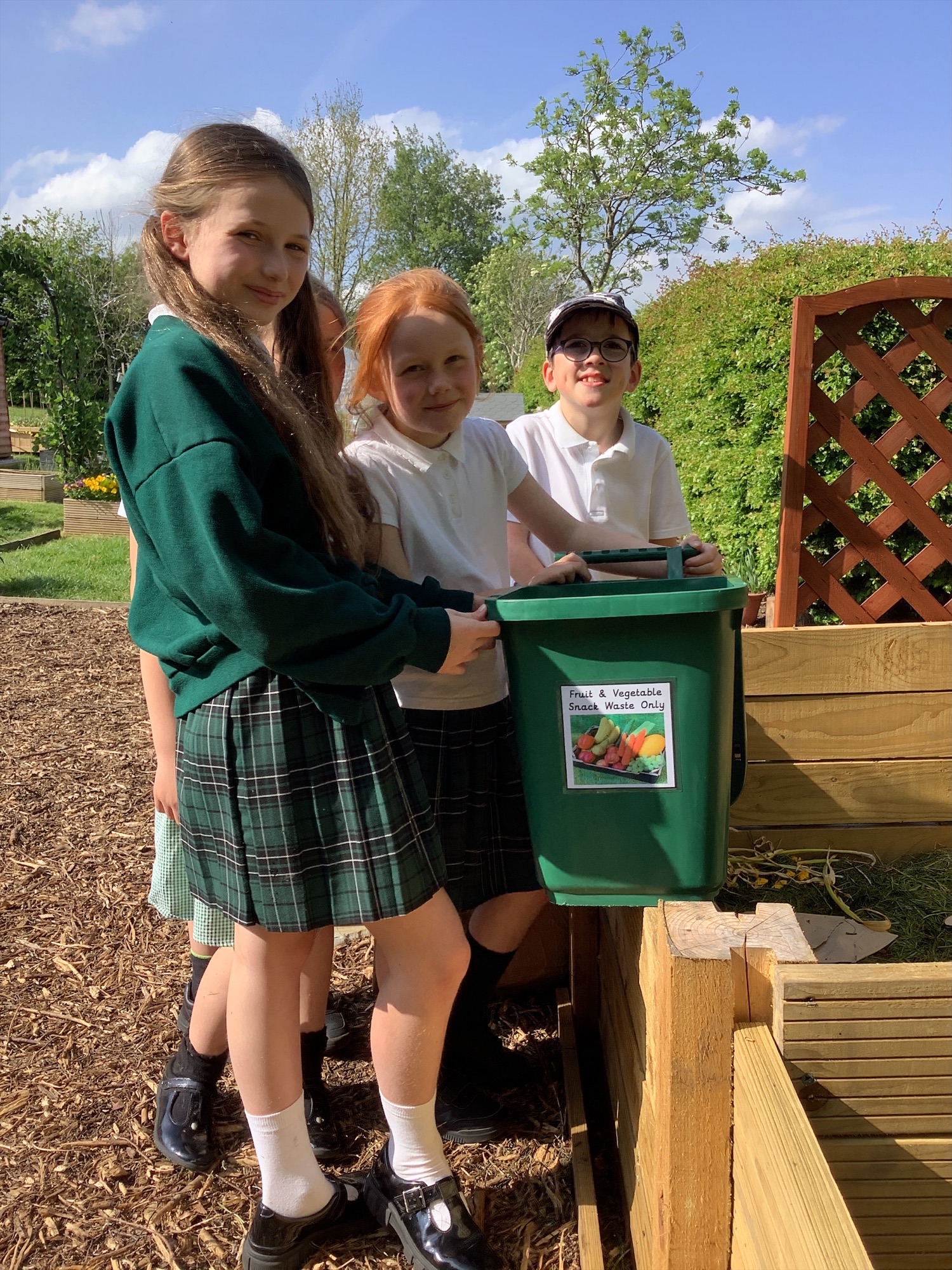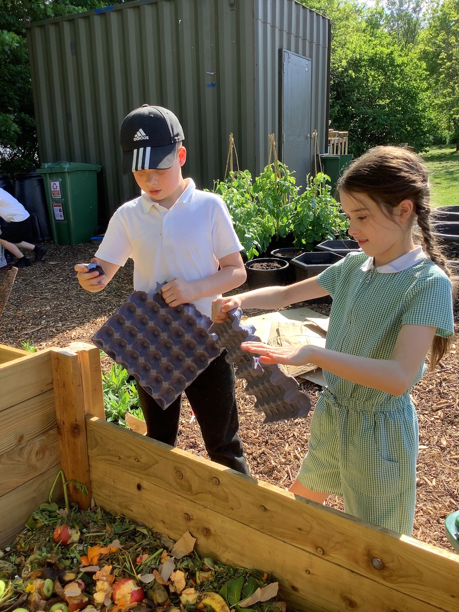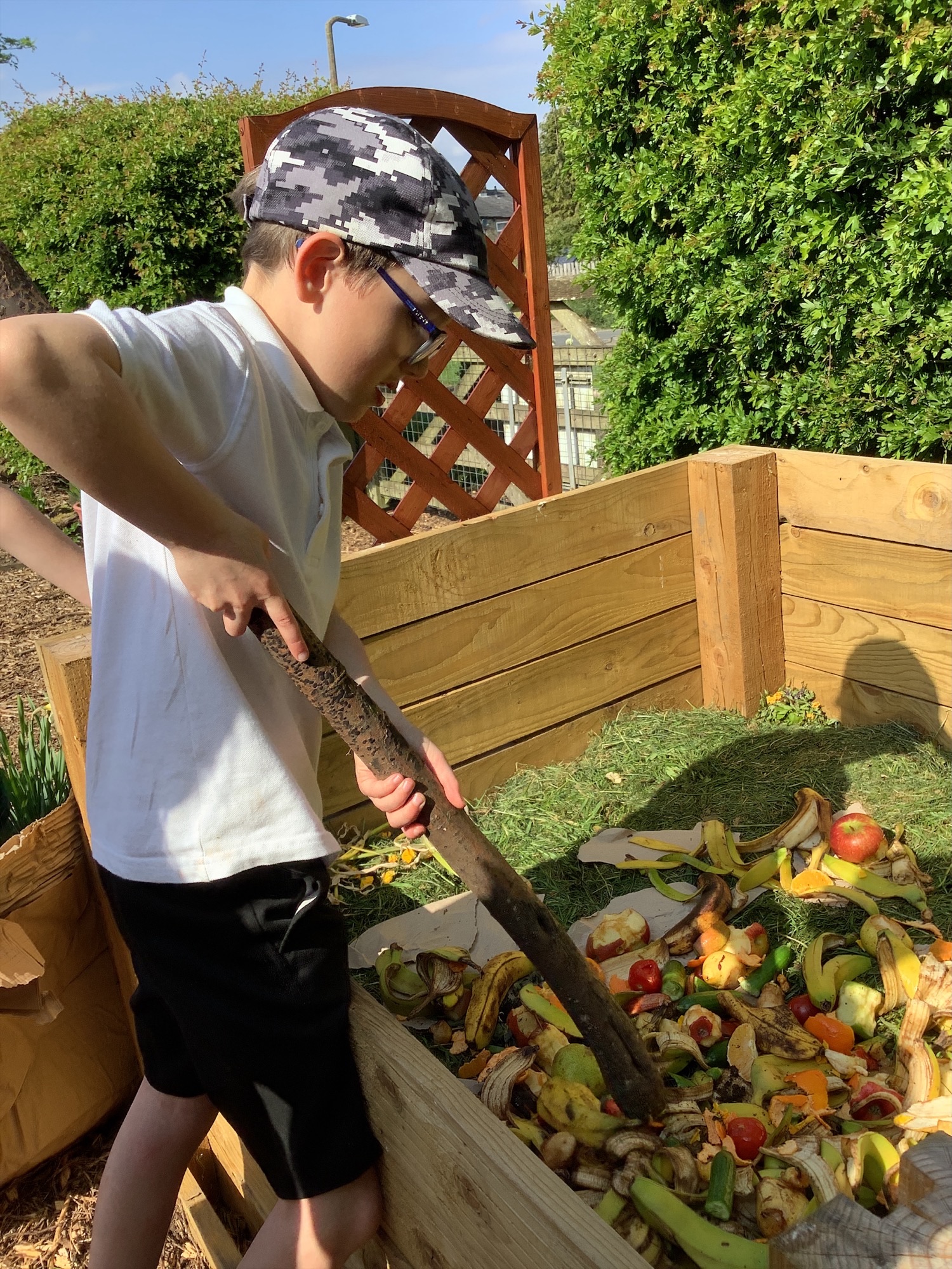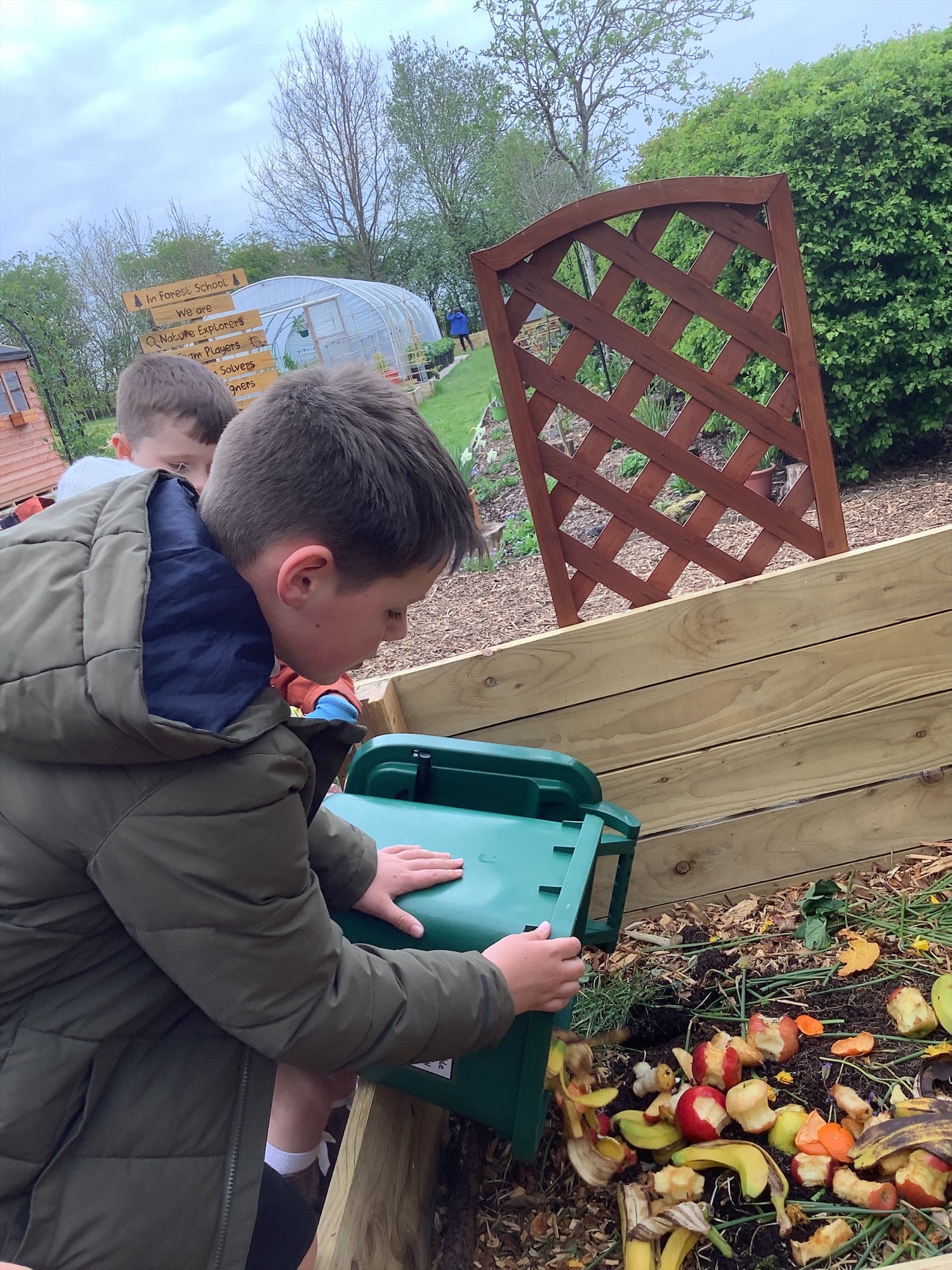 Fruit and vegetable waste from breaktimes is collected across the school and added to our compost bays, helping to create nutrient rich compost for our garden.
