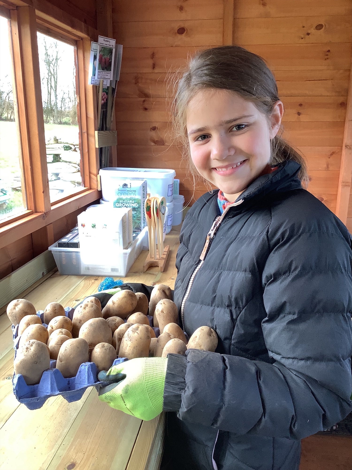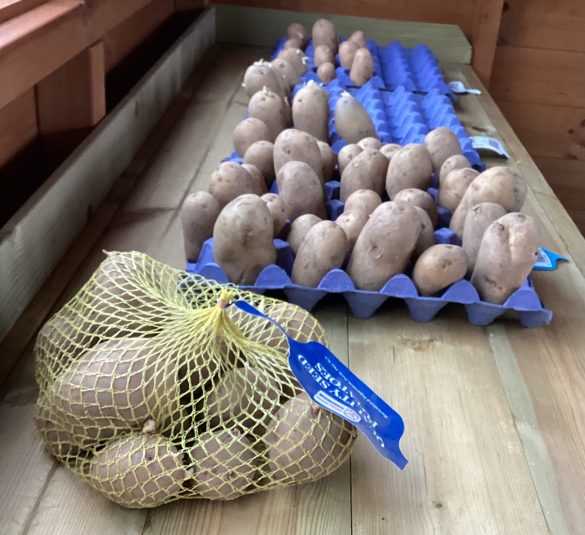 Egg boxes from the kitchen are used for chitting potatoes, bedding for our worm farm and adding carbon to our composting bays.