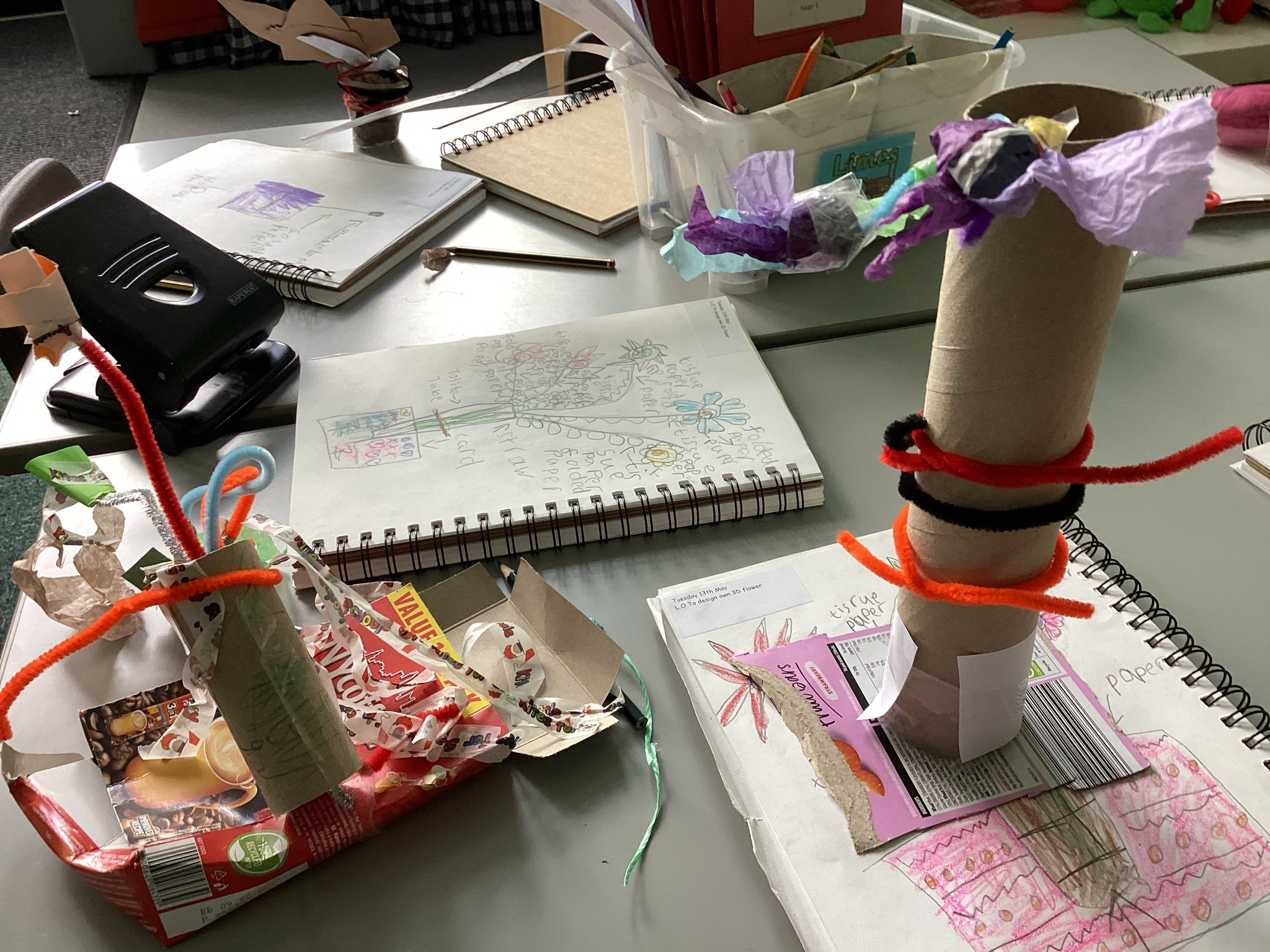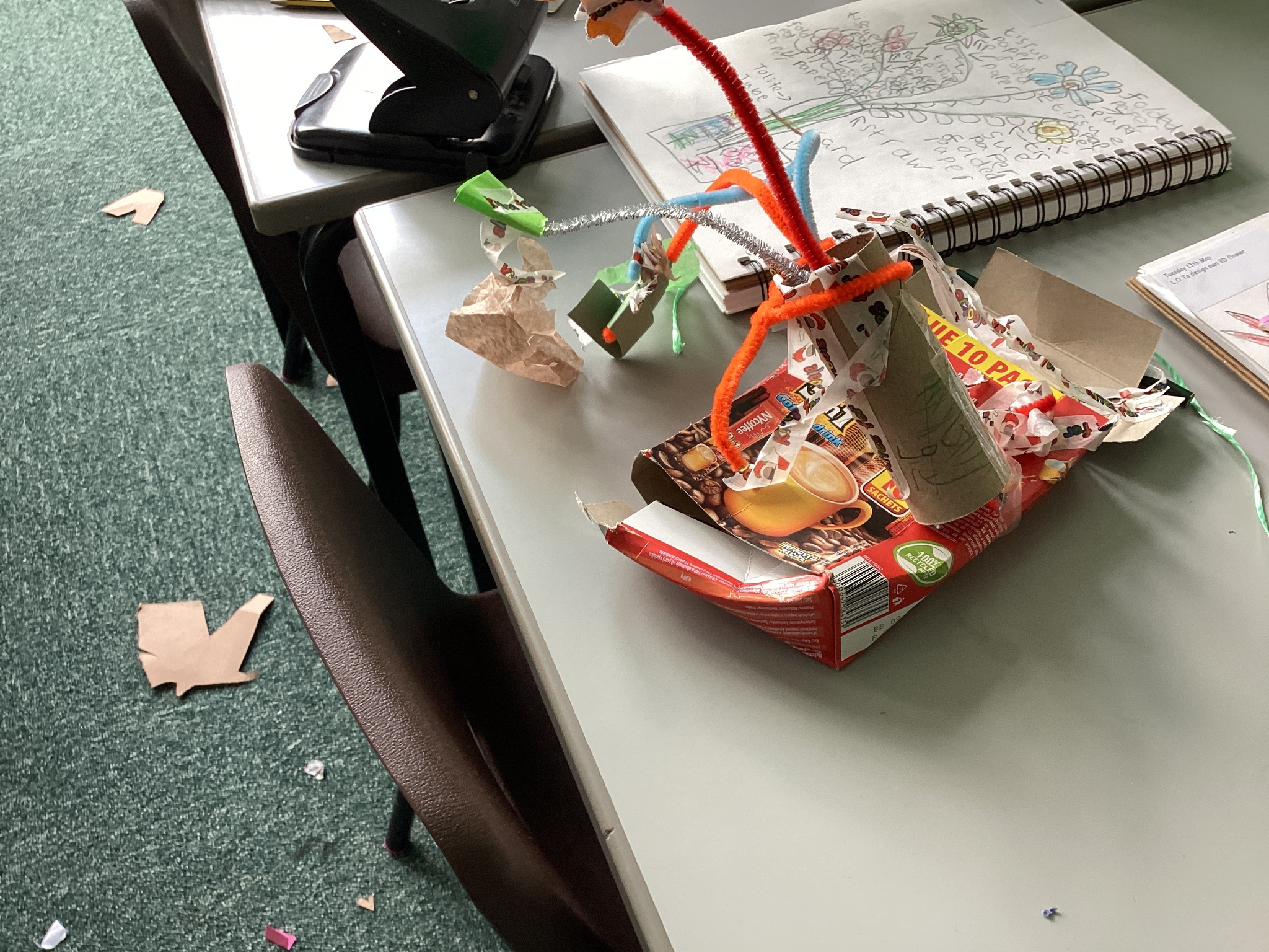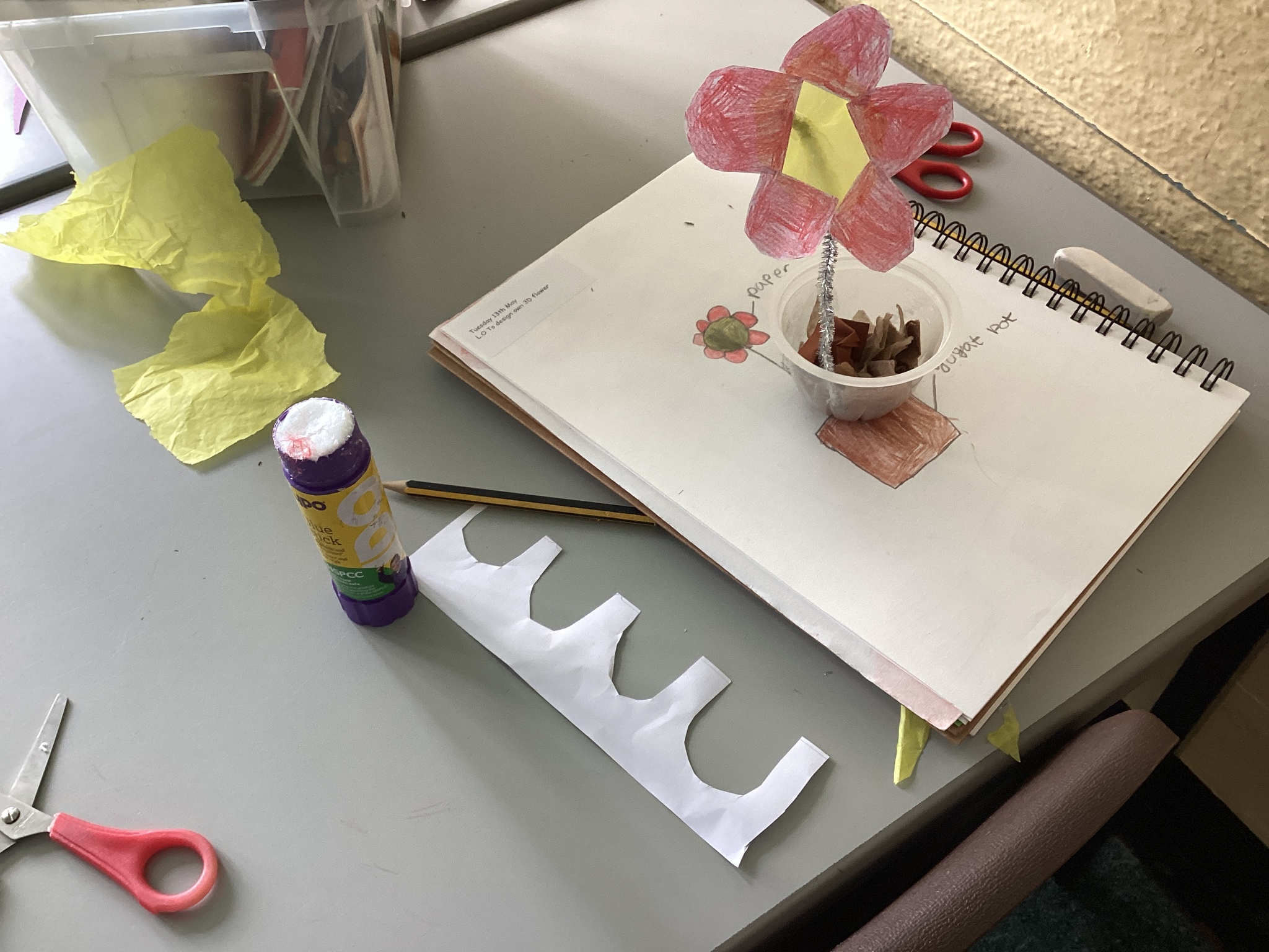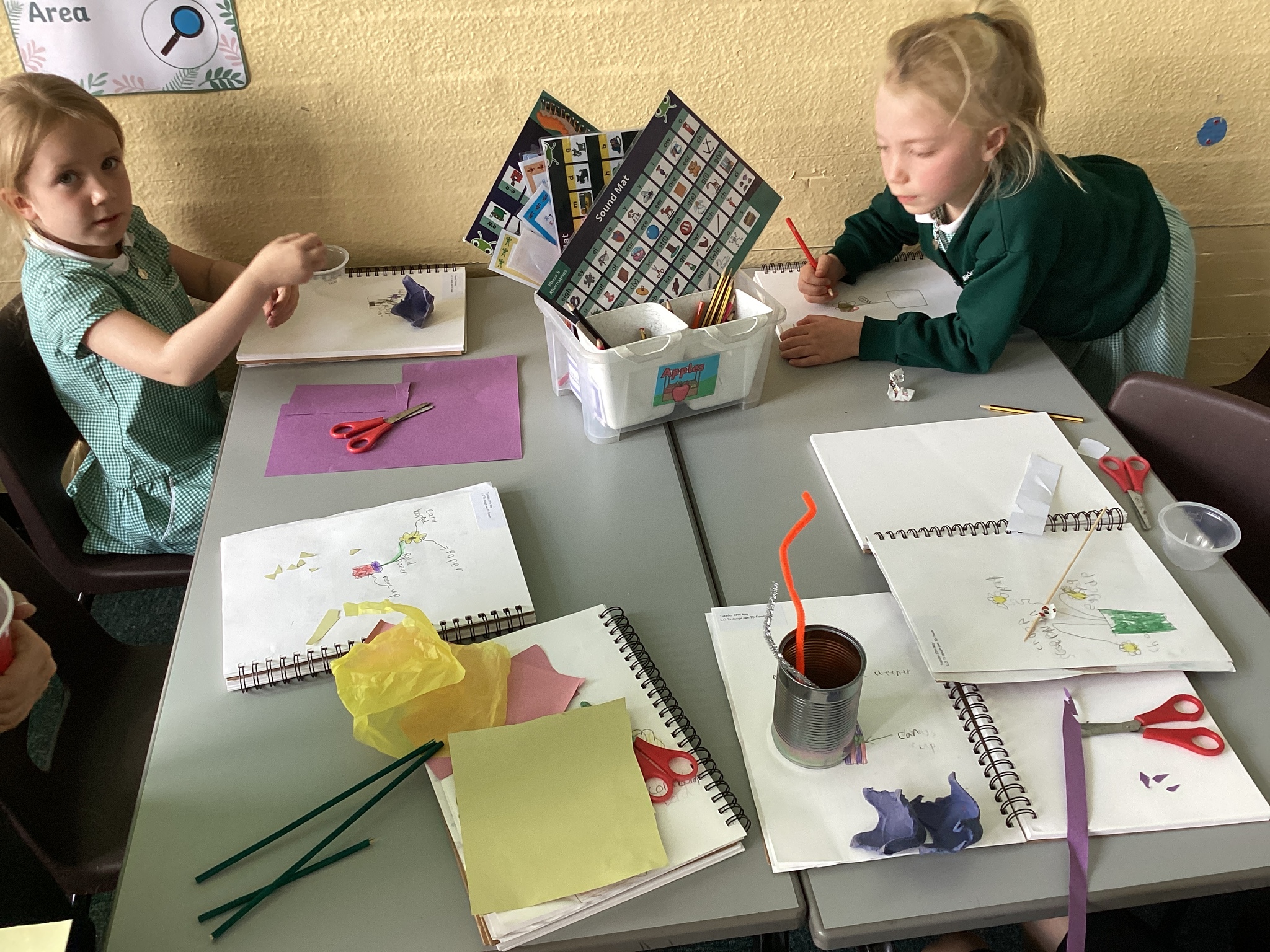 They designed their artwork and planned what they would need to make it. Today they used their skills in joining materials to bring their designs to life.