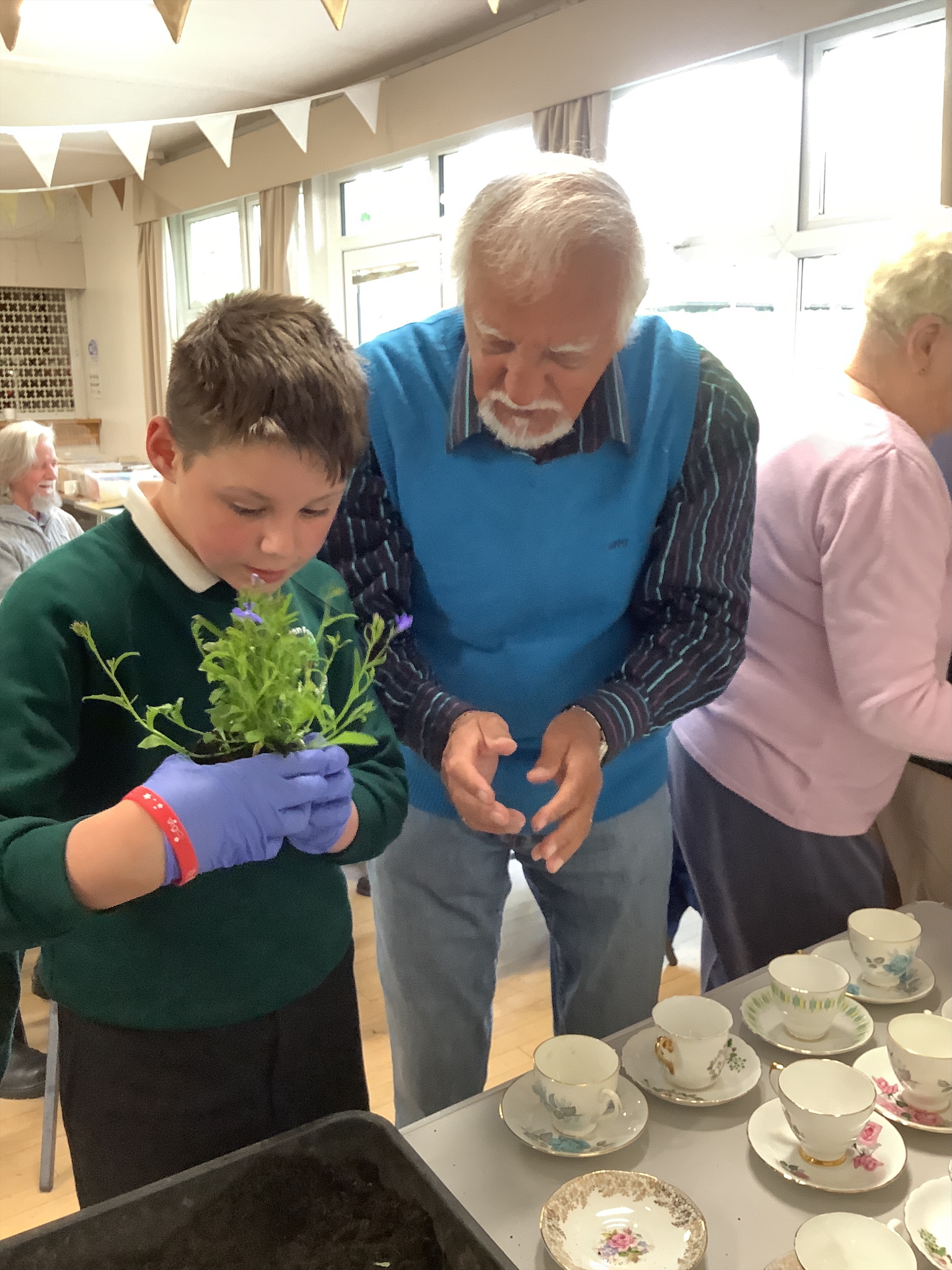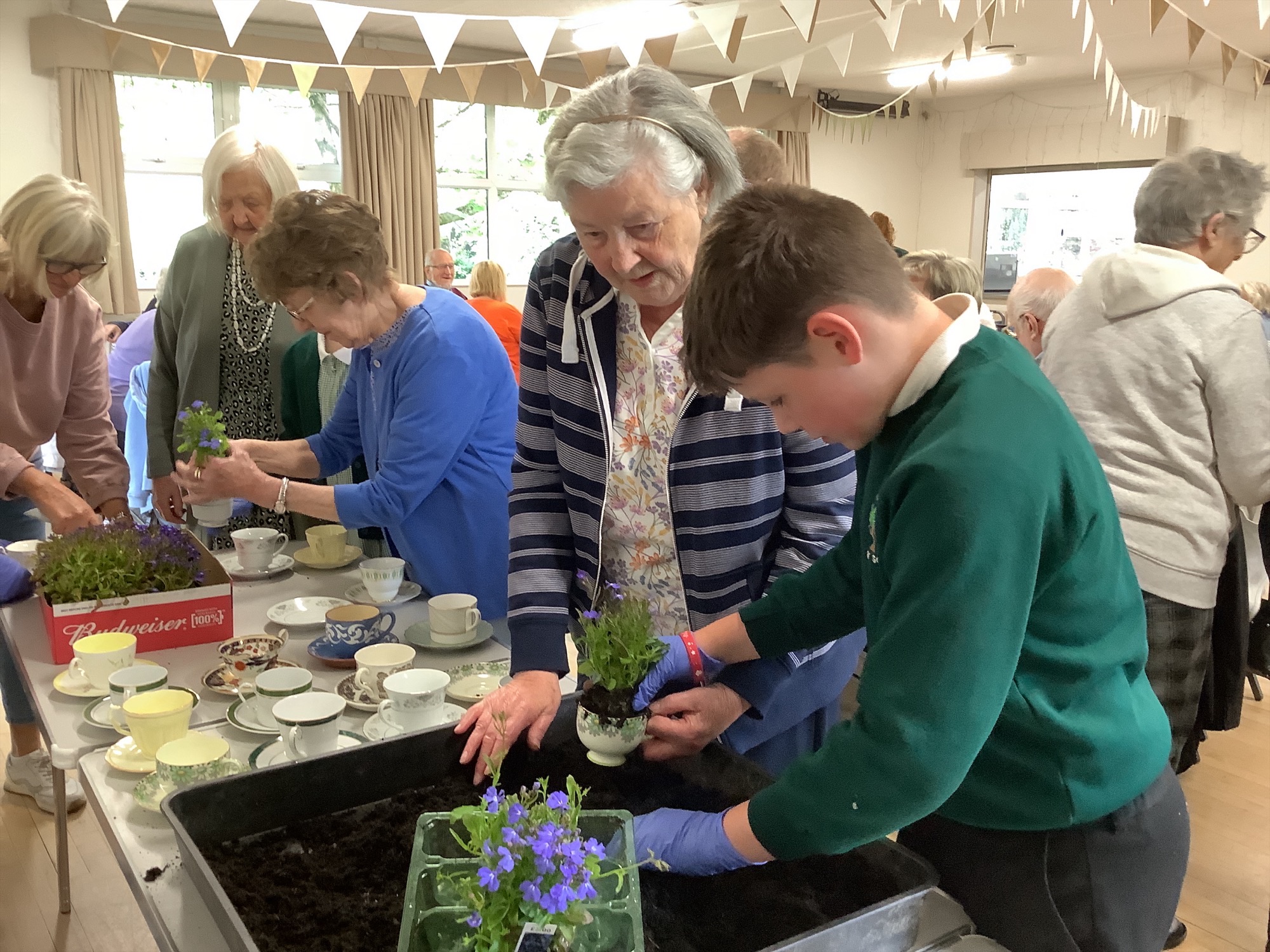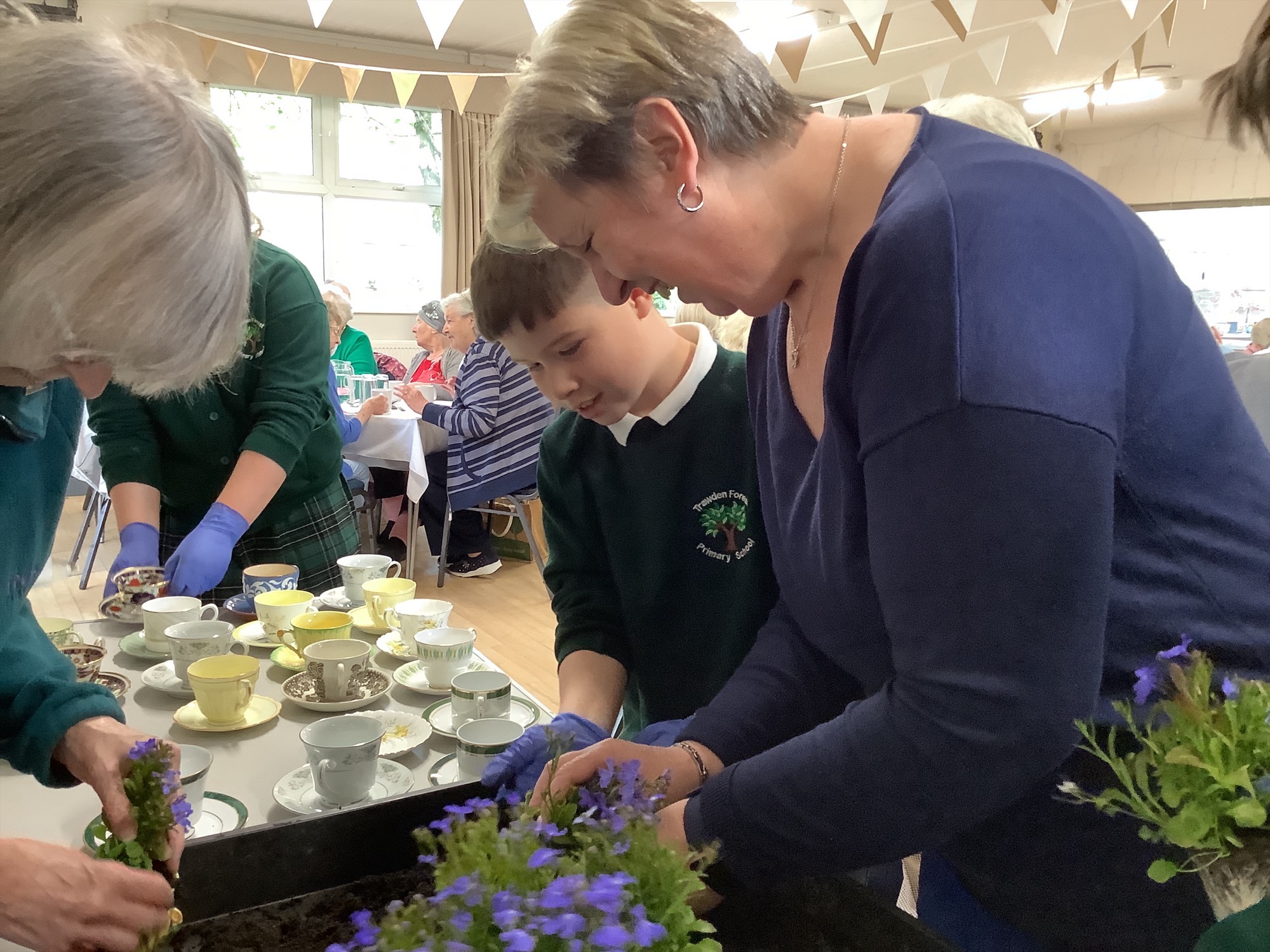 Representatives from our Gardening Club were thrilled to be invited to the community centre by Trawden Garden Festival to help the Friendship Group create beautiful vintage teacup planters.