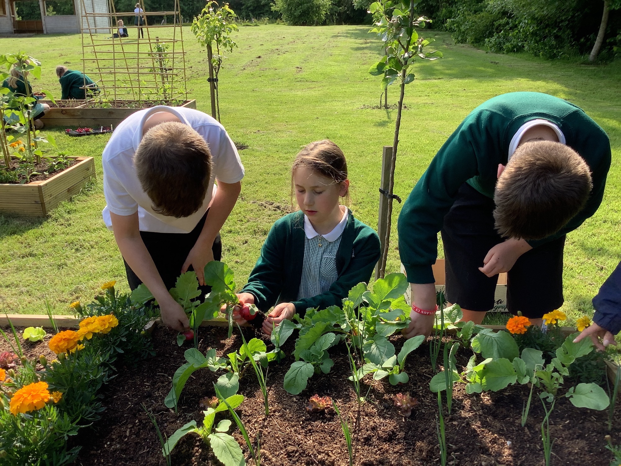 We harvested our first crunchy crop of radishes and sowed another batch, along with more spring onions.