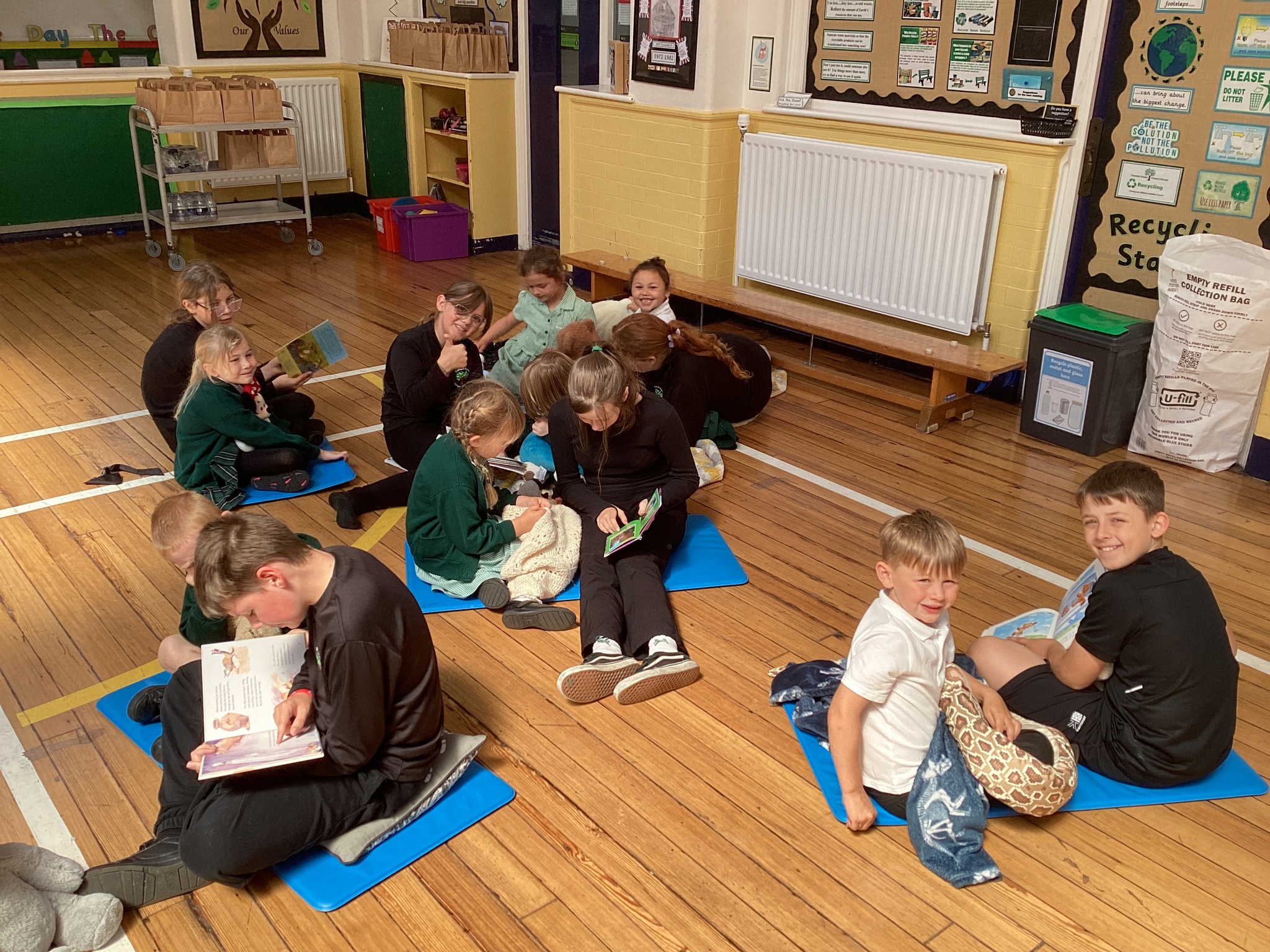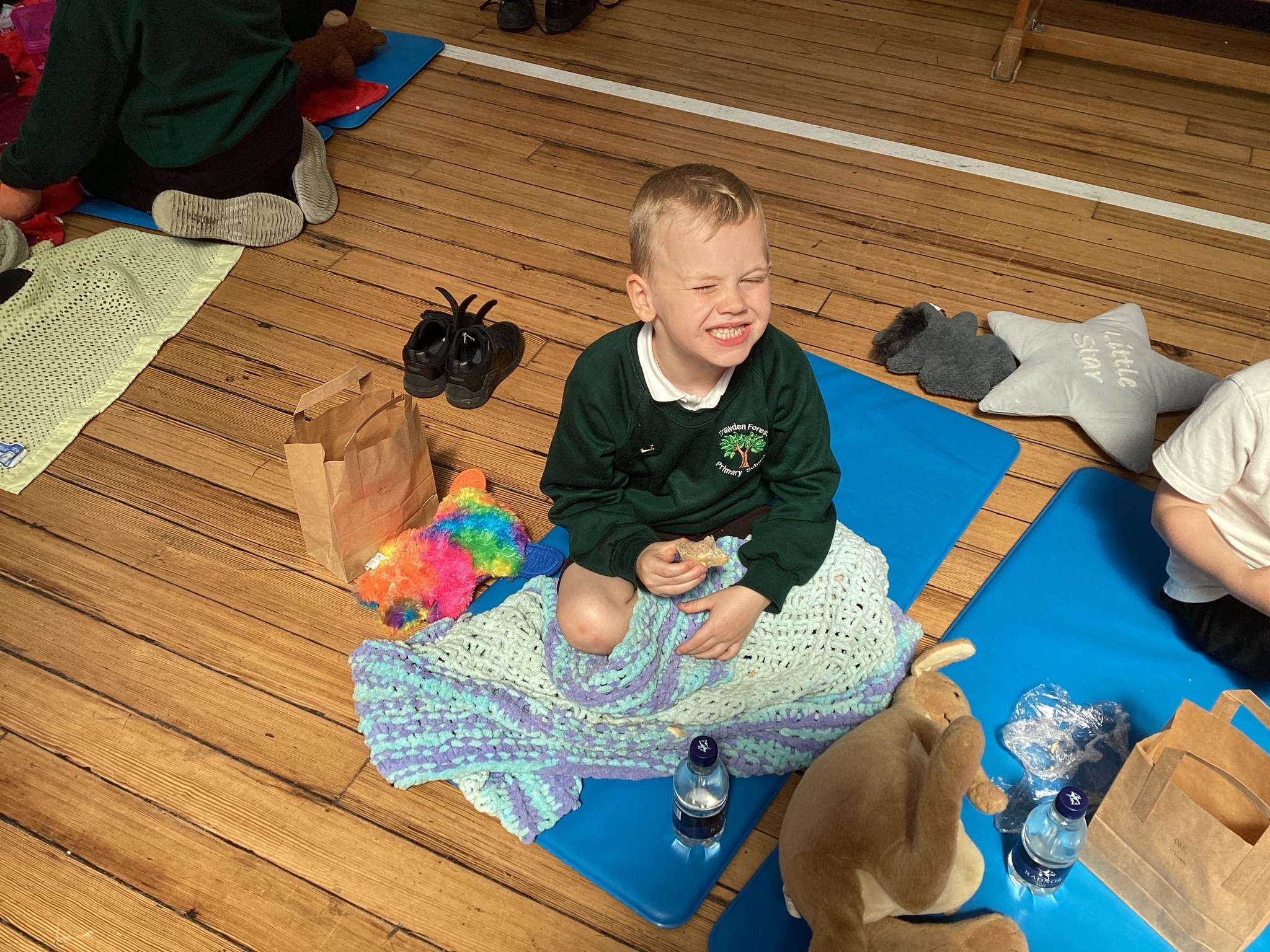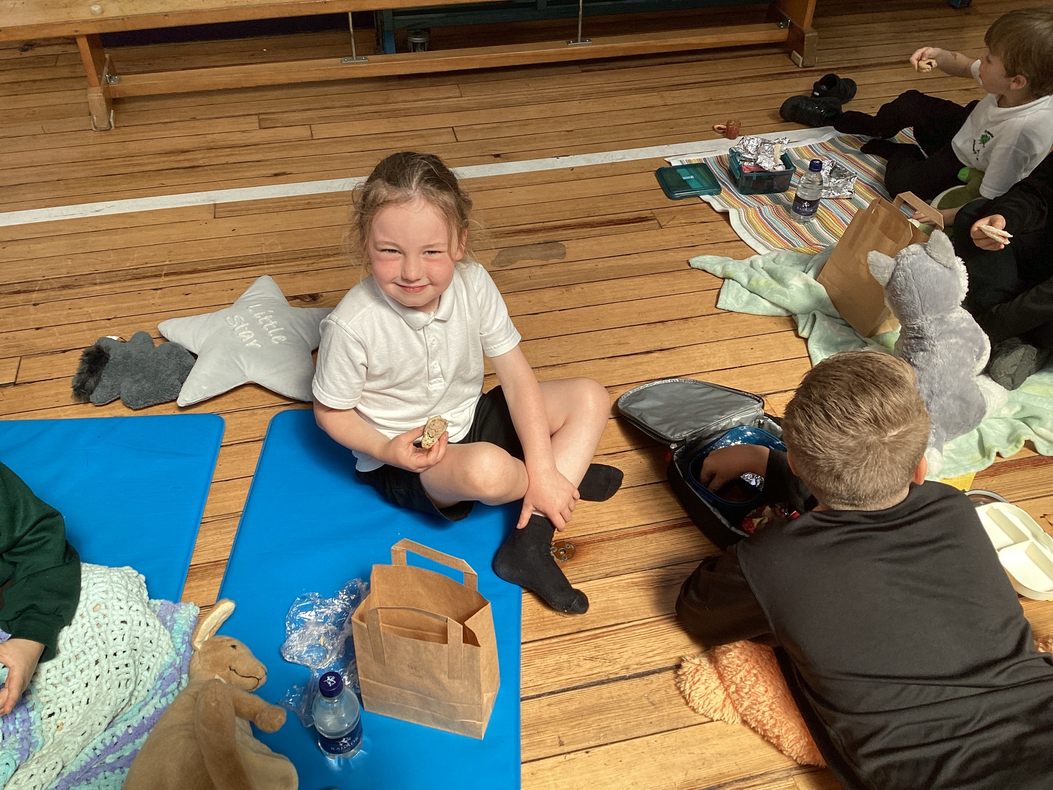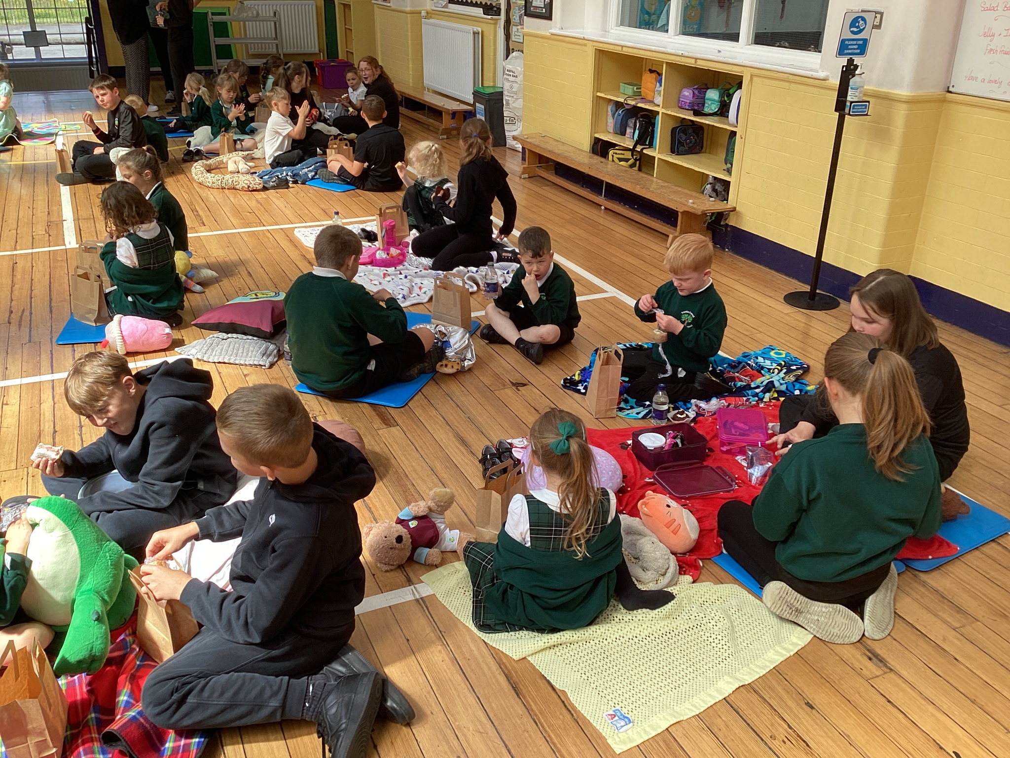The children gathered with their snuggly teddy bears, cushions and blankets, sharing stories and chatting during a cosy reading session before enjoying a tasty picnic lunch together.