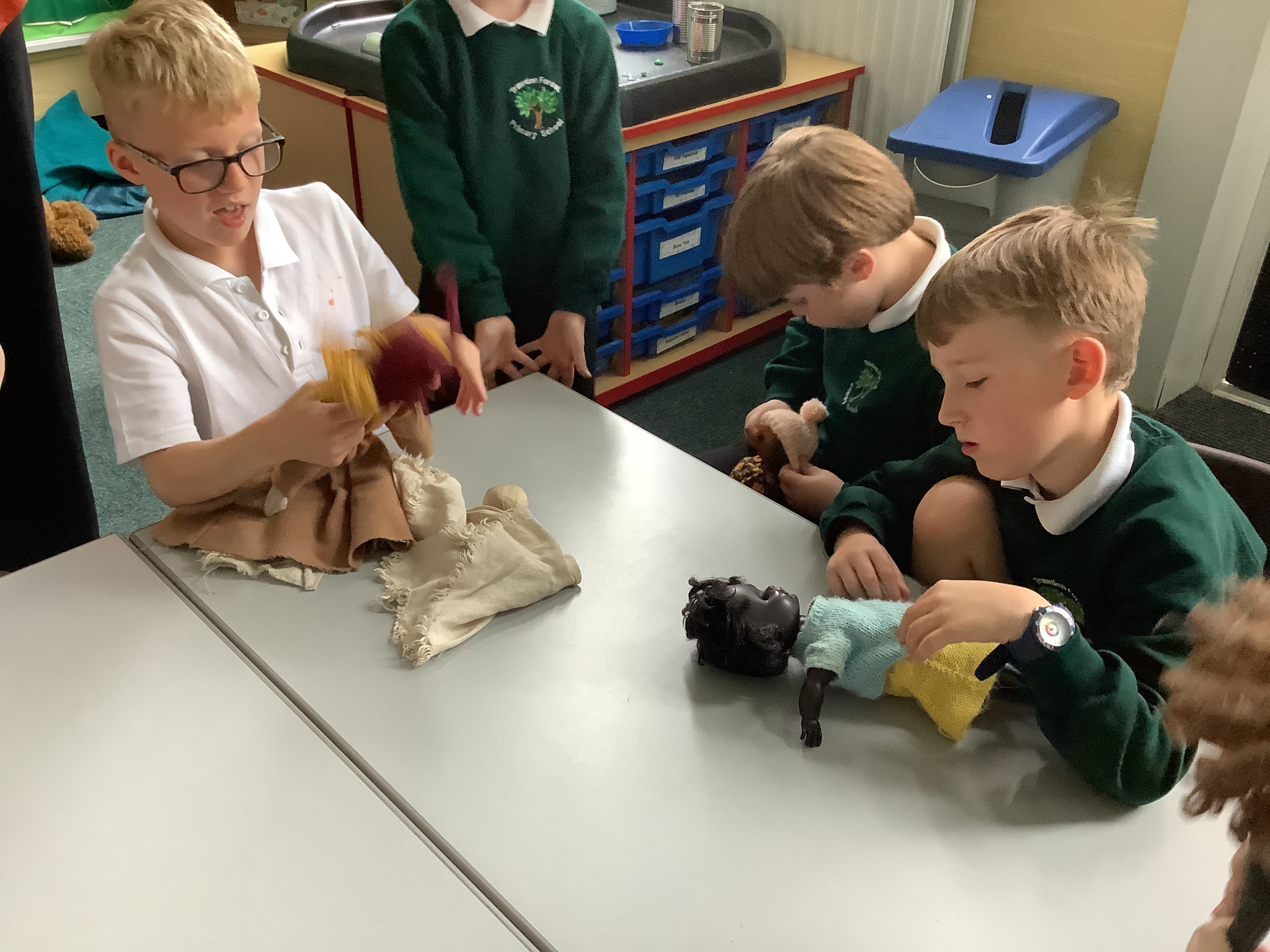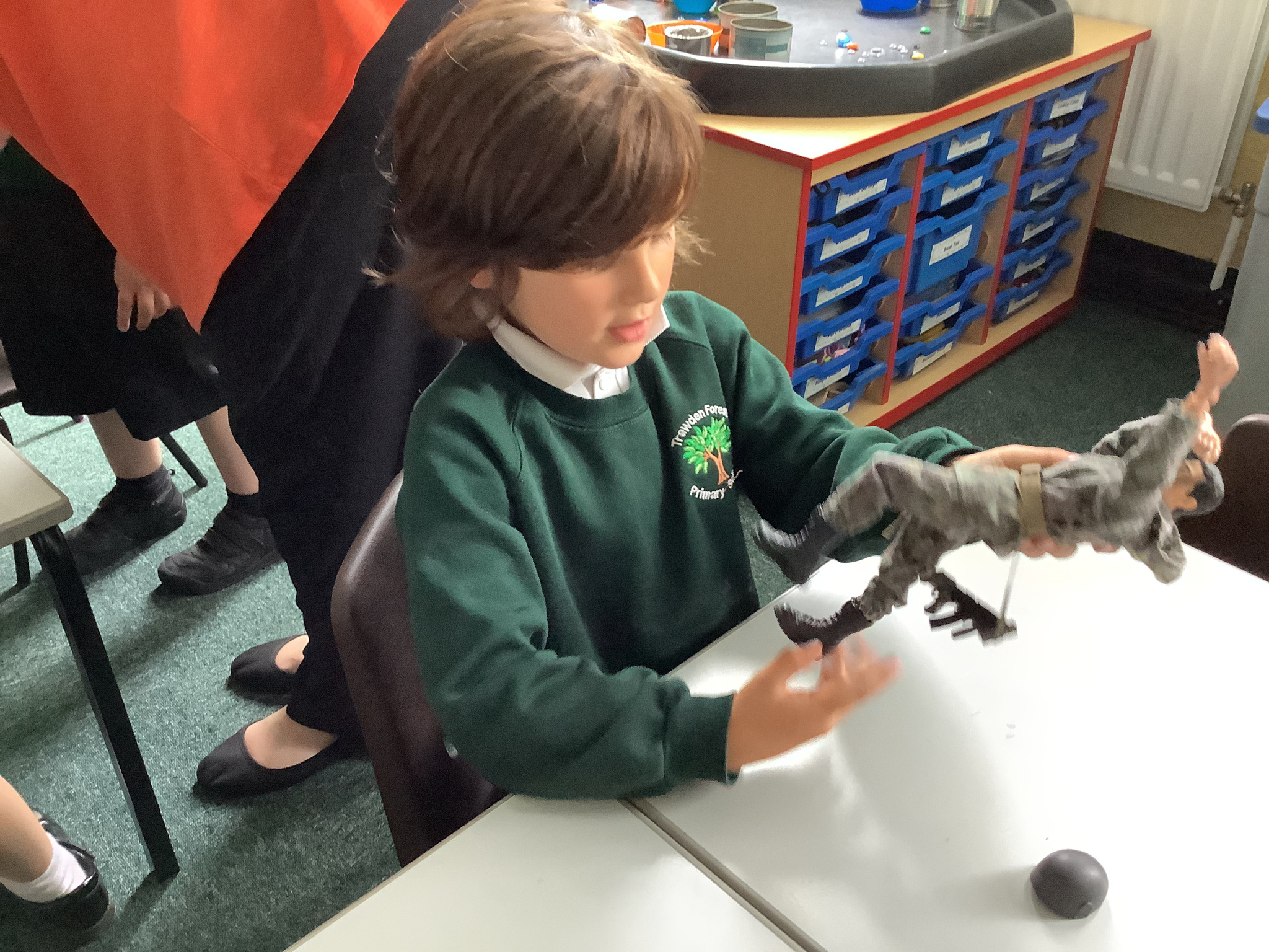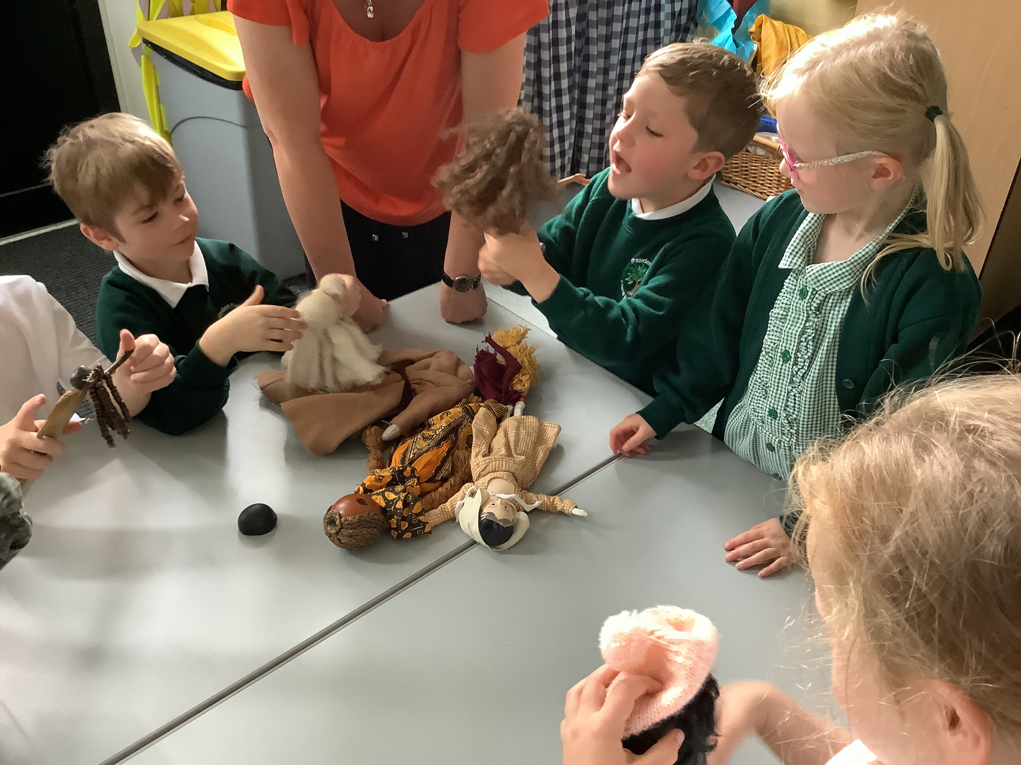 Then the History Man came to school and brough lots of toys for us to look at. We made a timeline from Ancient Egypt to now and order the toys by looking at the materials they were made from and how decorated they were. We were amazed to see dolls and animal toys from 5000 years ago!