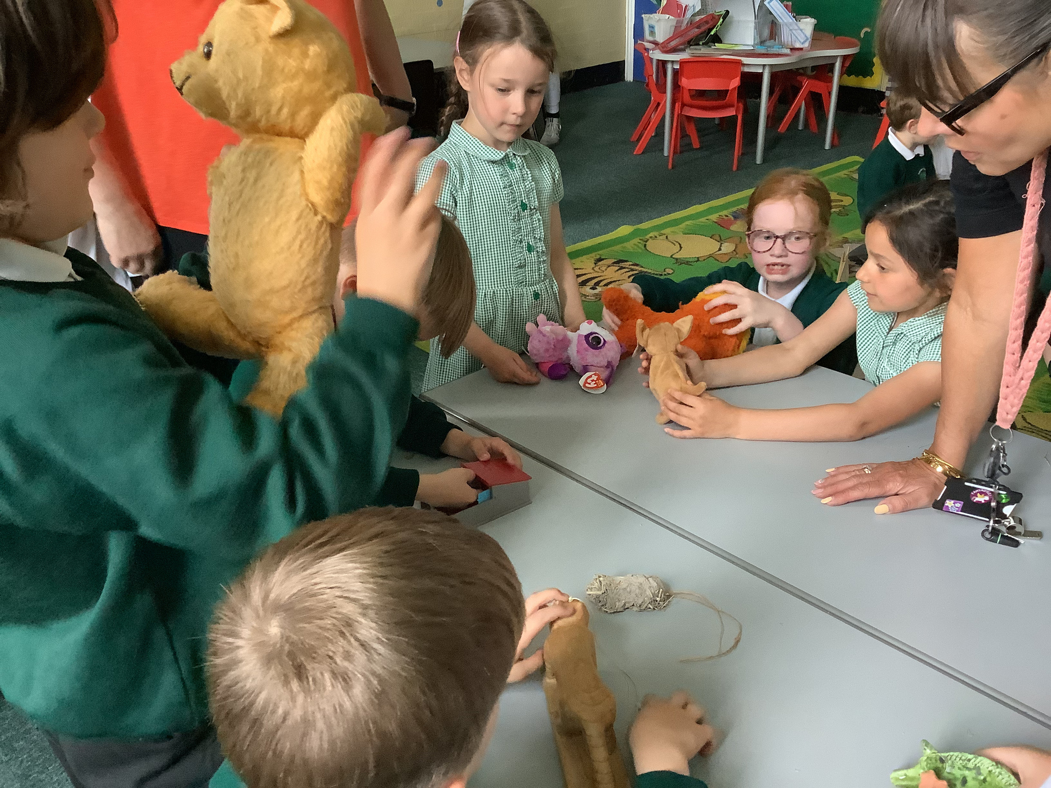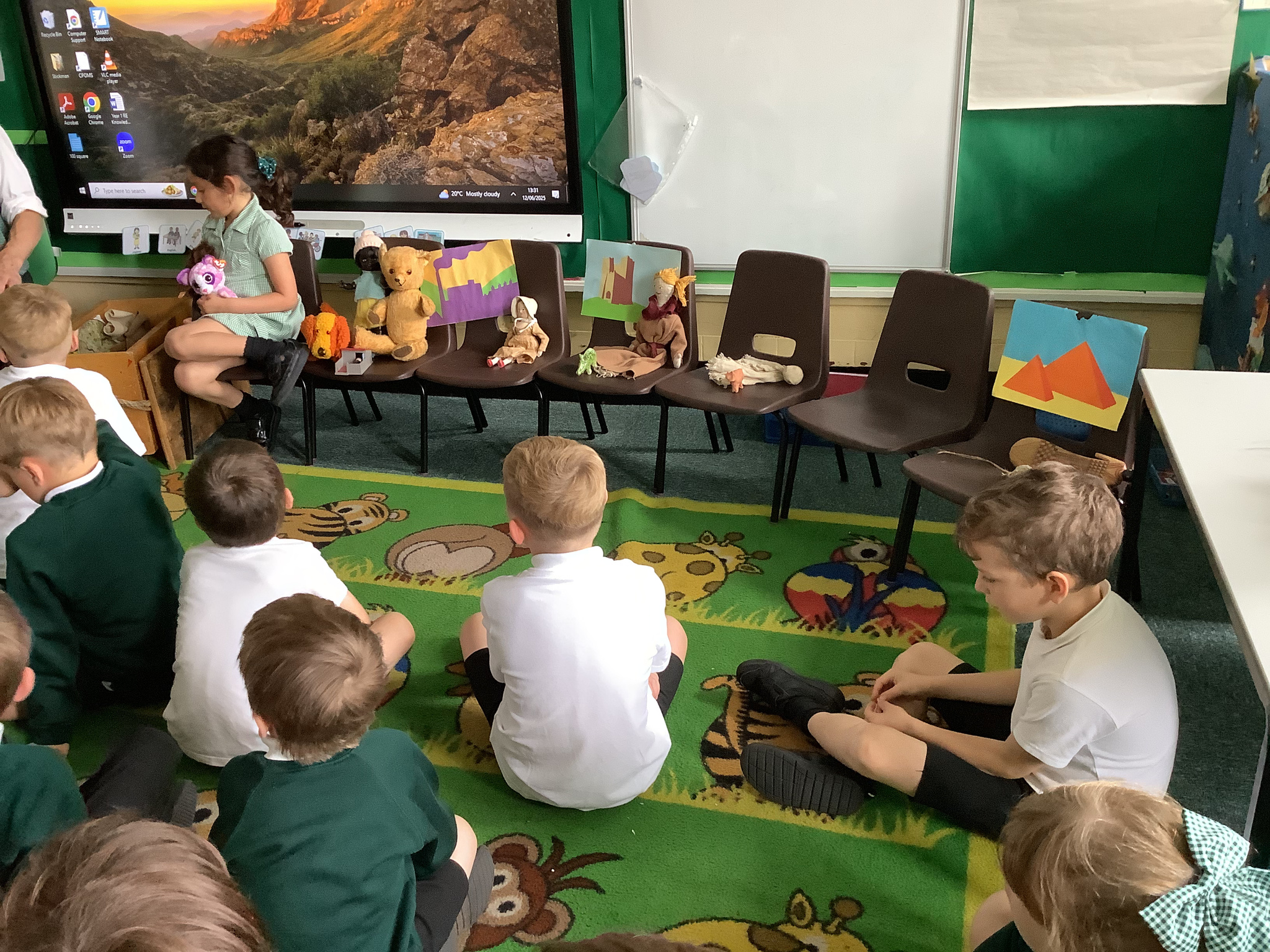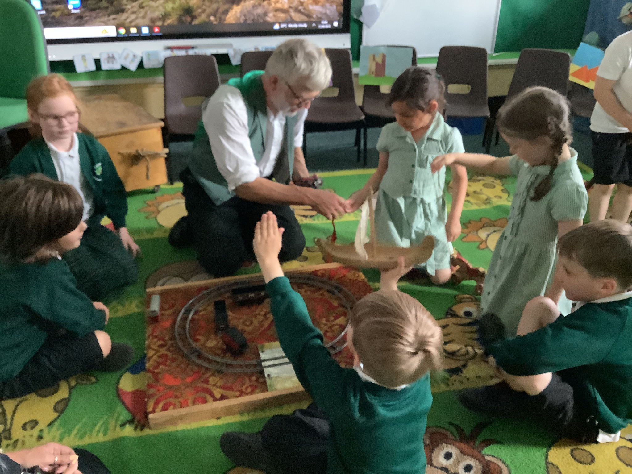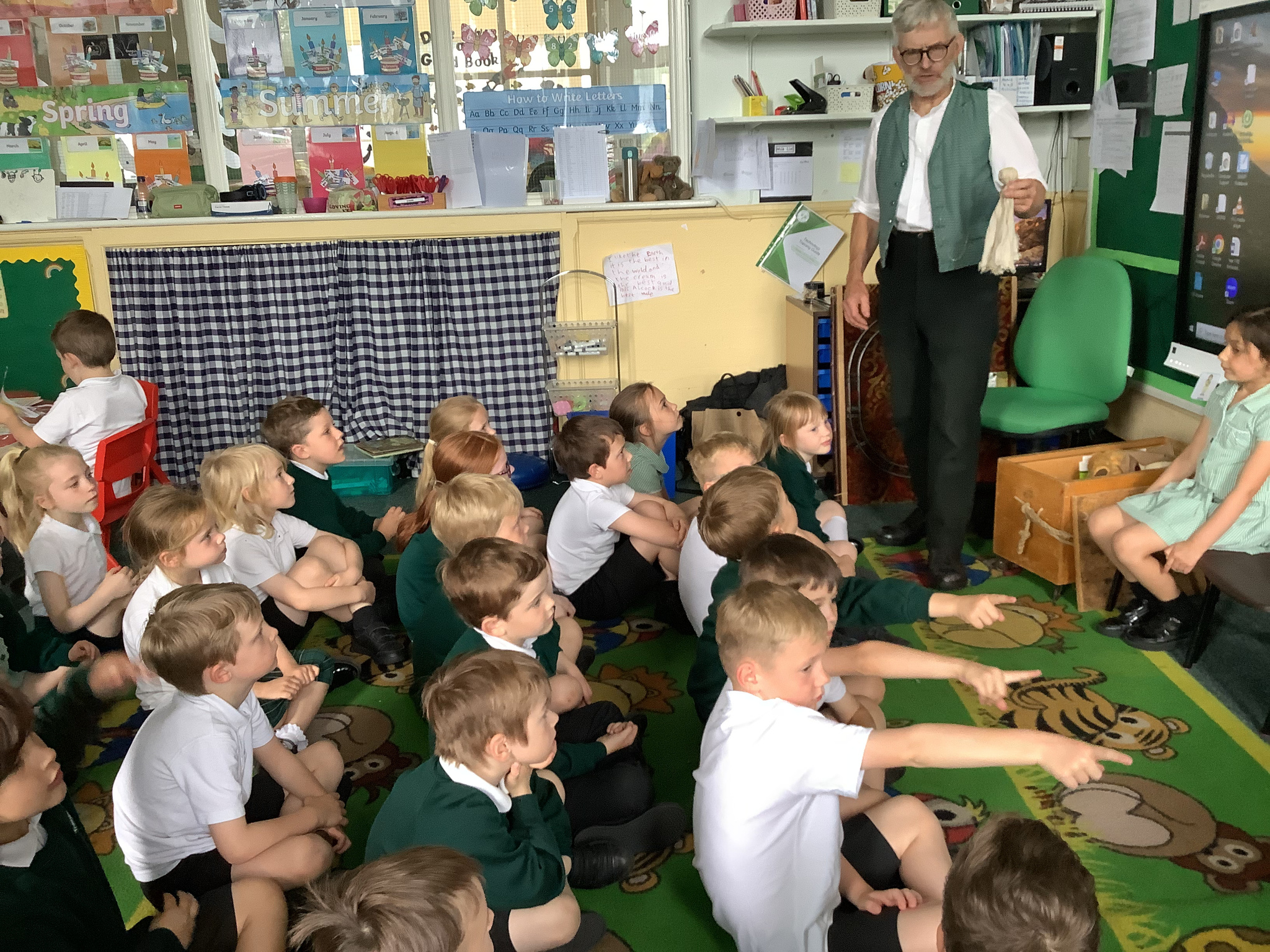 Then the History Man came to school and brough lots of toys for us to look at. We made a timeline from Ancient Egypt to now and order the toys by looking at the materials they were made from and how decorated they were. We were amazed to see dolls and animal toys from 5000 years ago!