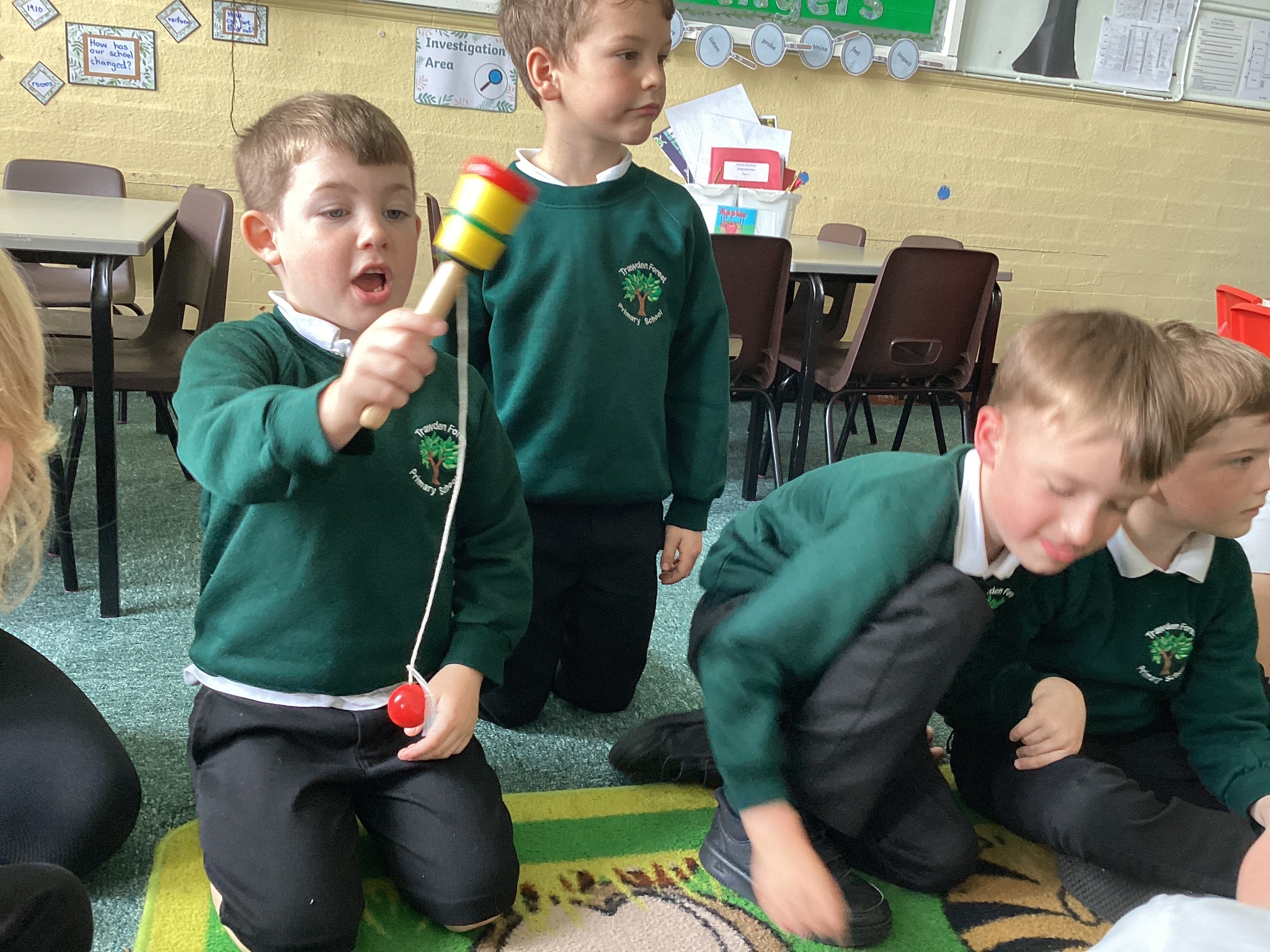 Year 1 are learning about toys for their History topic this half term. We looked at some toys from the past and explored how children played with them. The children enjoyed trying to catch the ball in the cup and were very impressed with the zoetrope.