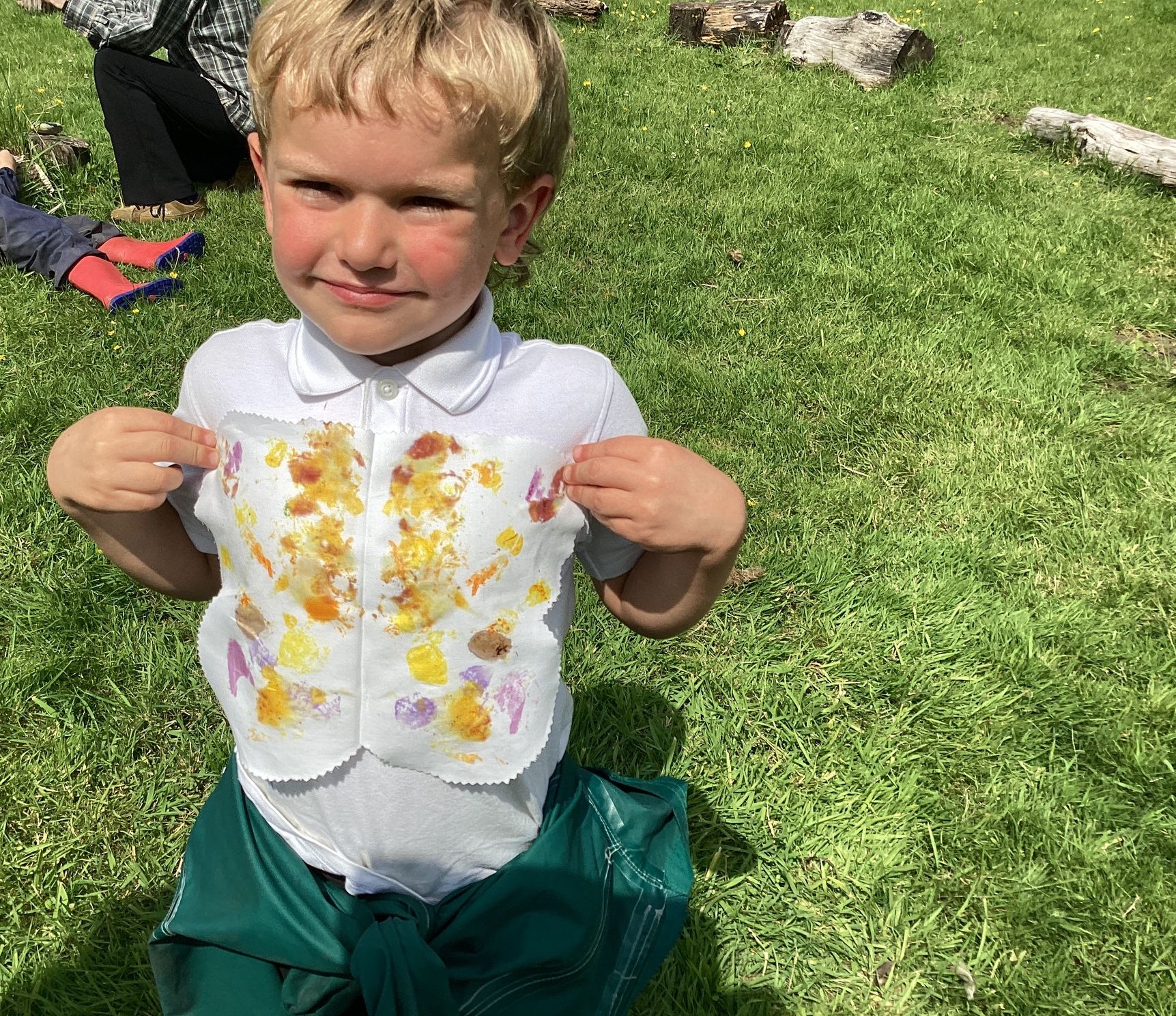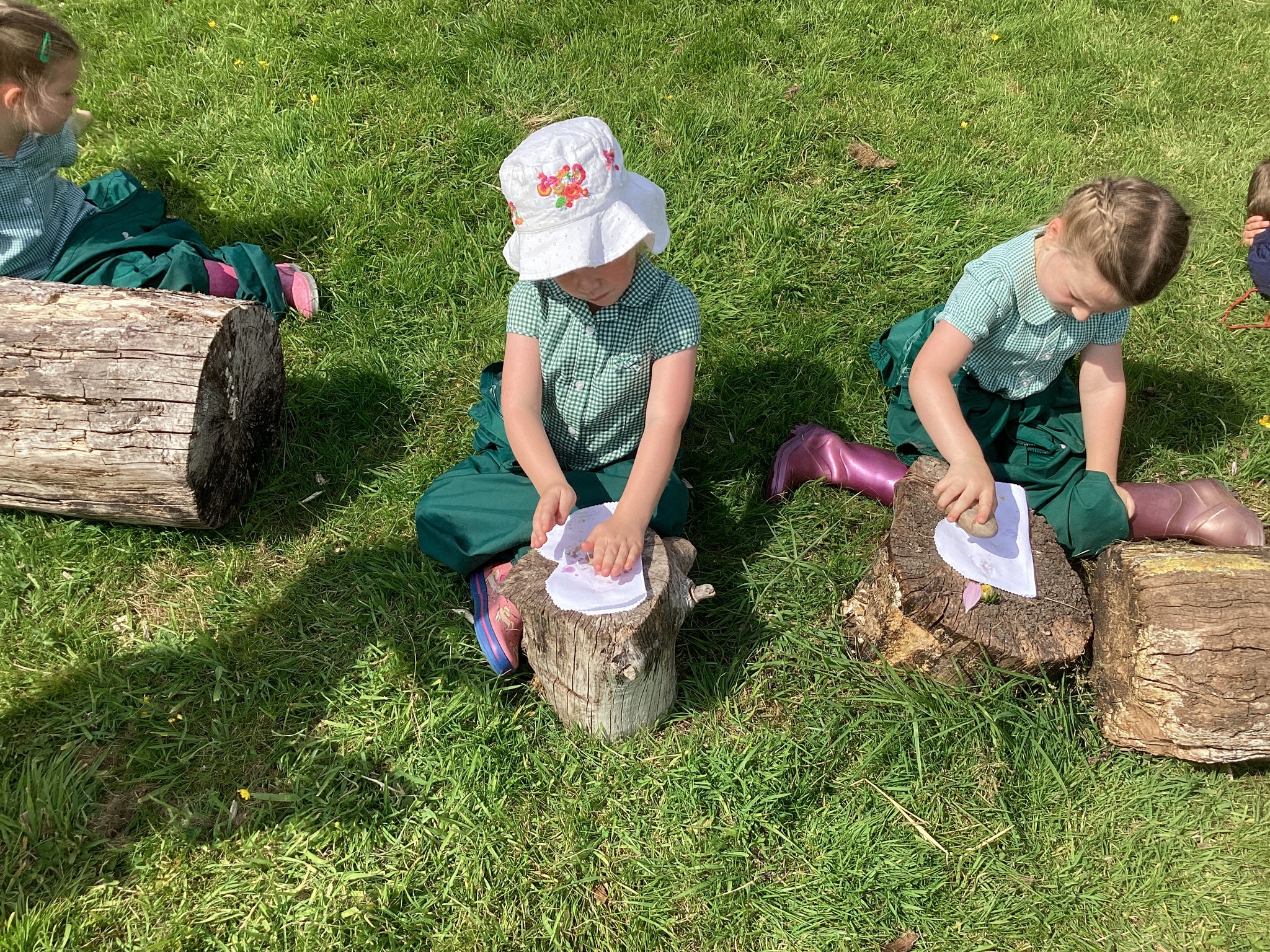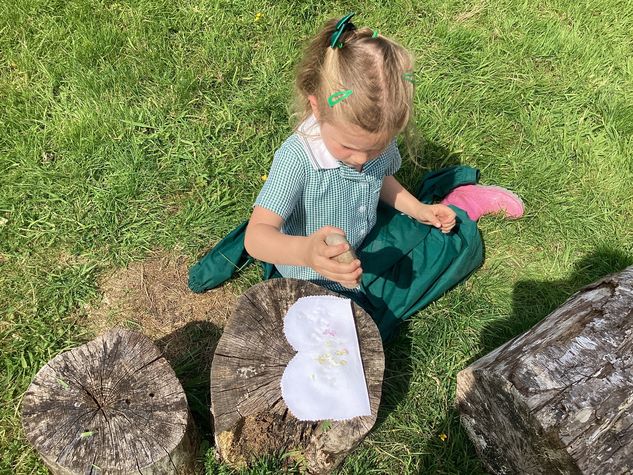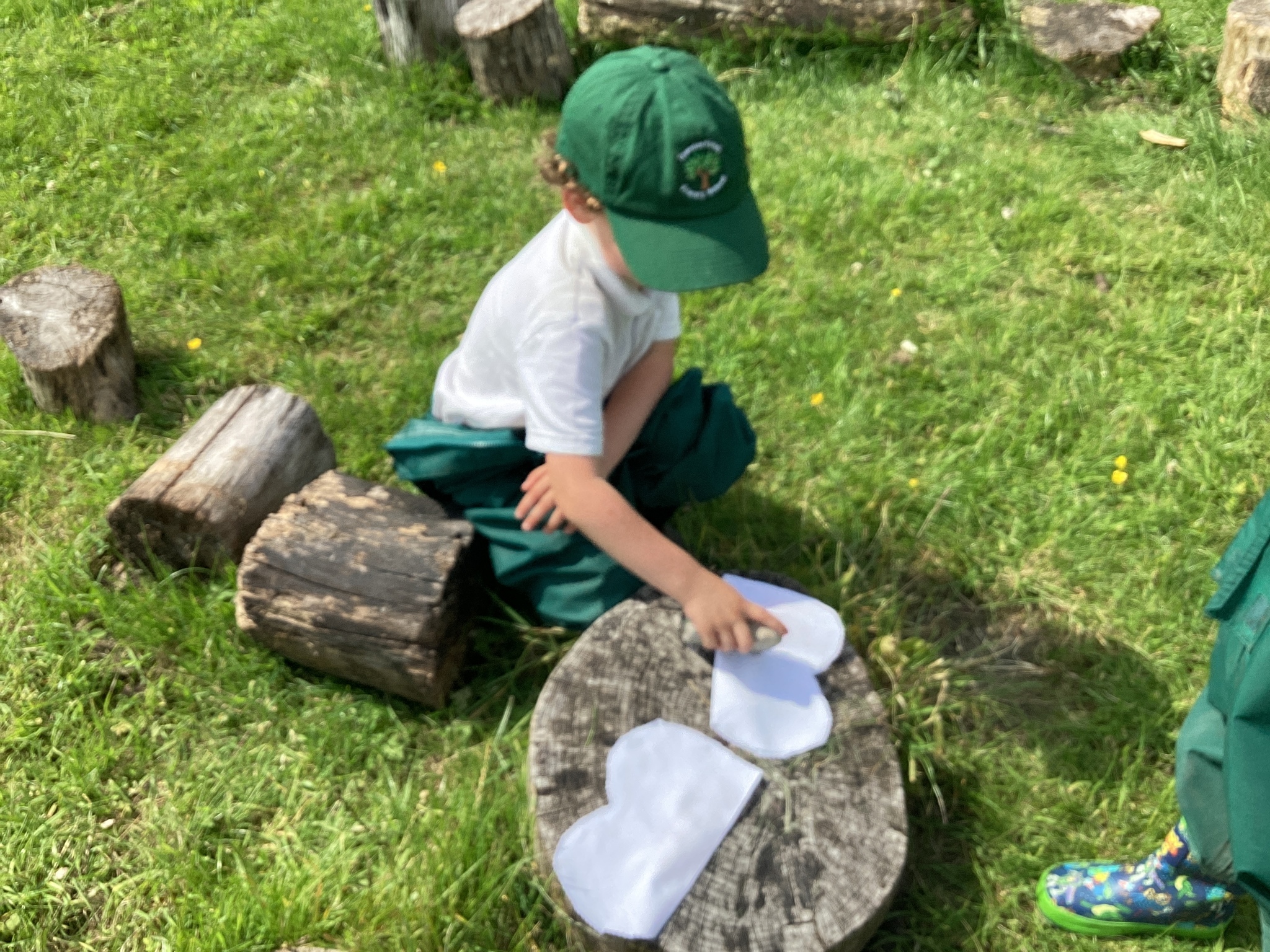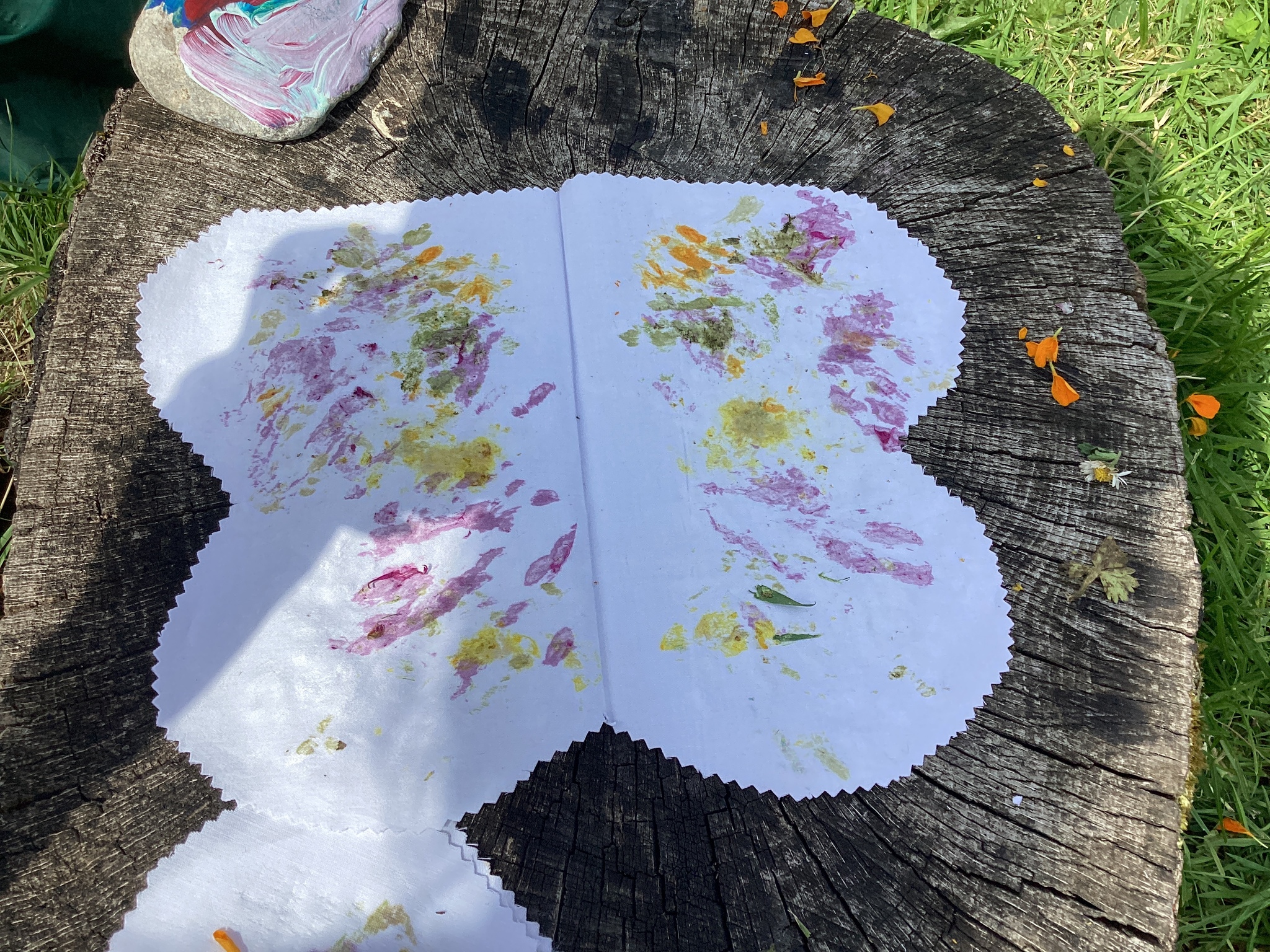 Each child carefully arranged they found onto a folded fabric butterfly, then used a rock to press and imprint the colours and textures — a wonderful combination of nature and creativity.