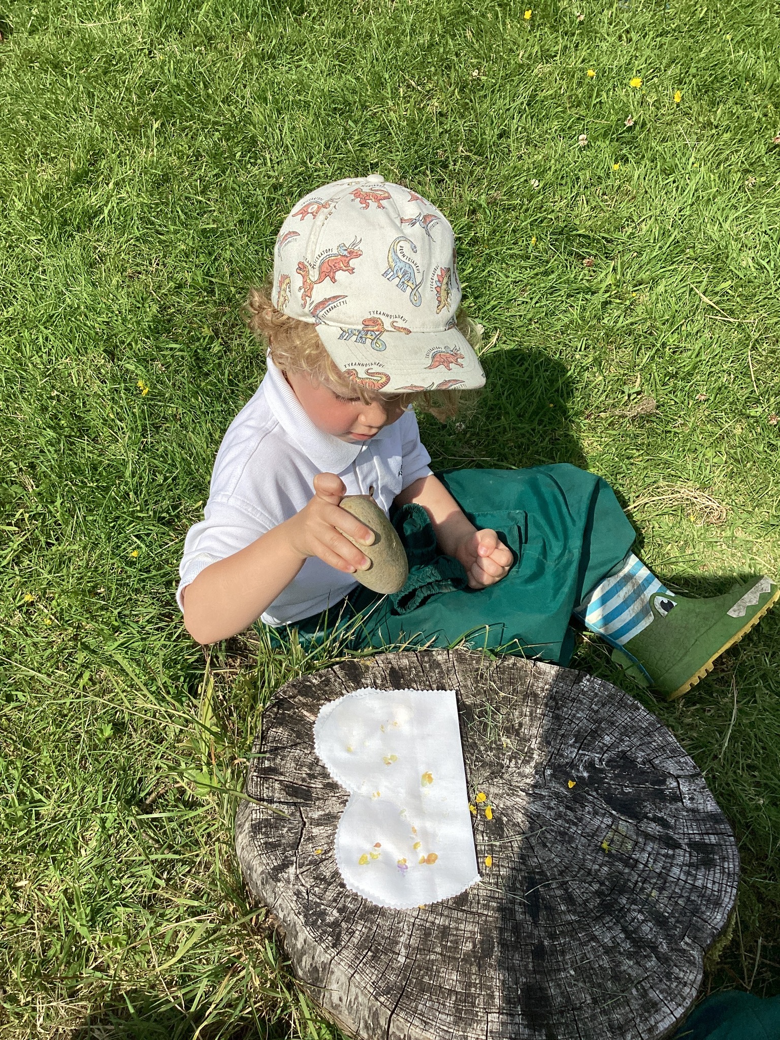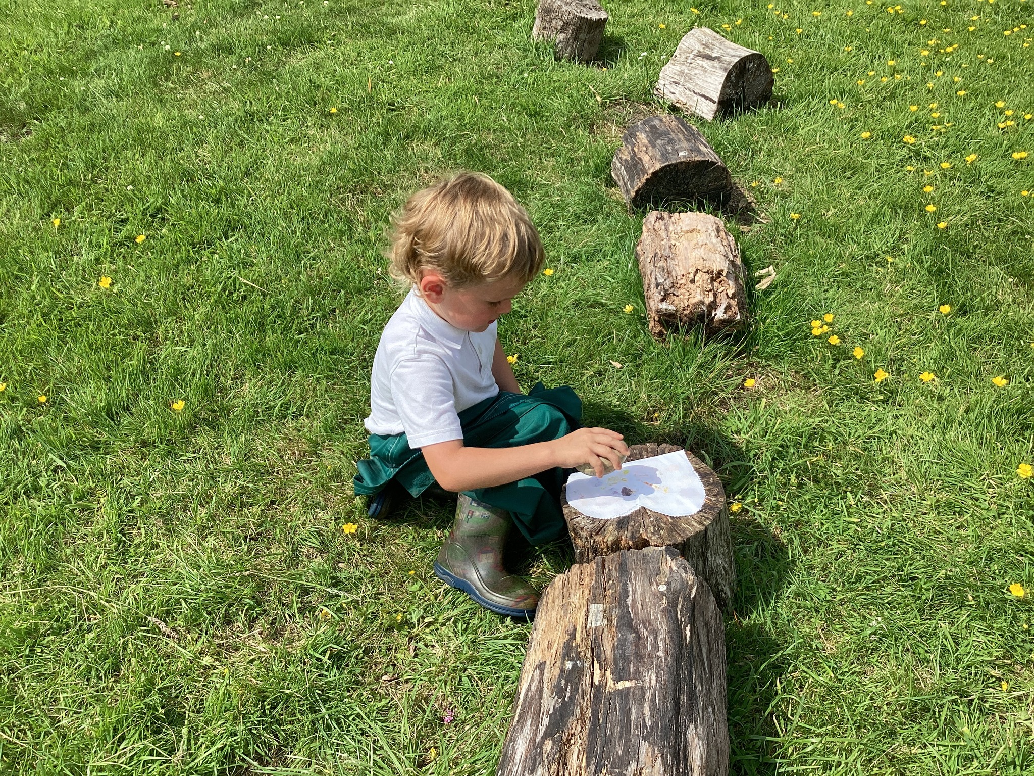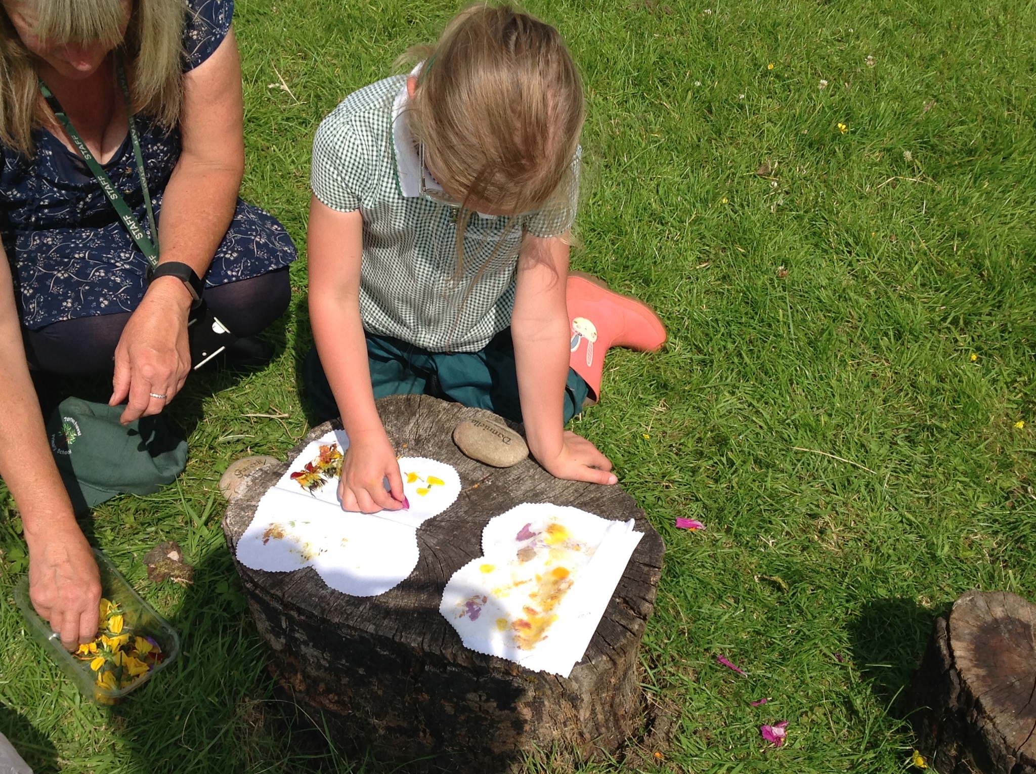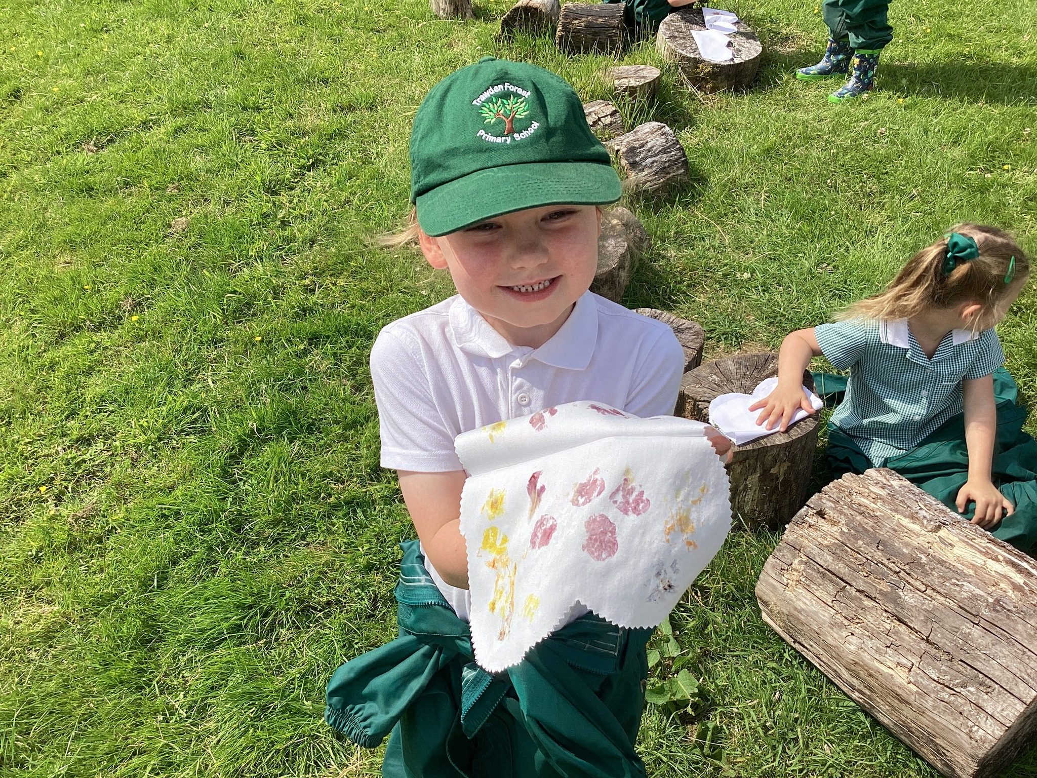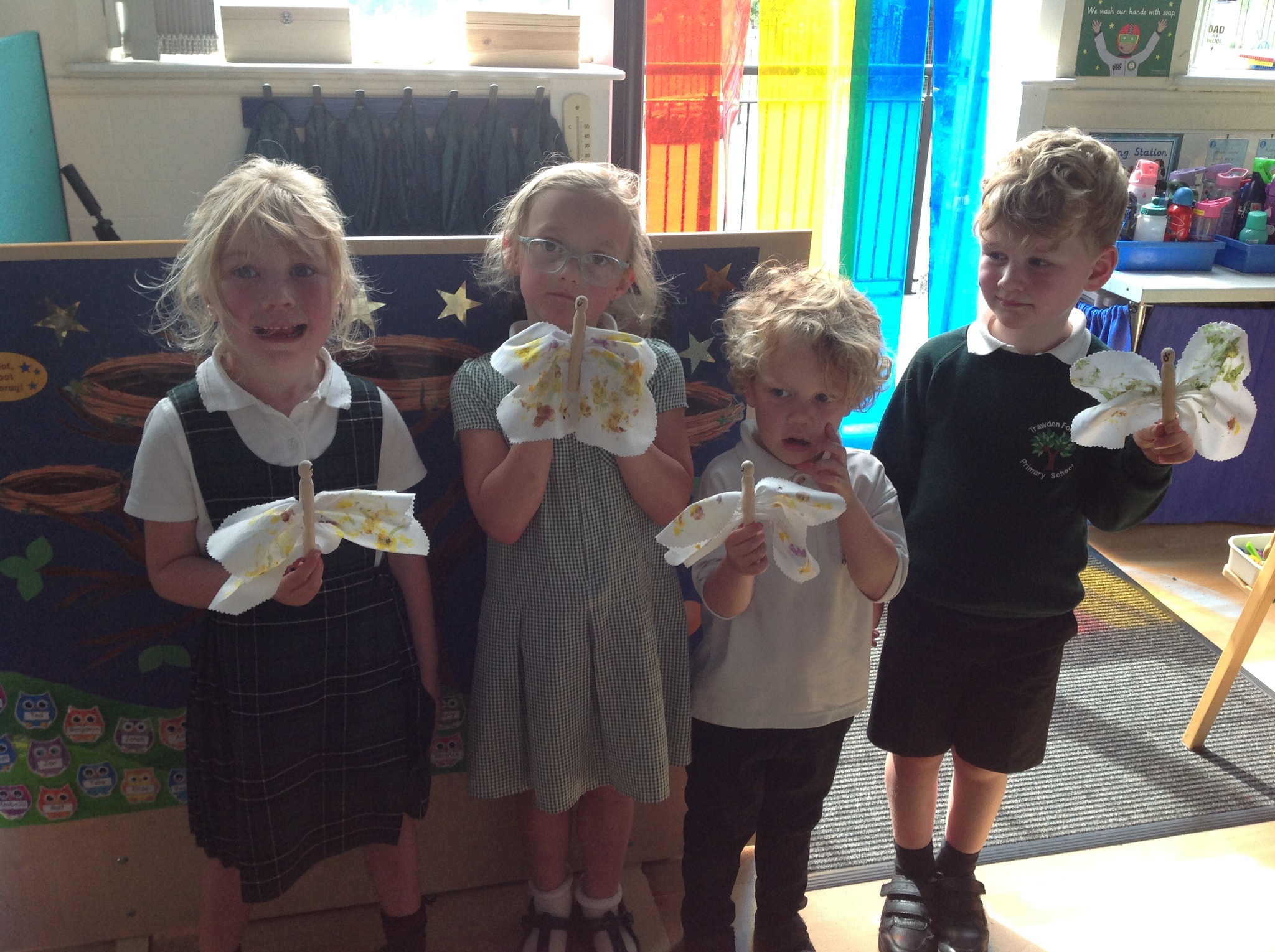 Each child carefully arranged they found onto a folded fabric butterfly, then used a rock to press and imprint the colours and textures — a wonderful combination of nature and creativity.