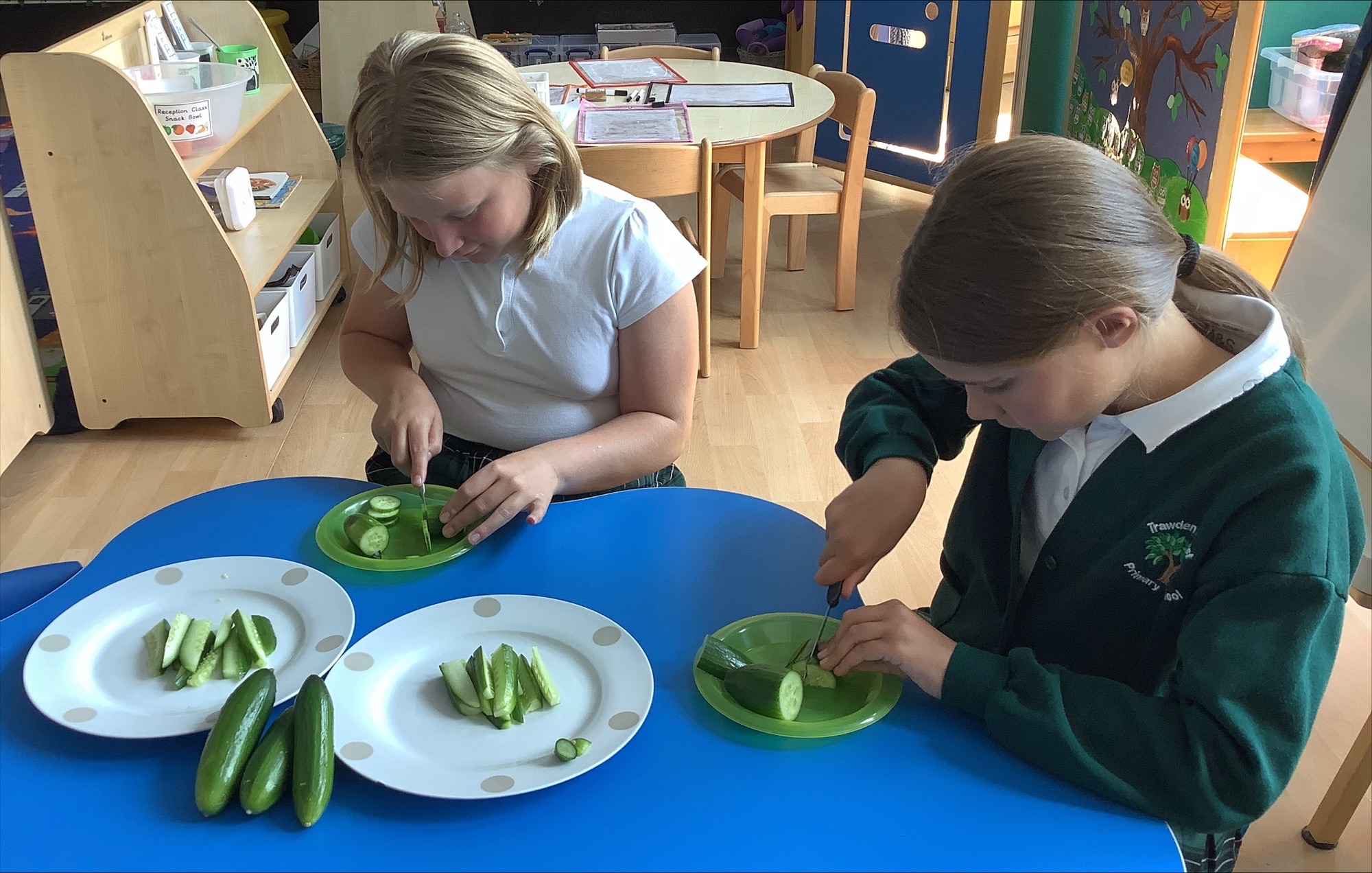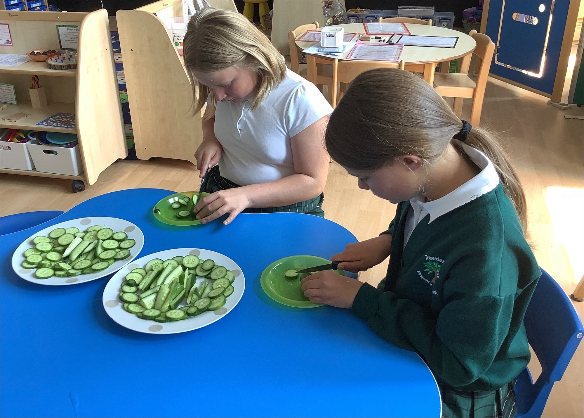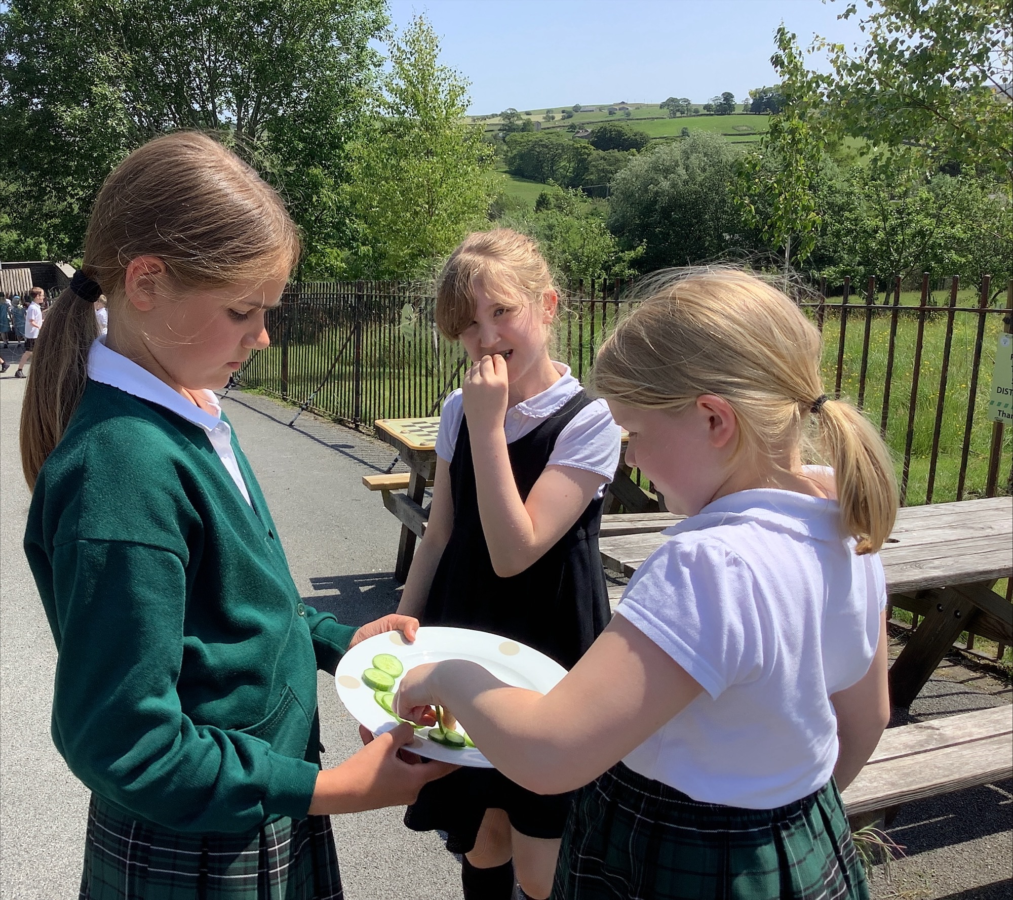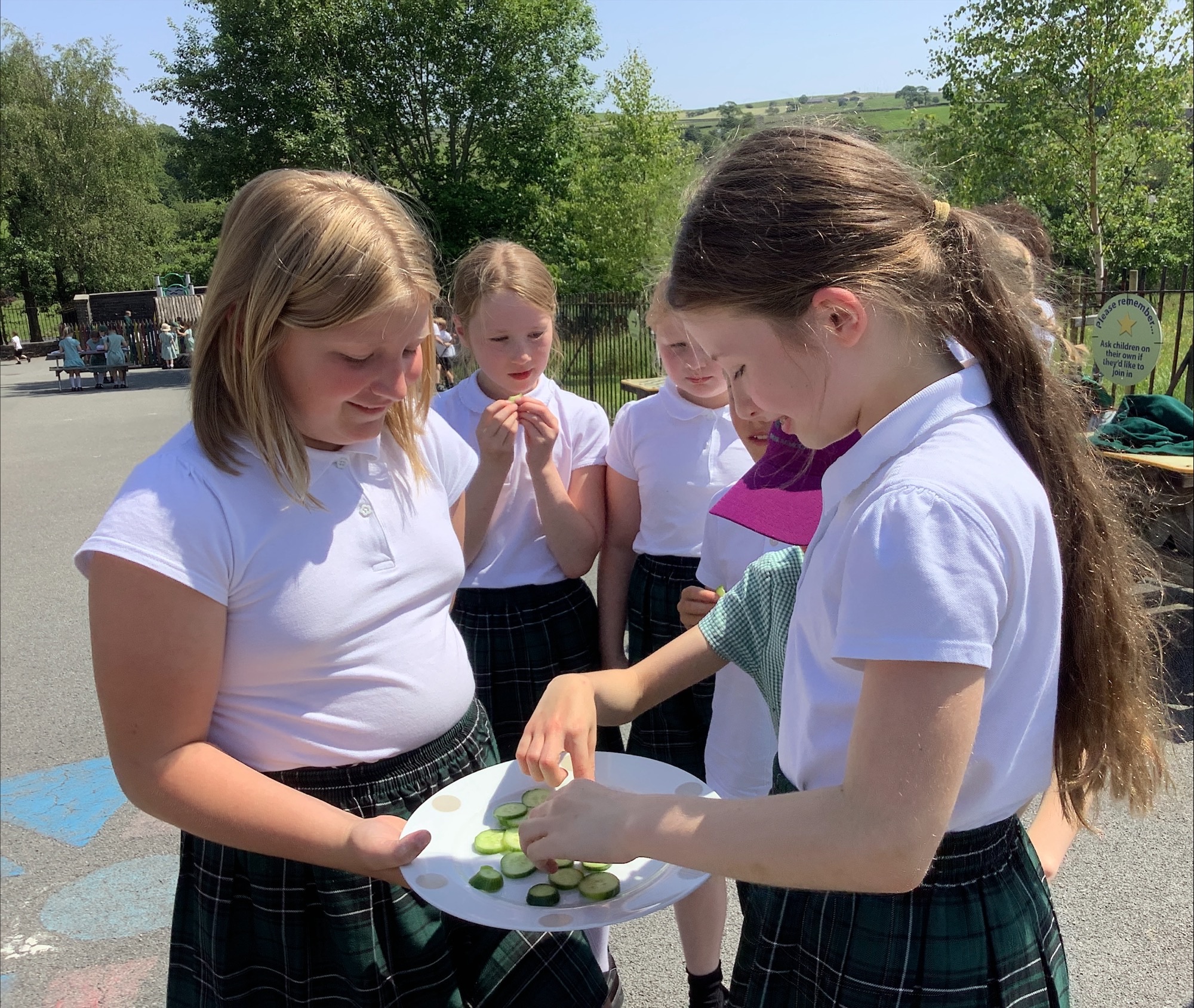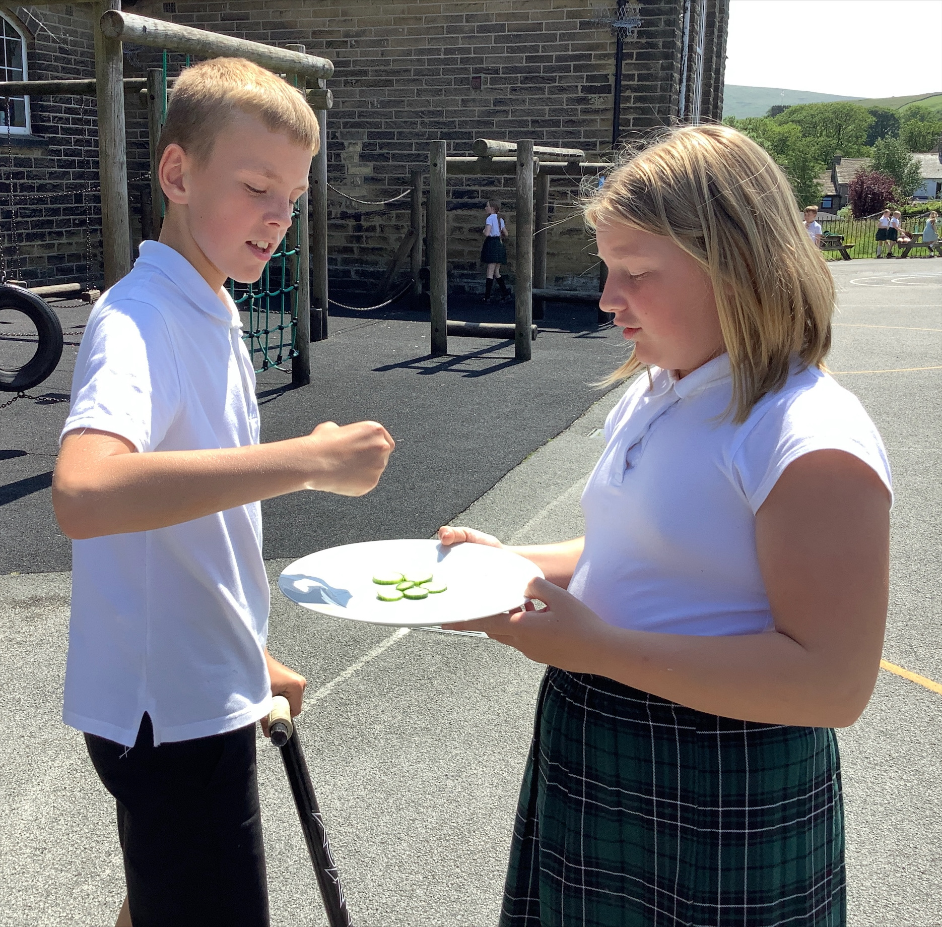 After all their hard work growing from seed and tending the plants, some of our gardeners got busy slicing up the harvest and taking the cucumbers around the school yard at breaktime for everyone to try.