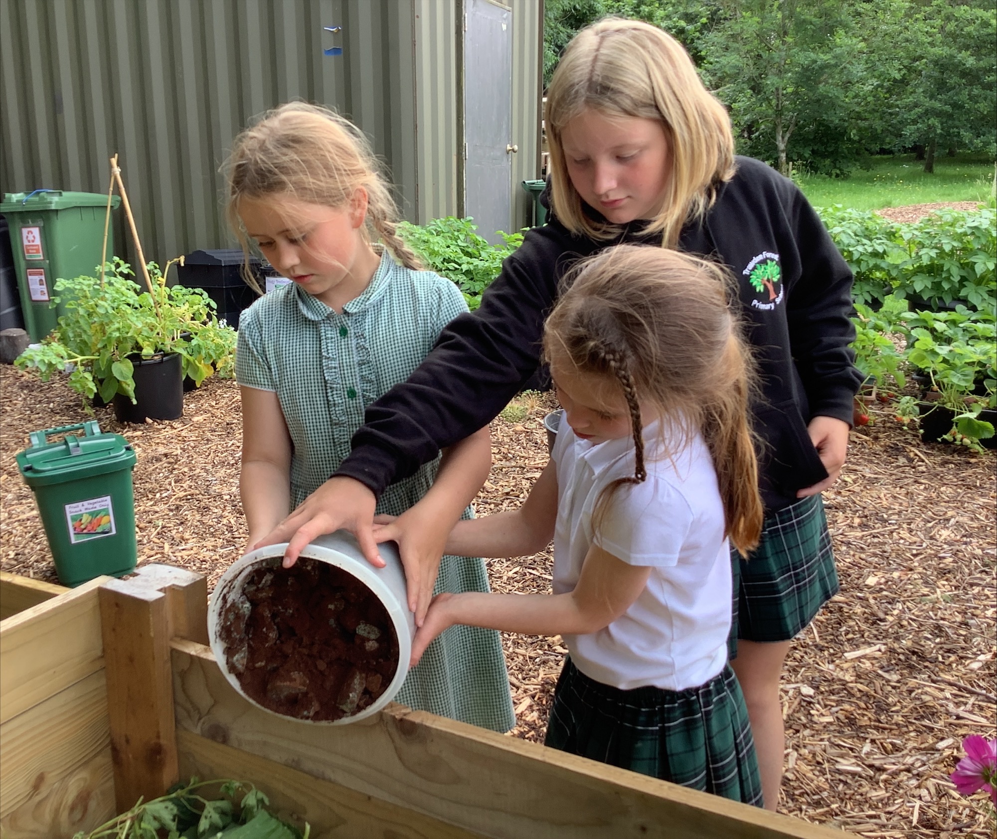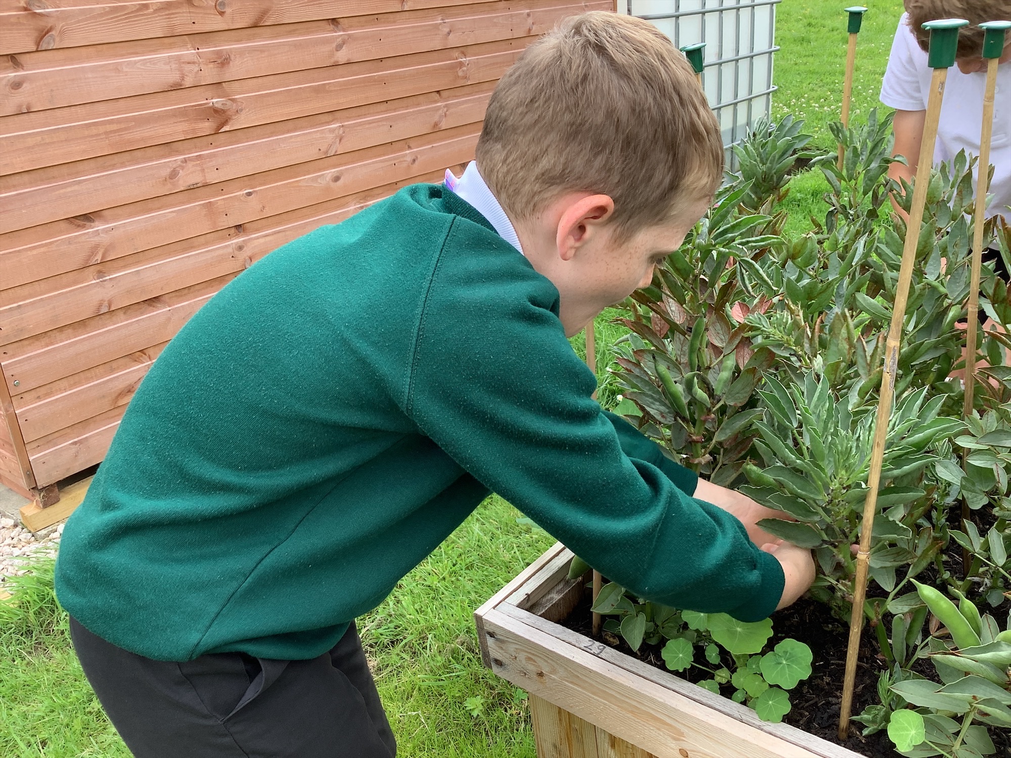 We also began our exciting ‘Pongy Potion’ project! The comfrey plants had finished flowering, so we chopped them up, gave them a good bruise with a big stick, and added water to start the magical transformation. In a few weeks, we’ll have our very own organic comfrey fertiliser—a brilliant (and stinky!) boost for the school garden!