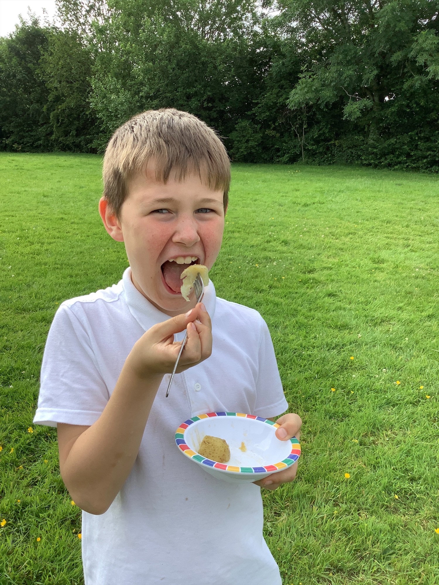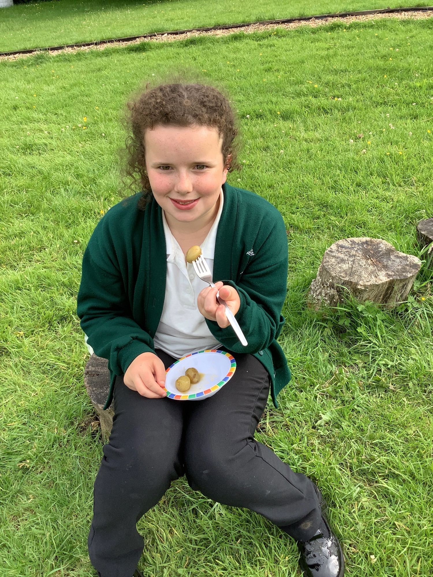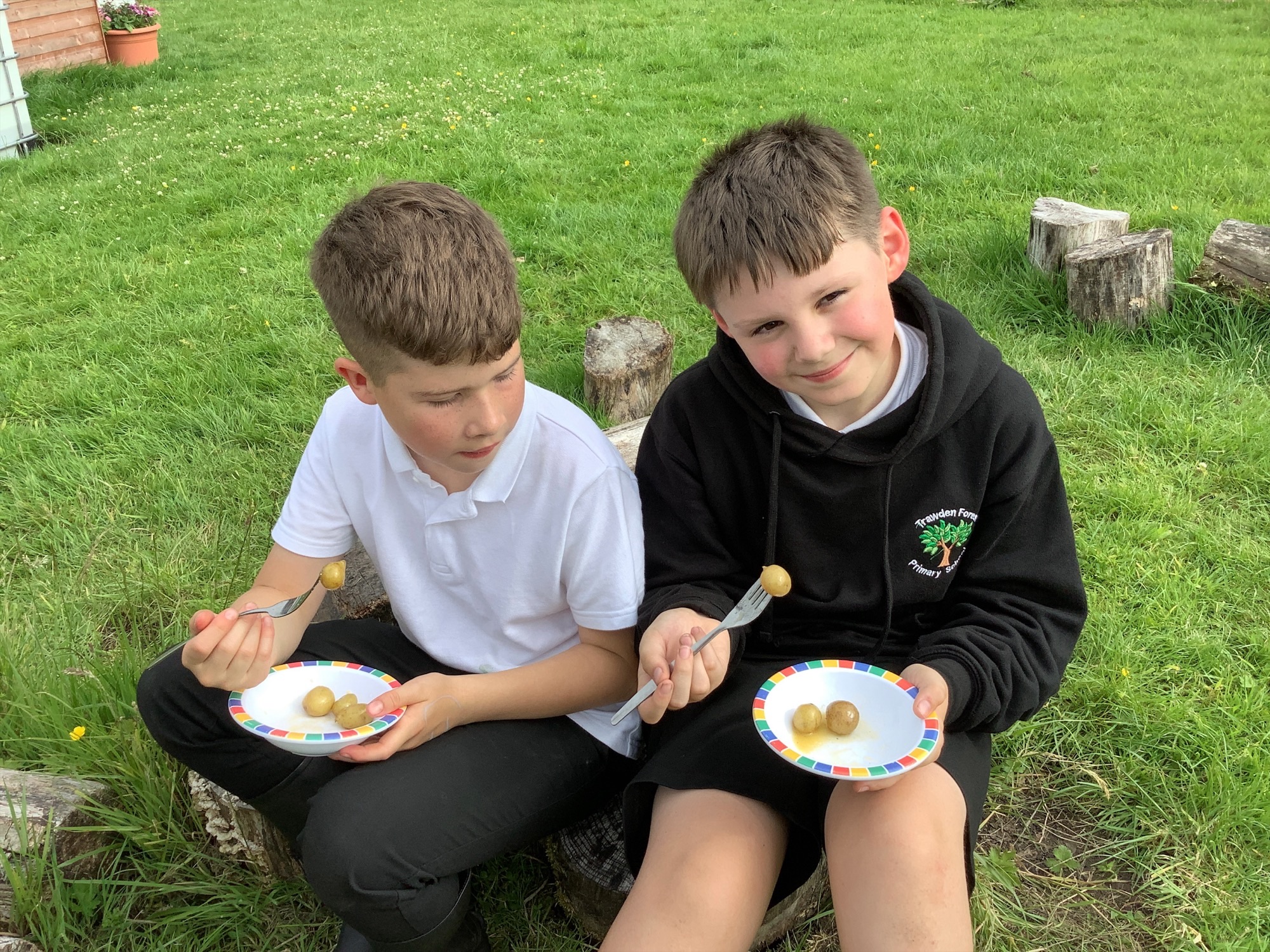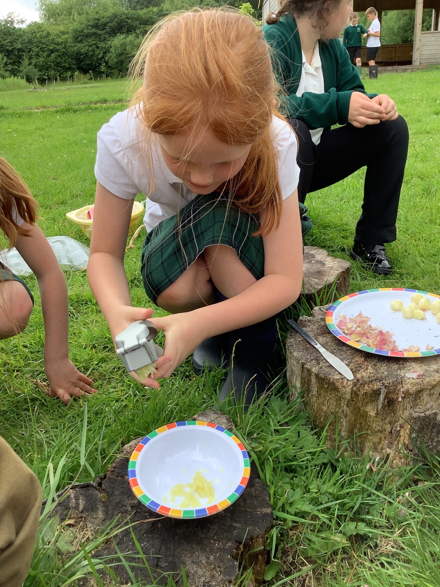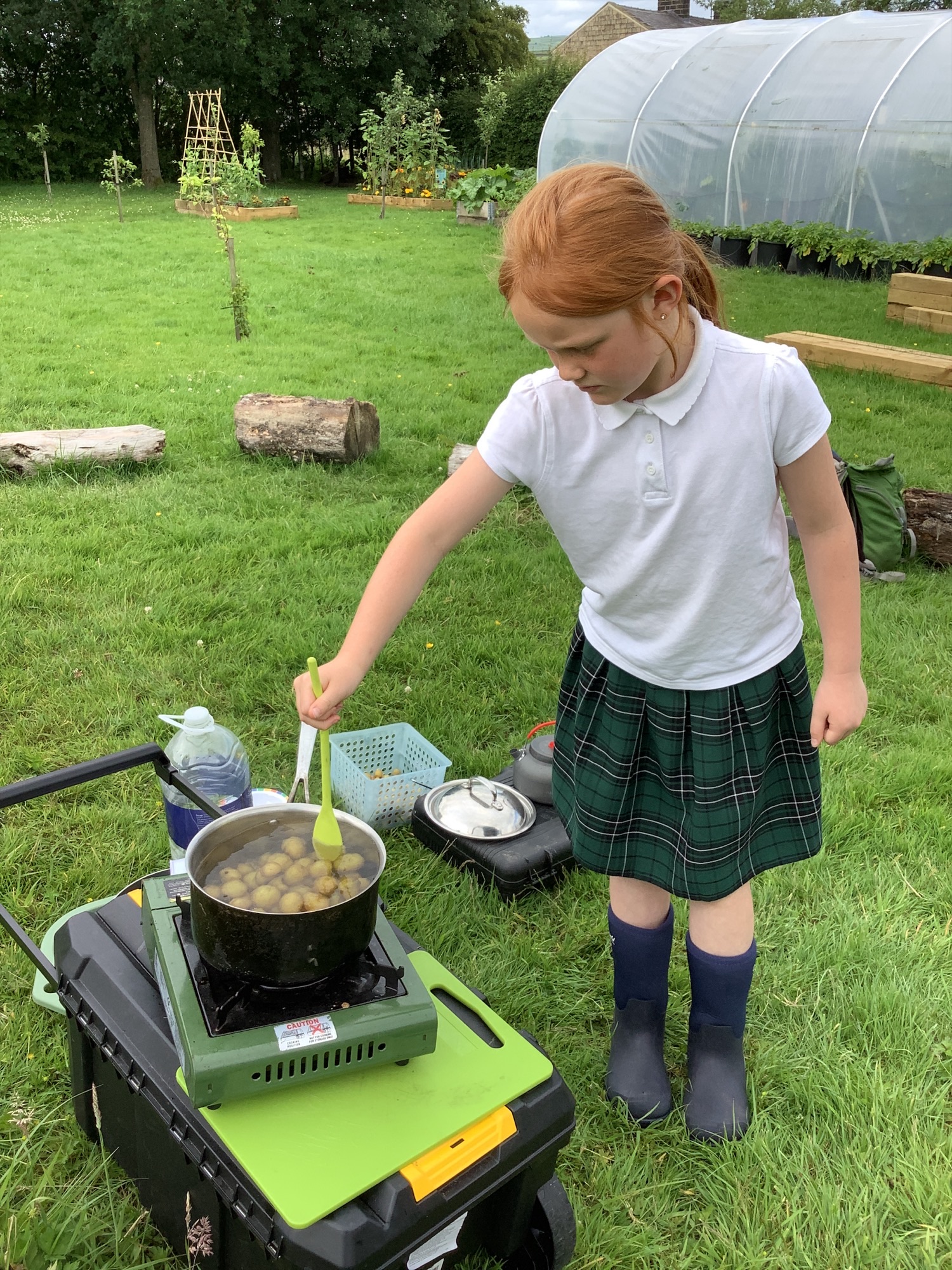 Using some of the freshly dug potatoes and garlic harvested from last week, we took our cooking skills outdoors and made two delicious potato dishes. We sautéed the potatoes in garlic, as well as boiling some of the new potatoes and tossing them in butter. The potatoes were a huge thumbs up from all the children.