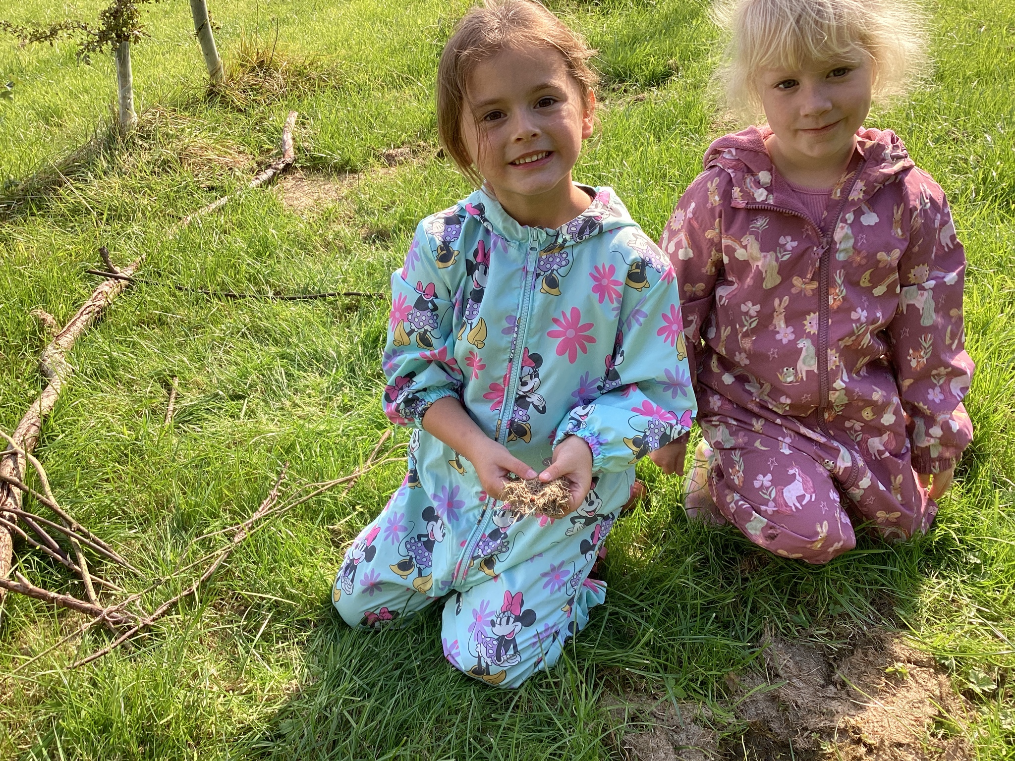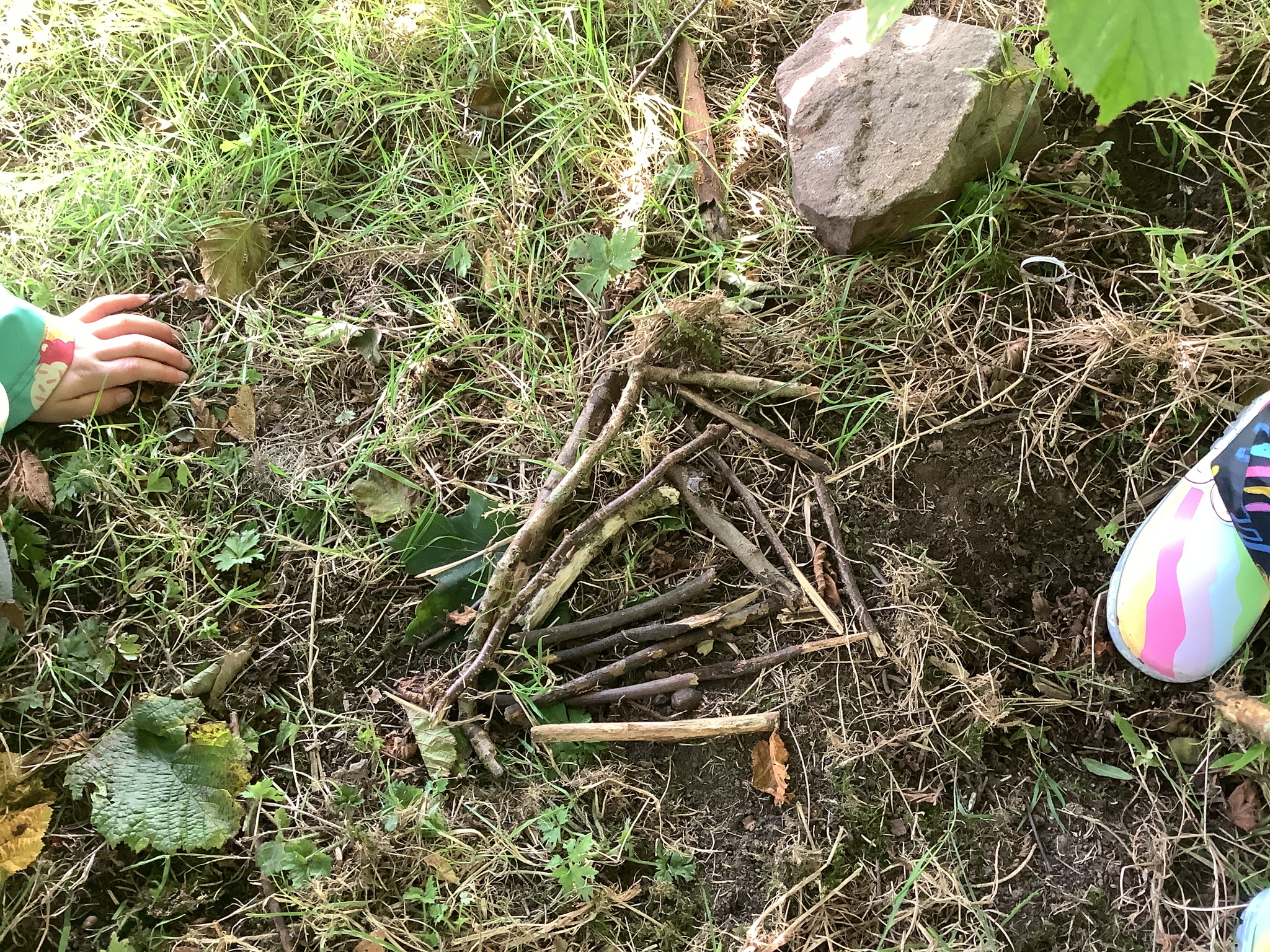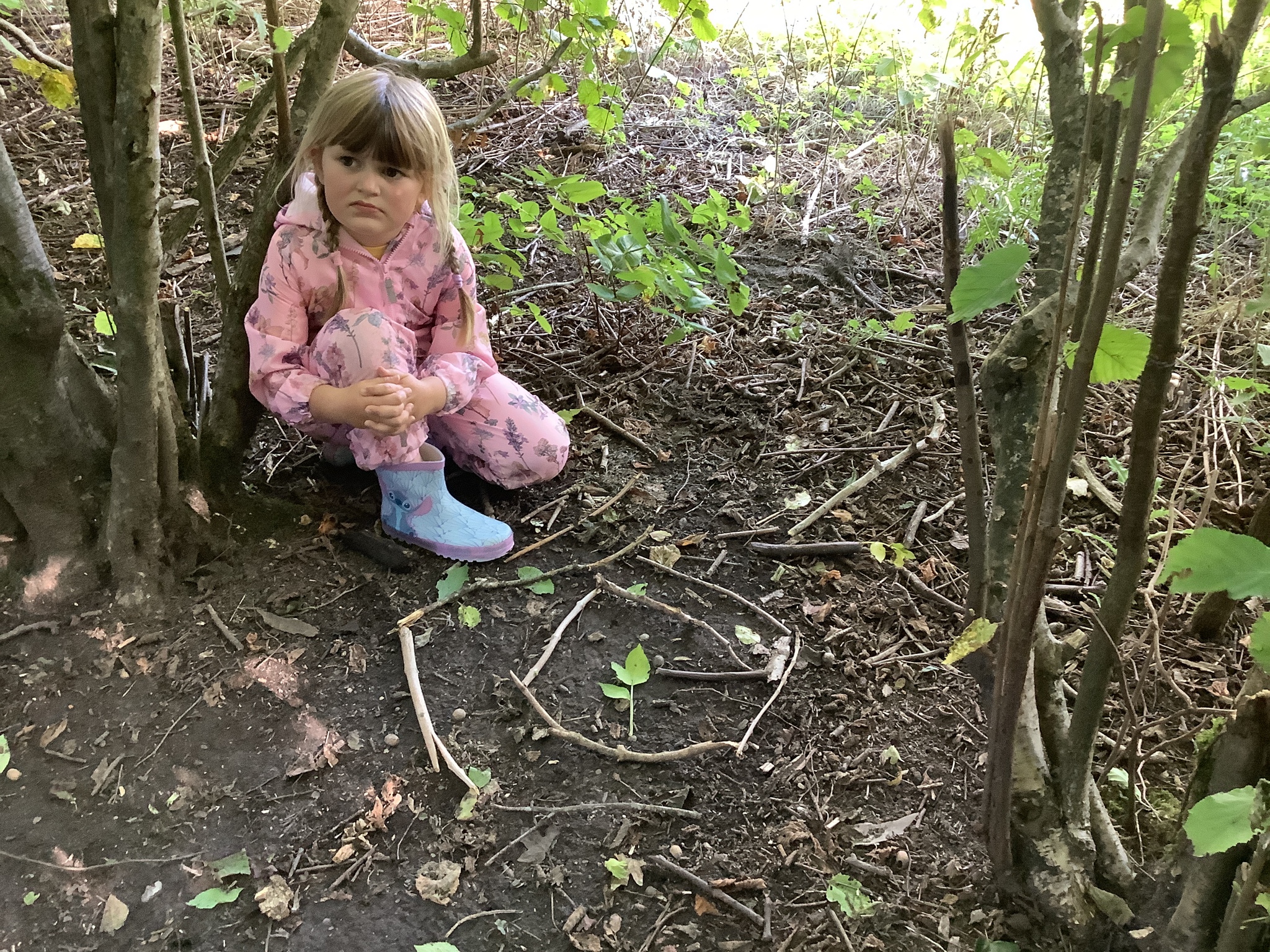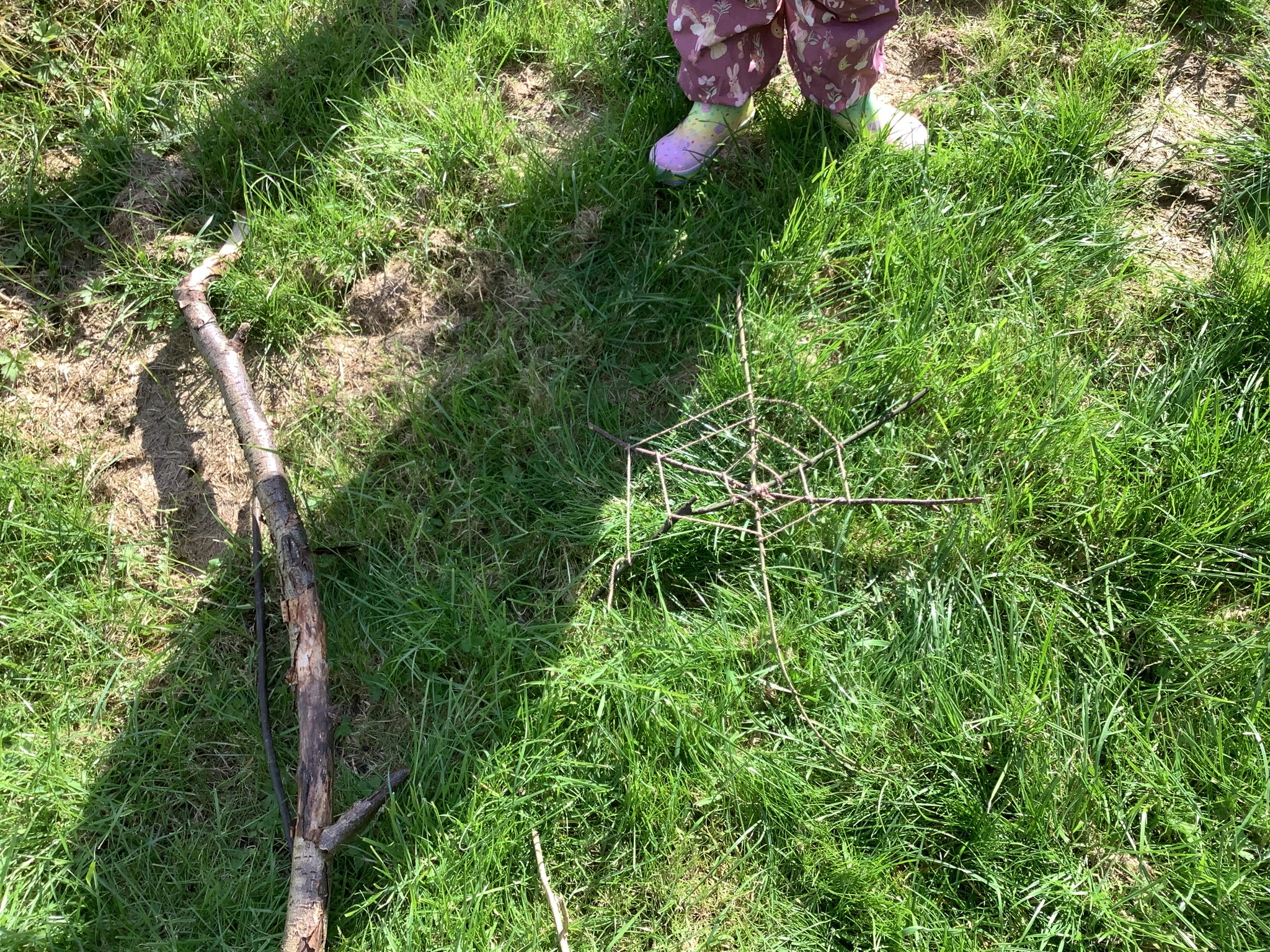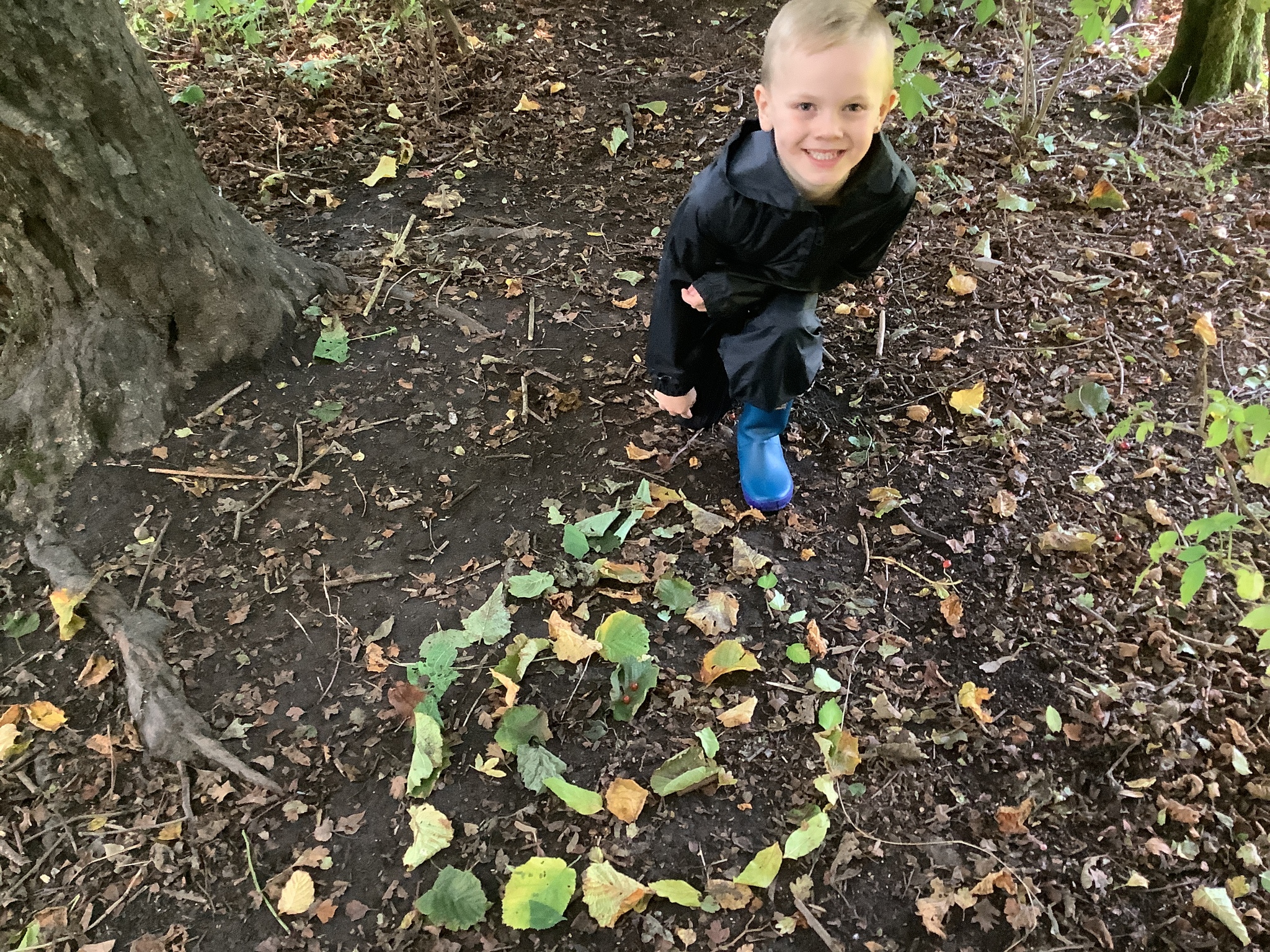We practised making spirals with our bodies and realised for big spirals you need to move your whole body, not just your fingers. We watched the artist Molly Haslund creating circles and spirals on a large scale outdoors and were inspired to create our own