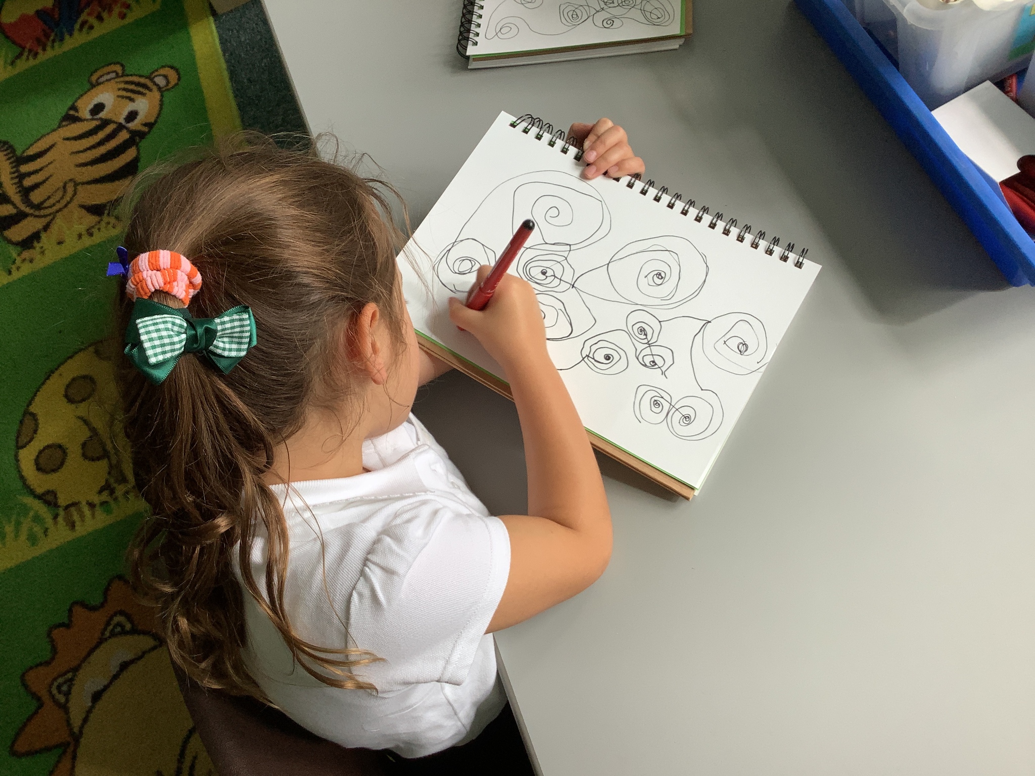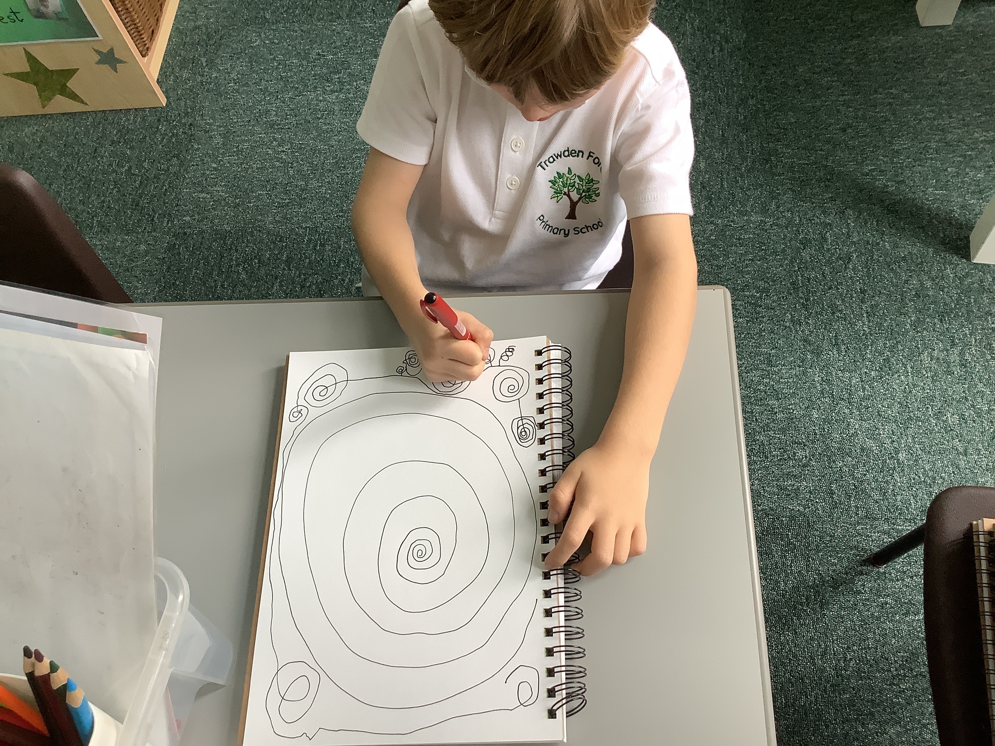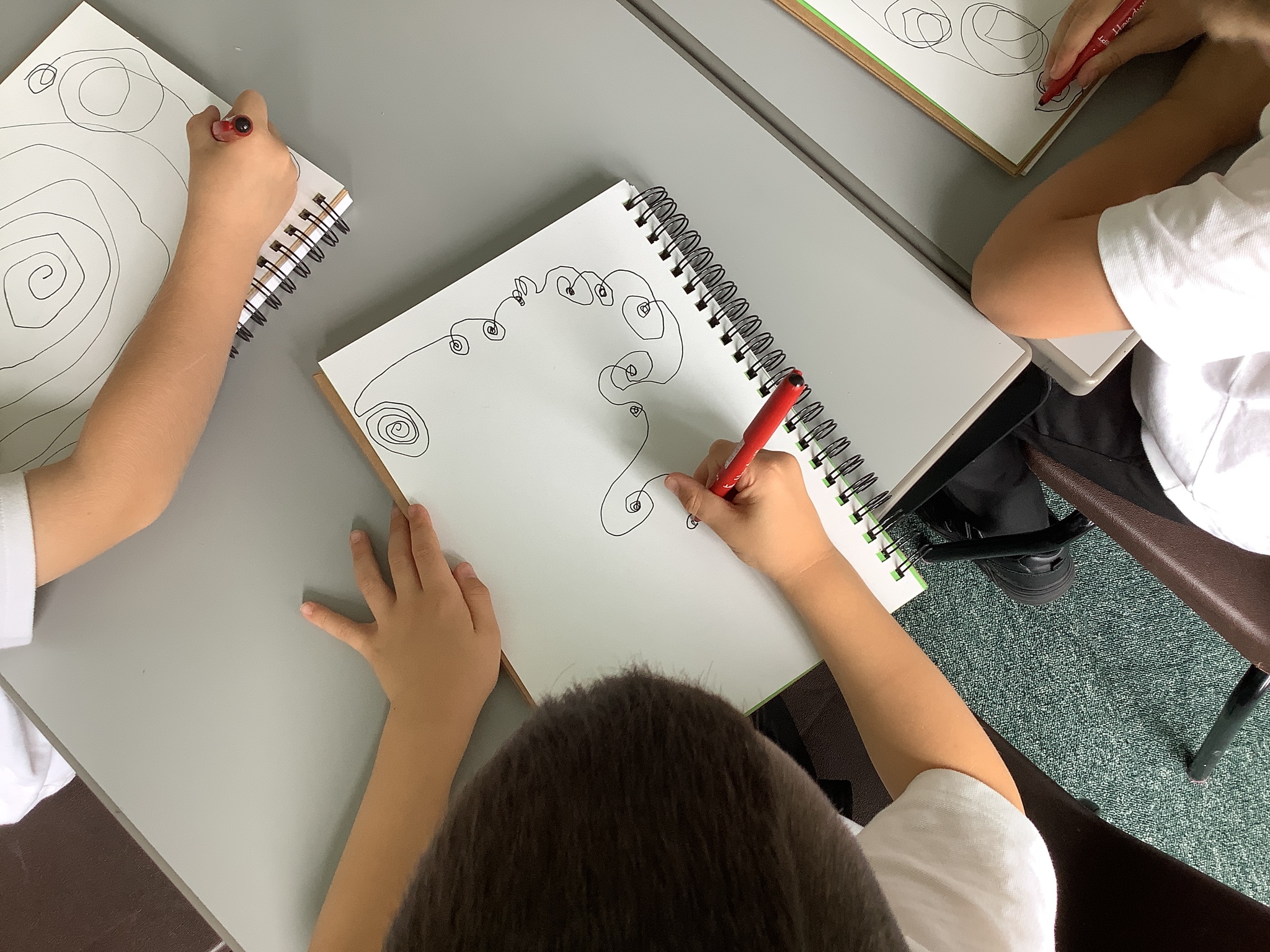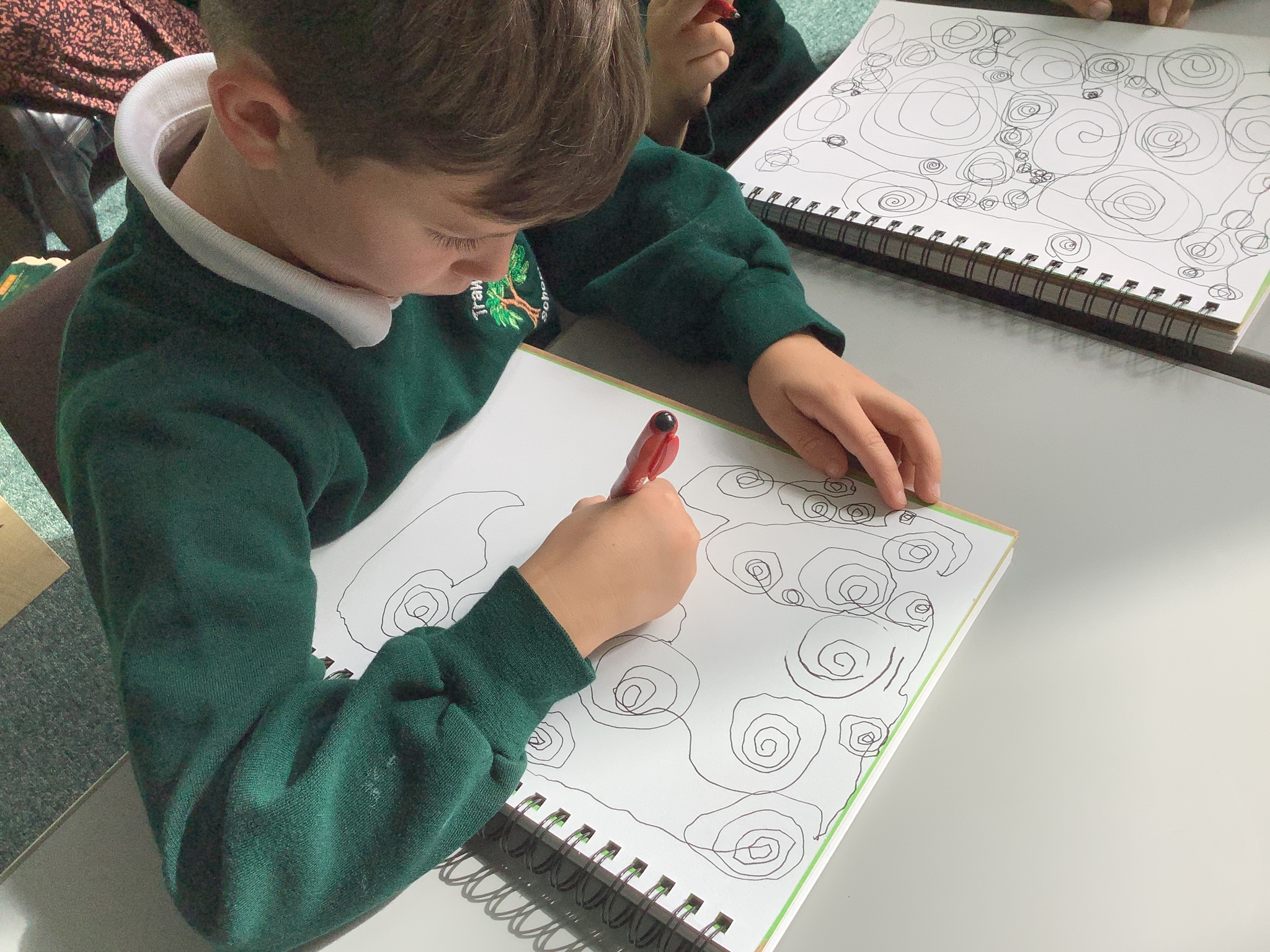 The children also had a go at continuous sketching, using pens to create spirals all over their page without taking the pen off the paper.