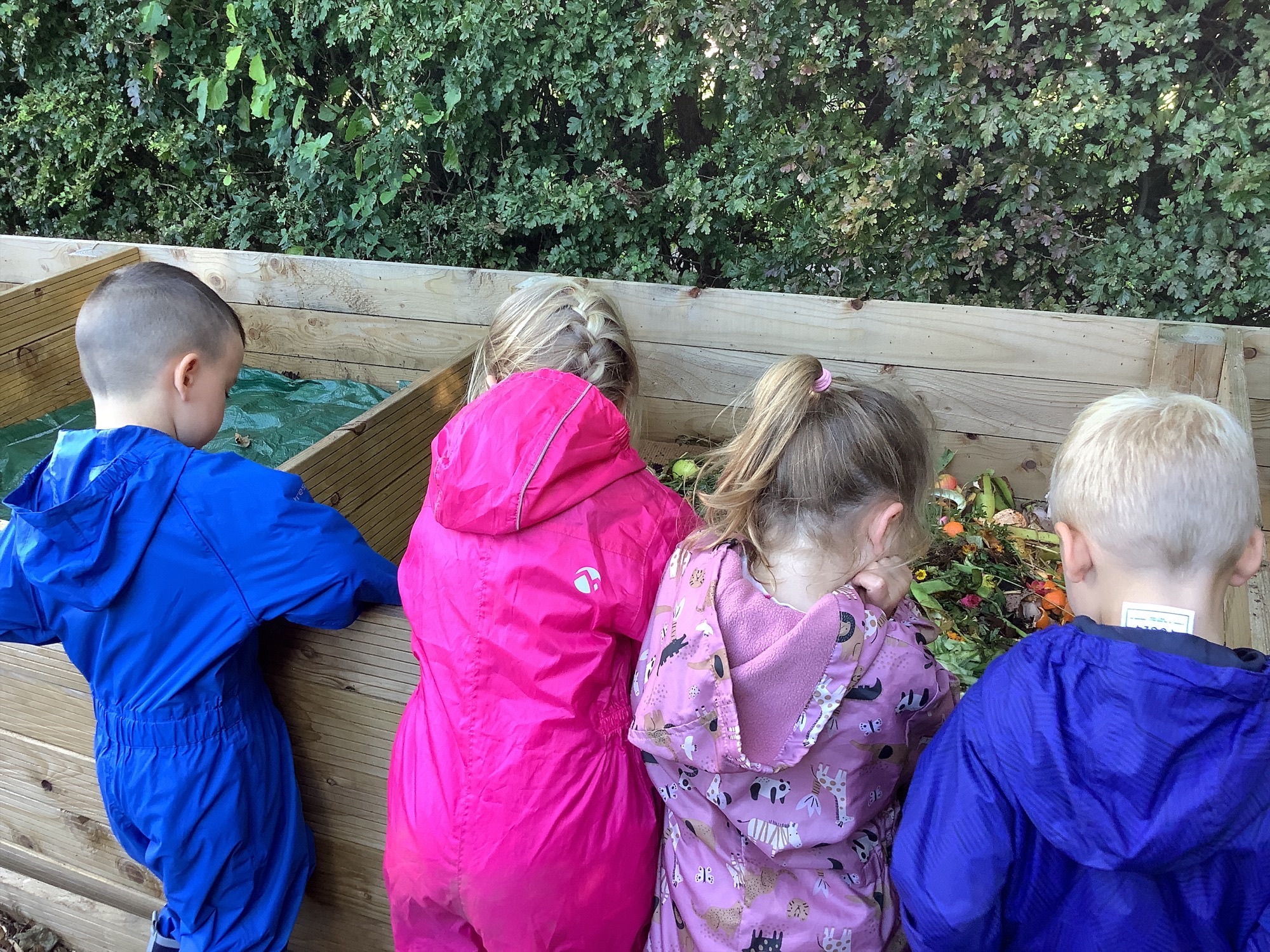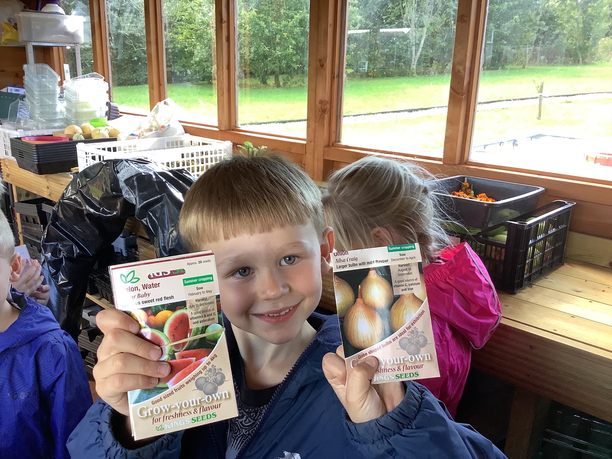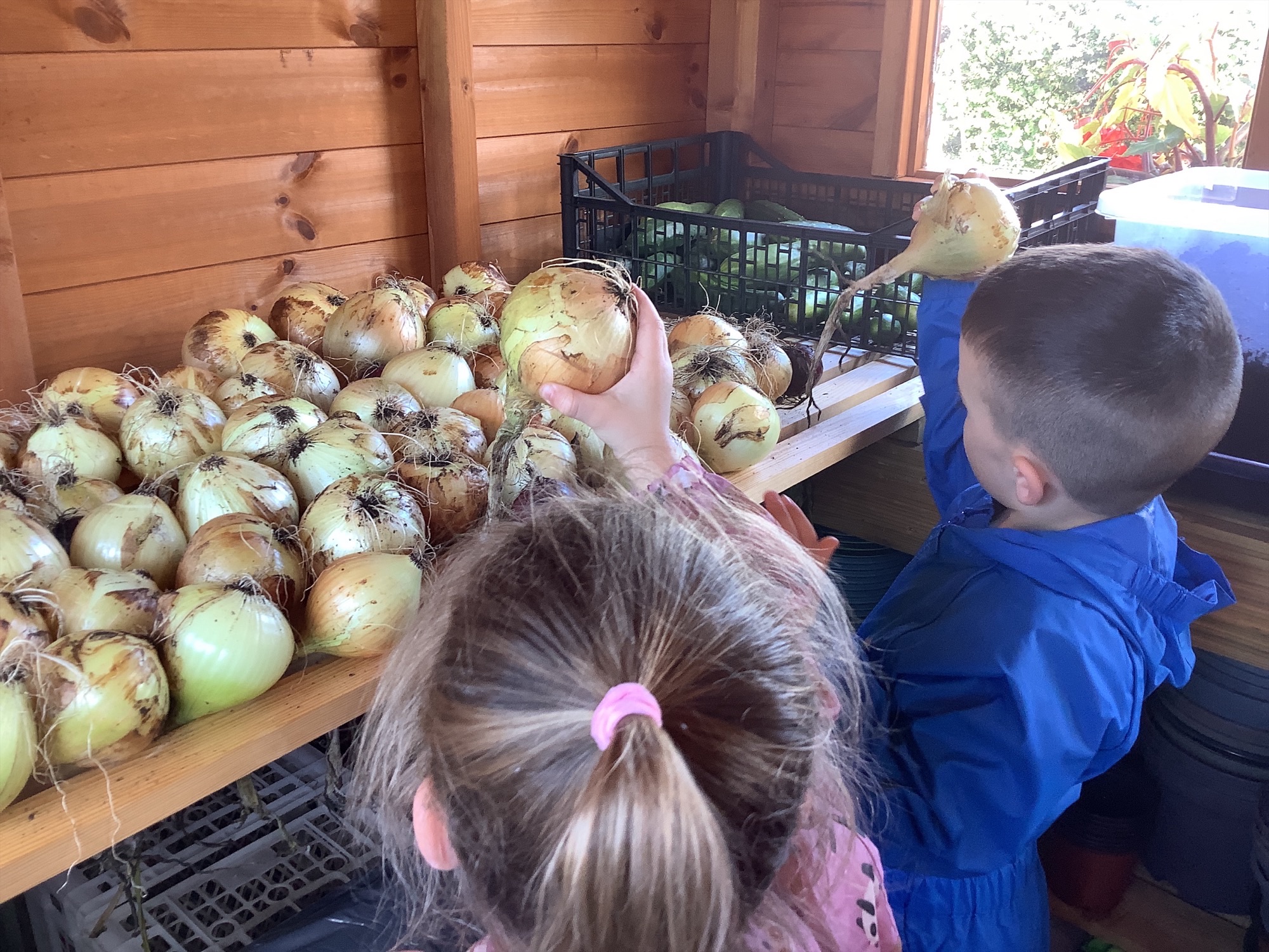 The children explored our collection of seed packets and shared ideas about what they would like to grow next season. They were amazed at the size of the onions we had harvested! Our composting journey was also introduced — the children compared compost that had just been turned into a new bay with a compost bay that was still being added to, learning how the waste breaks down to become nutrient-rich soil.