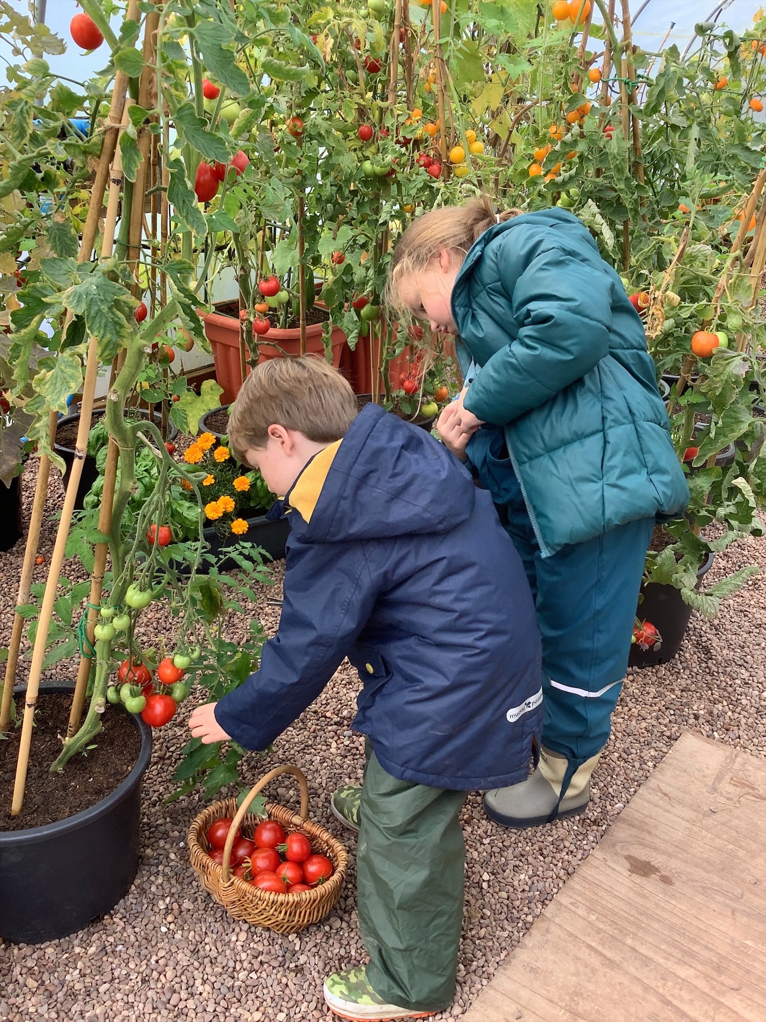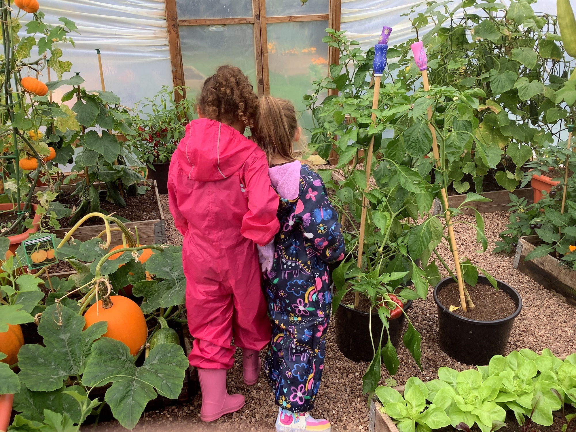 The children looked at the vegetables growing, discovered what happens in the potting shed, and checked on the corn that’s drying — we can’t wait to make popcorn soon. They also learnt what happens to our fruit and vegetable snack waste from breaktimes, before checking in on our tiger worms, who are busy making compost in the wormery.