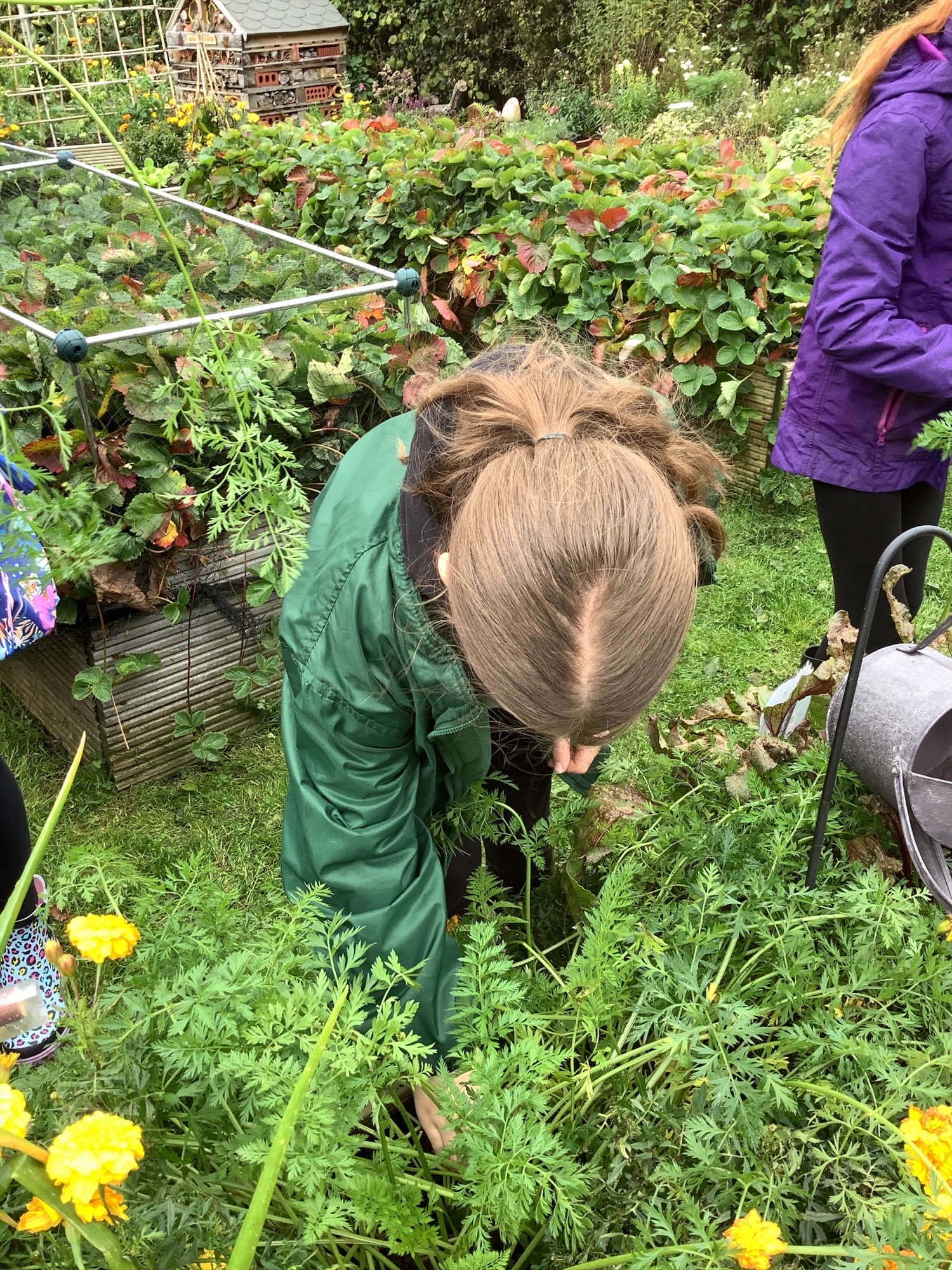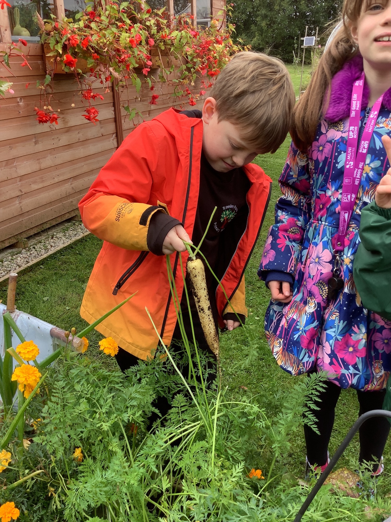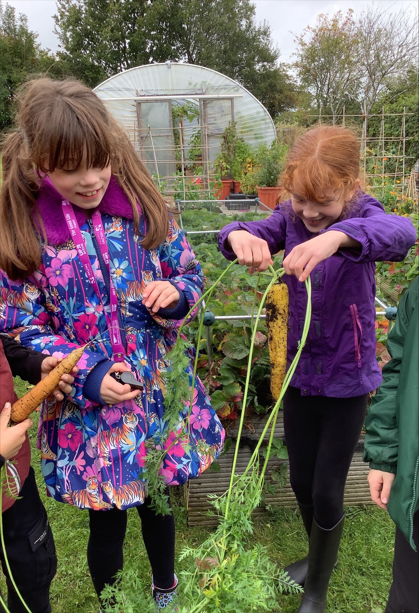 Another group of our enthusiastic Year 5 Gardening Gang rolled up their sleeves in the school garden this week. They began by harvesting carrots we had grown from seed — including a striking yellow variety that proved carrots come in more than just orange! The colourful crop caused plenty of excitement and curiosity as the children compared shapes and shades.