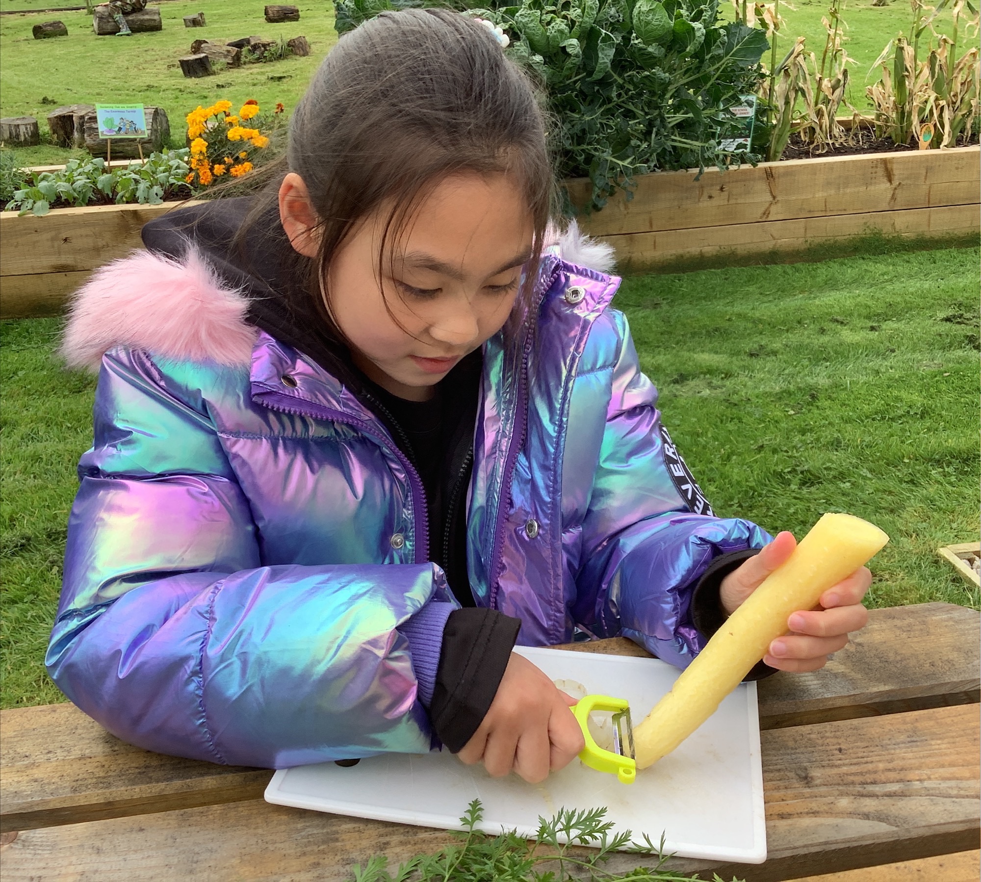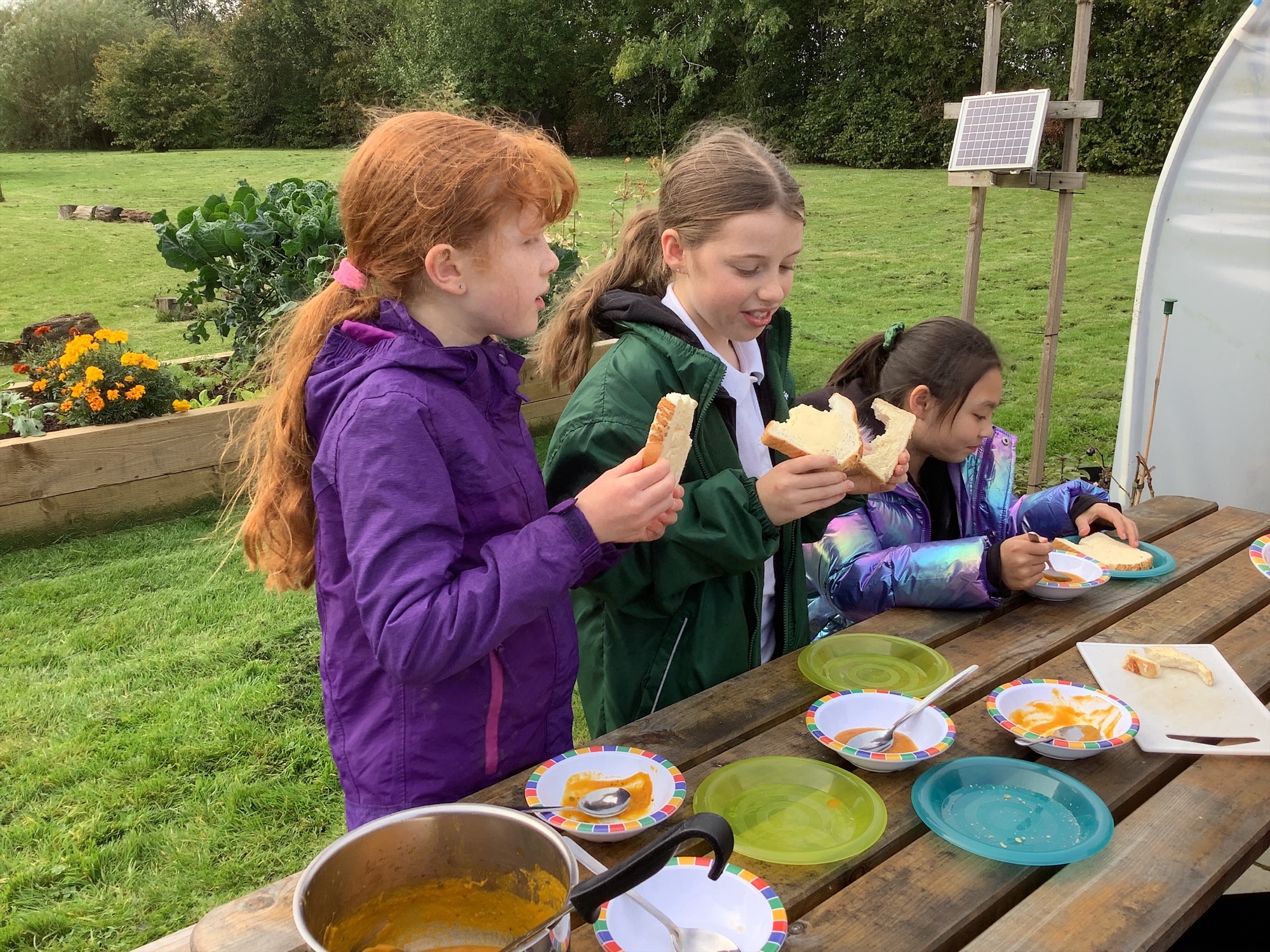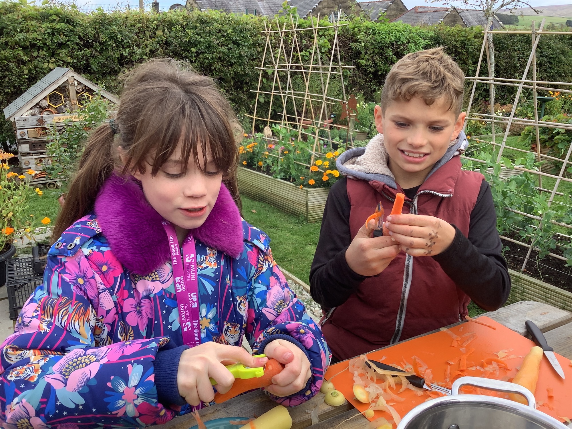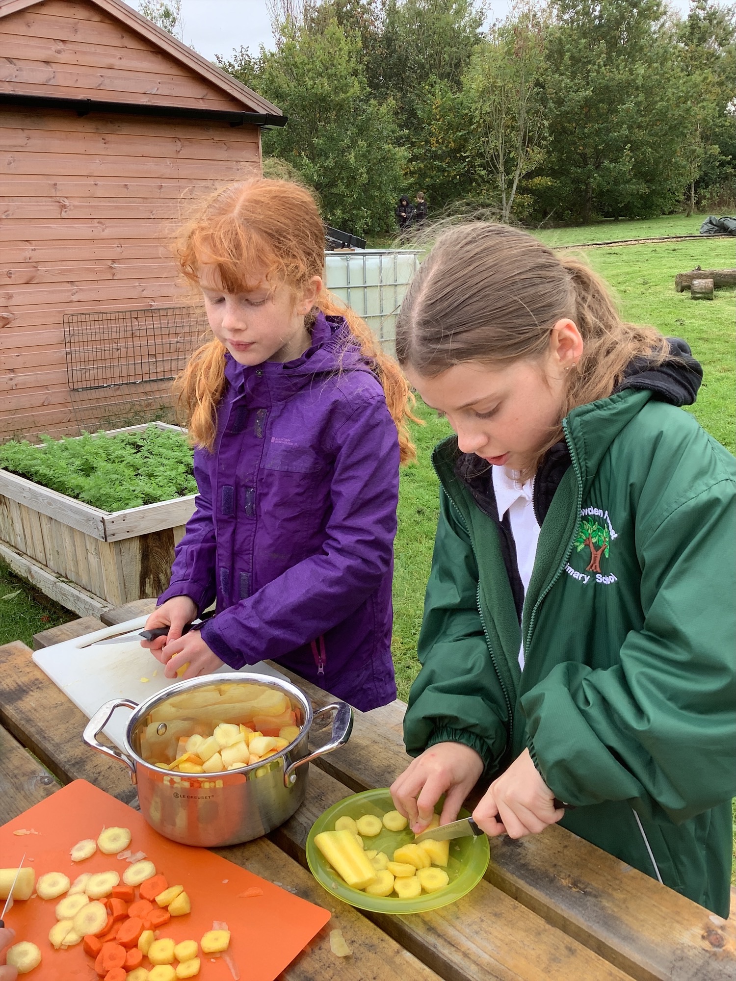 Once gathered, the carrots were washed, peeled, and chopped, before being transformed into a warming carrot and coriander soup cooked outdoors. The children loved seeing how their hard work in the garden could be turned into something delicious to share and enjoy together.