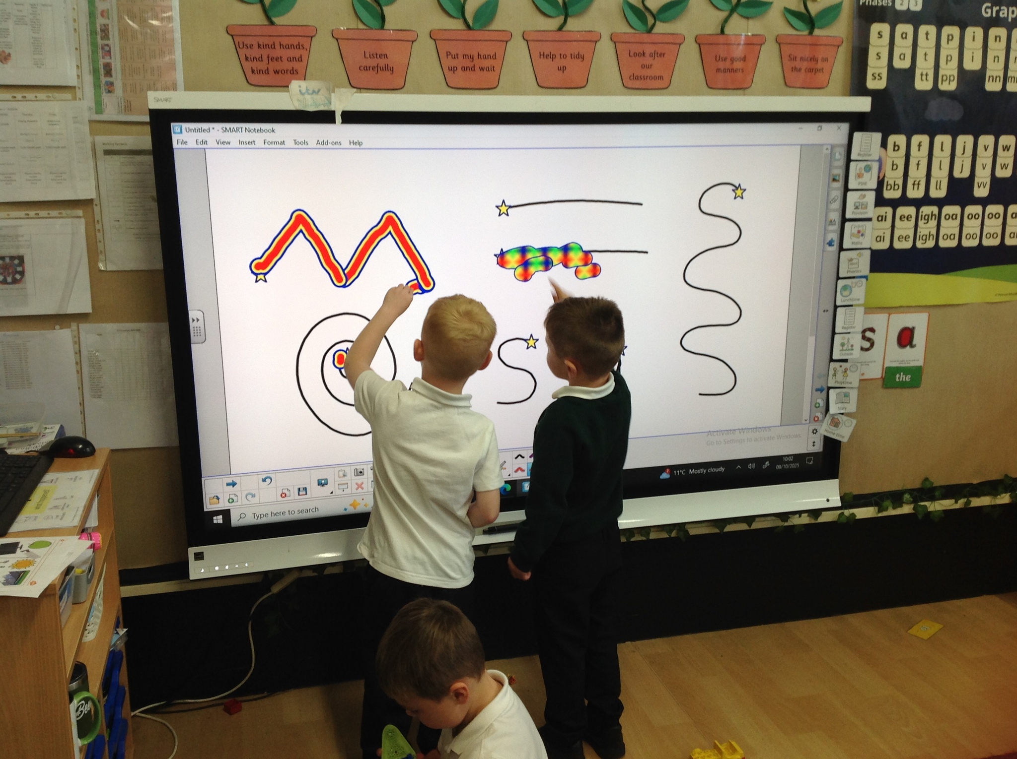 In phonics, we have been learning the sounds ‘s’ and ‘a’, listening carefully to the initial sounds in words and practising saying and writing them. We’ve also been working hard on developing our fine motor skills to build the finger strength we need for writing — through fun activities like 'pass the pumpkin' with pegs, cutting, and using playdough.