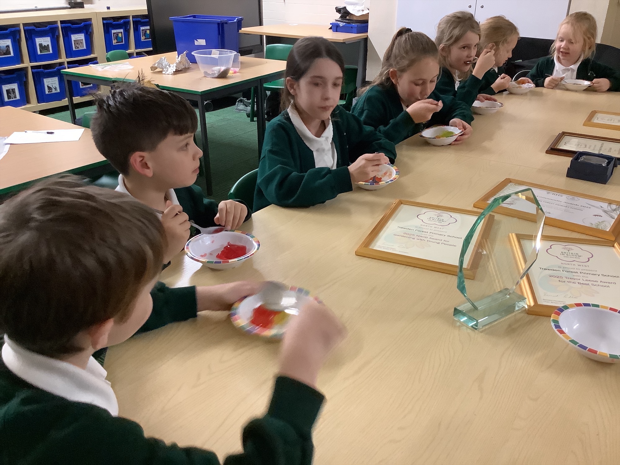 We all came back together at the end of the session to celebrate our incredible gardening achievements with jelly, shortbread biscuits, and a very special homemade treat — delicious ice cream made from our very own polytunnel-grown peaches! It was absolutely scrumptious and the perfect way to end a wonderful session.