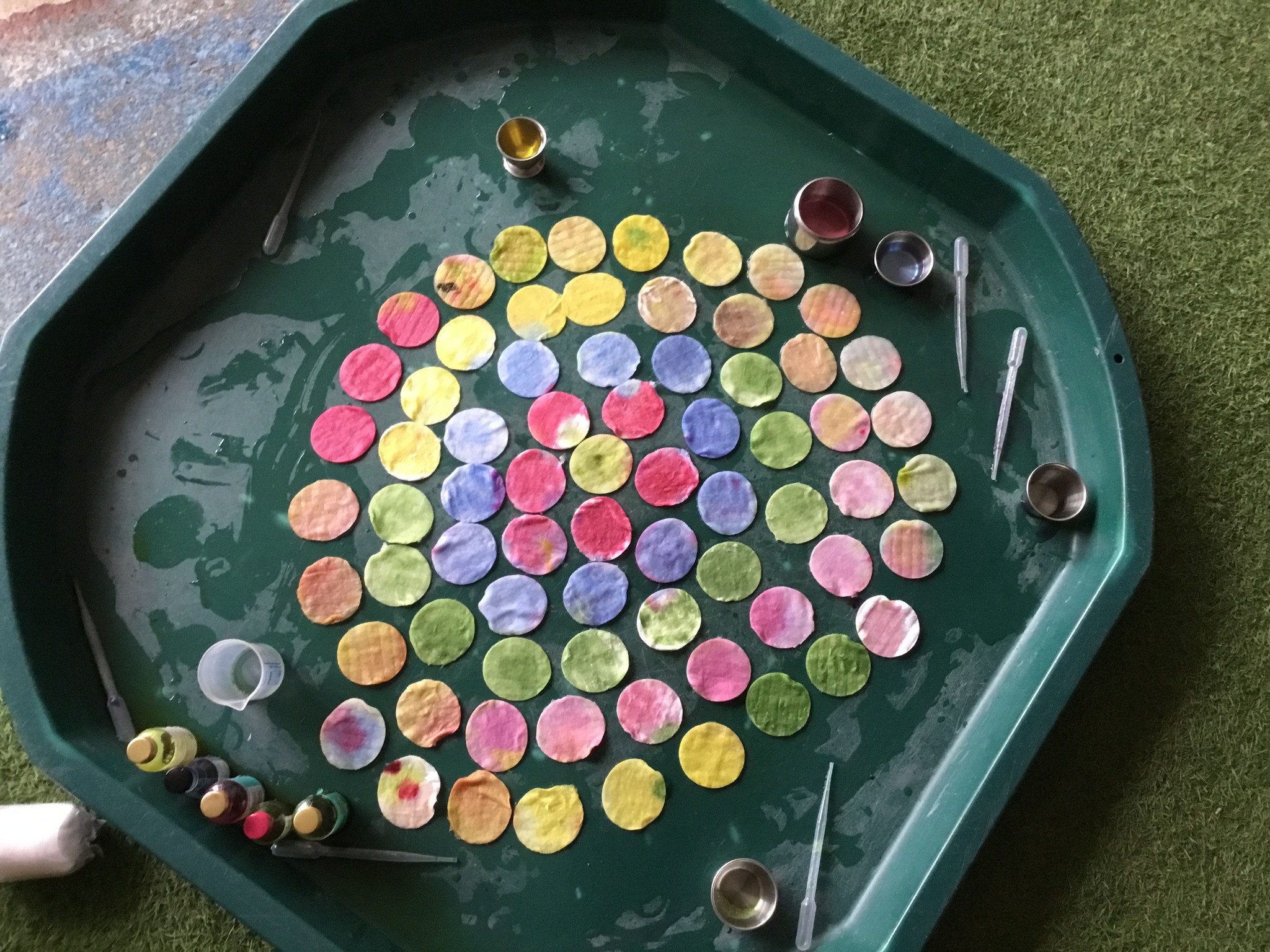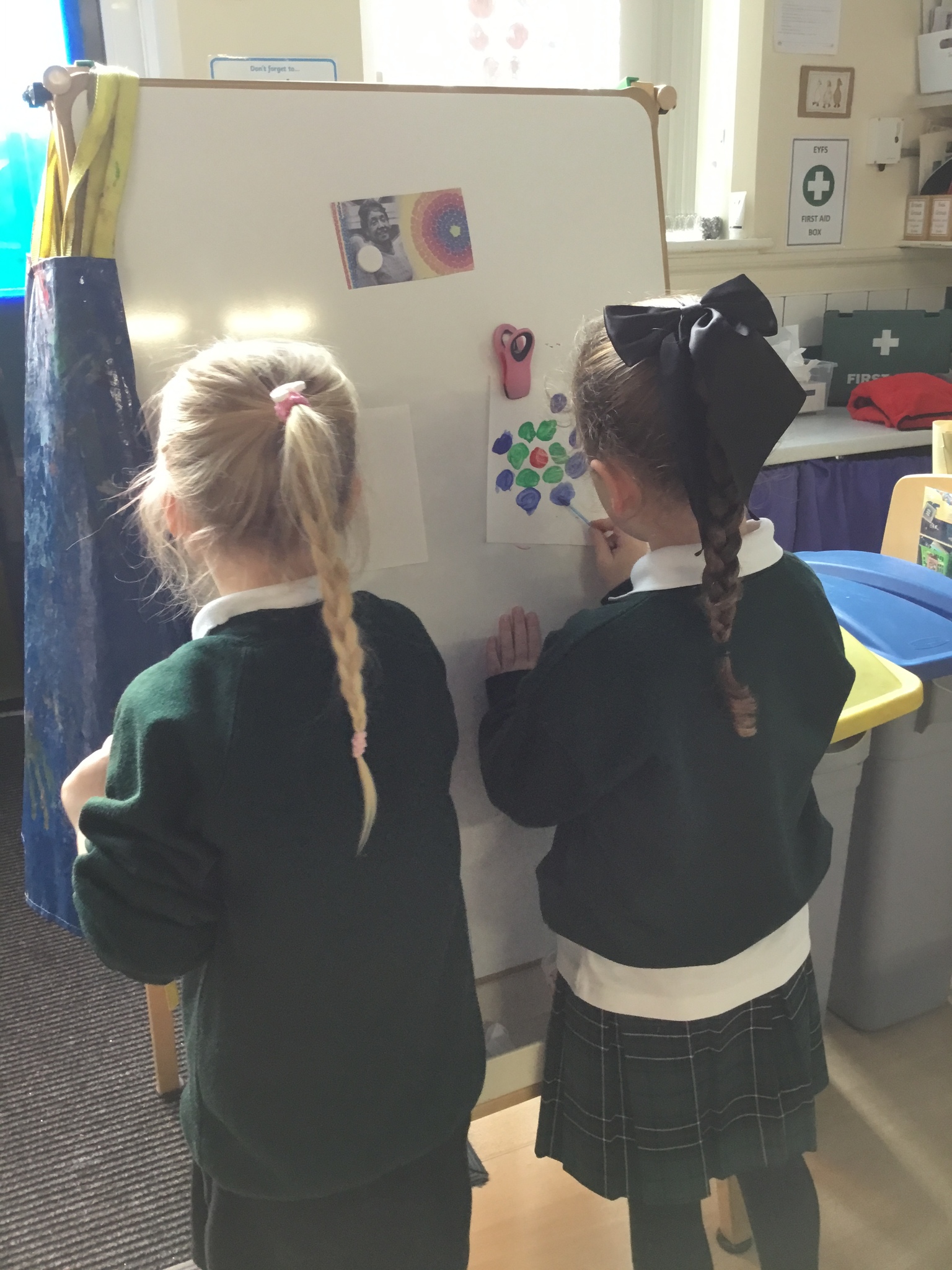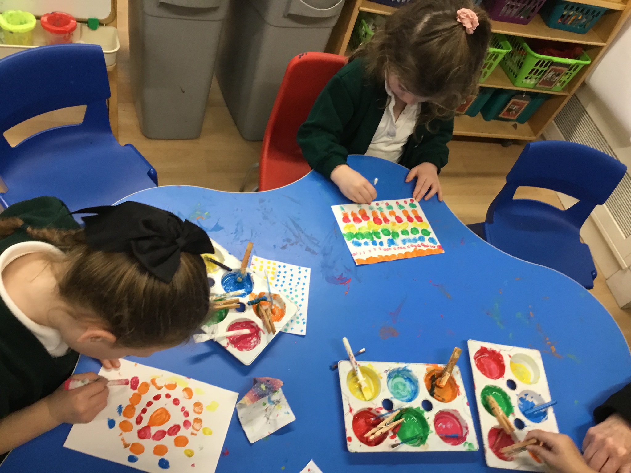 We continued our learning about the artist Alma Thomas and explored her vibrant, patterned artwork. The children enjoyed studying how she used colour, shape and repeated patterns, and this inspired them to create their own wonderful pieces. Both indoors and outdoors, children experimented with painting, collage and pattern-making, developing increasing confidence in choosing their own tools, combining materials and expressing their ideas creatively.