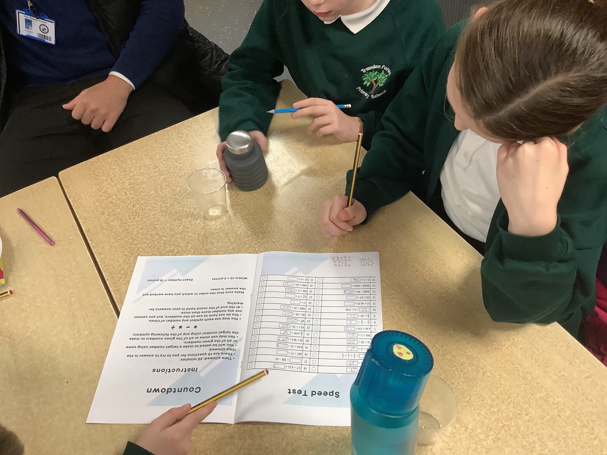 8 schools from around Pendle (including Trawden) attended the challenge. Children had 3 separate parts to their morning; a deeper thinking challenge, a quick fire Arithmetic round and some Countdown challenges.